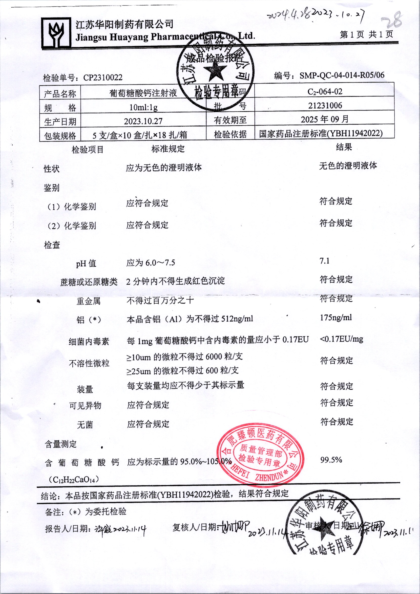 葡萄糖酸鈣注射液 10ml:1g 21231006 查看詳情