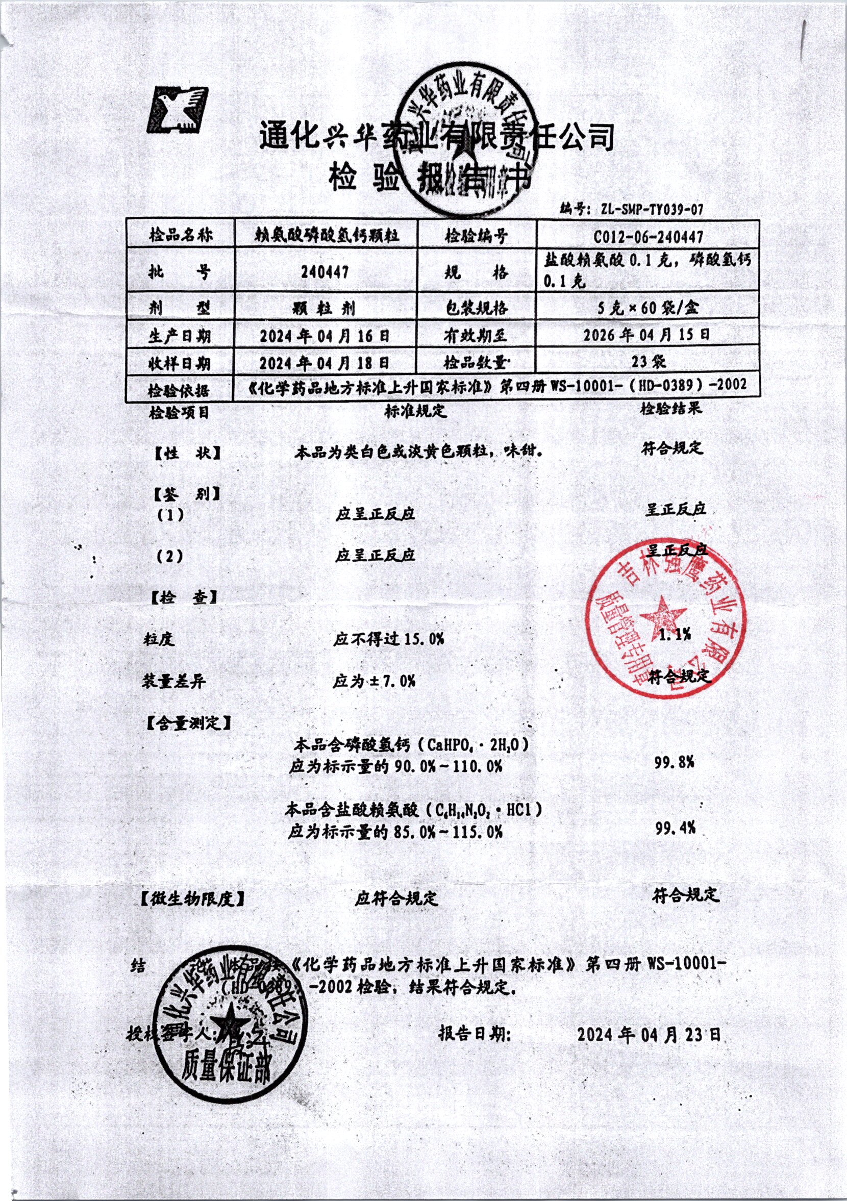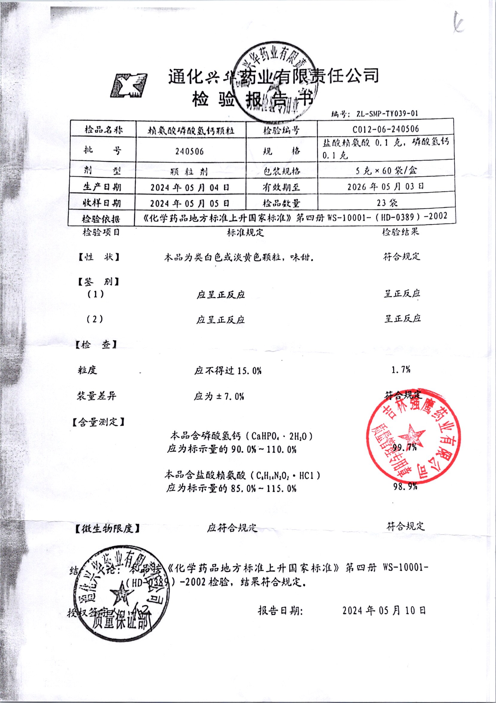 賴氨酸磷酸氫鈣顆粒 0.1g*60袋 240447 查看詳情