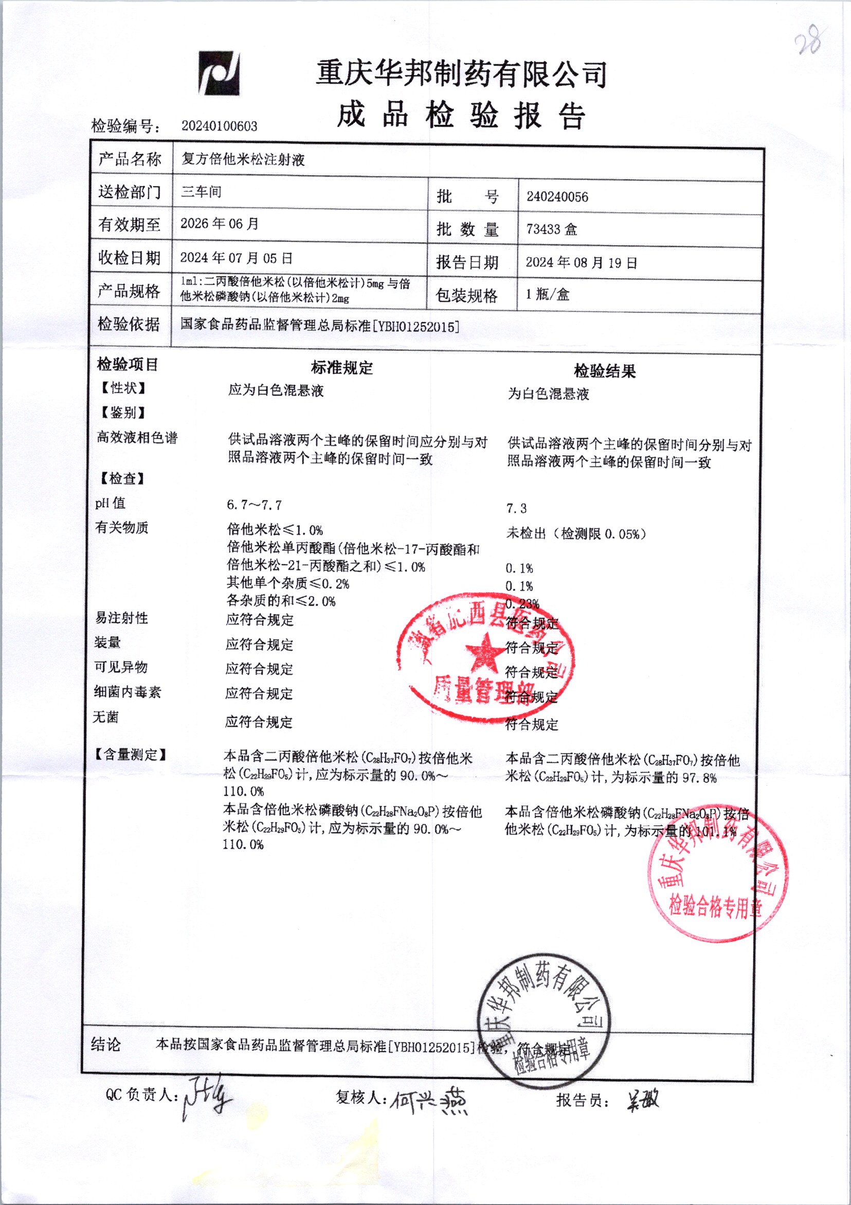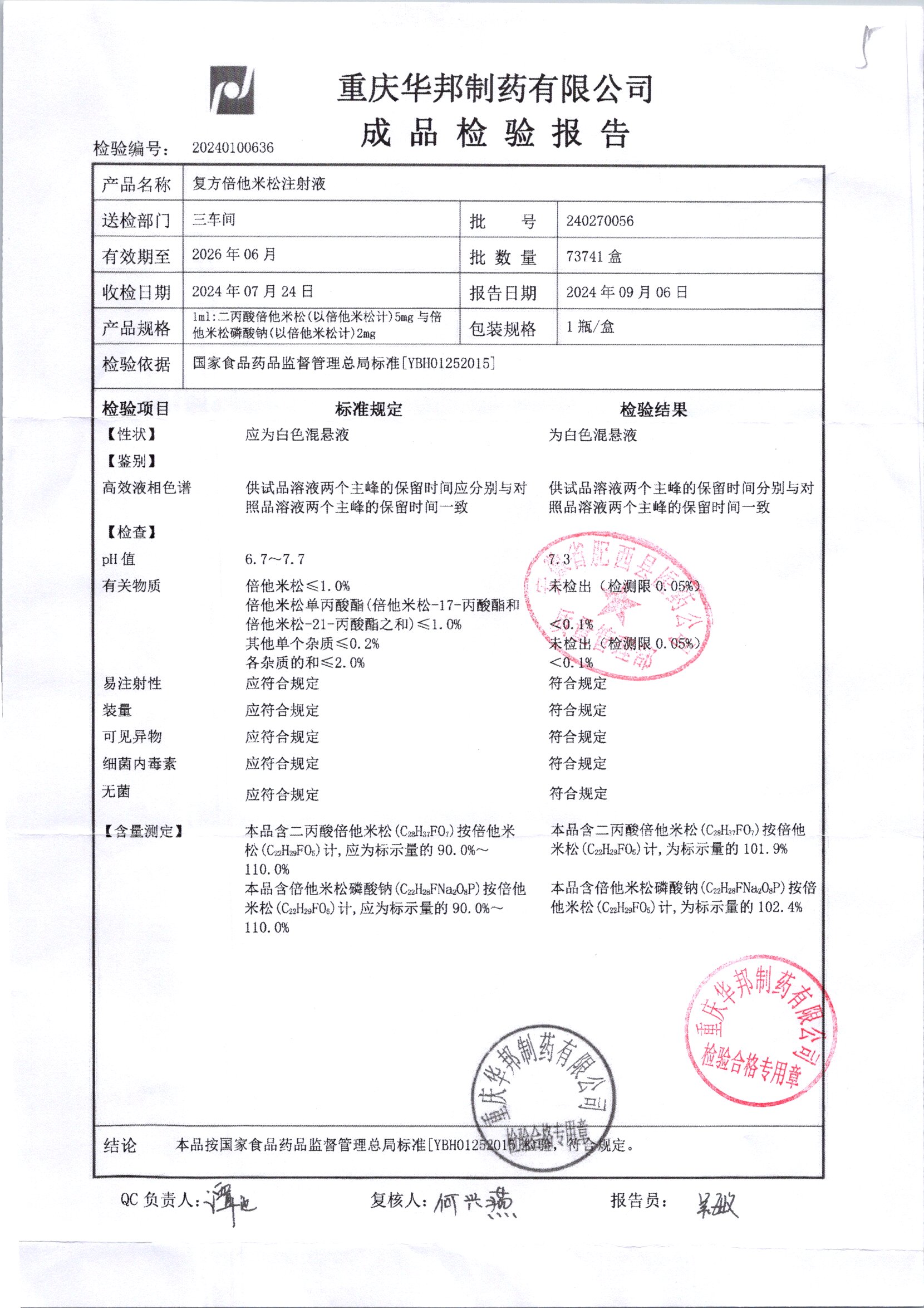 | 復(fù)方倍他米松注射液 | 1ml | 240210056 | 查看詳情 |