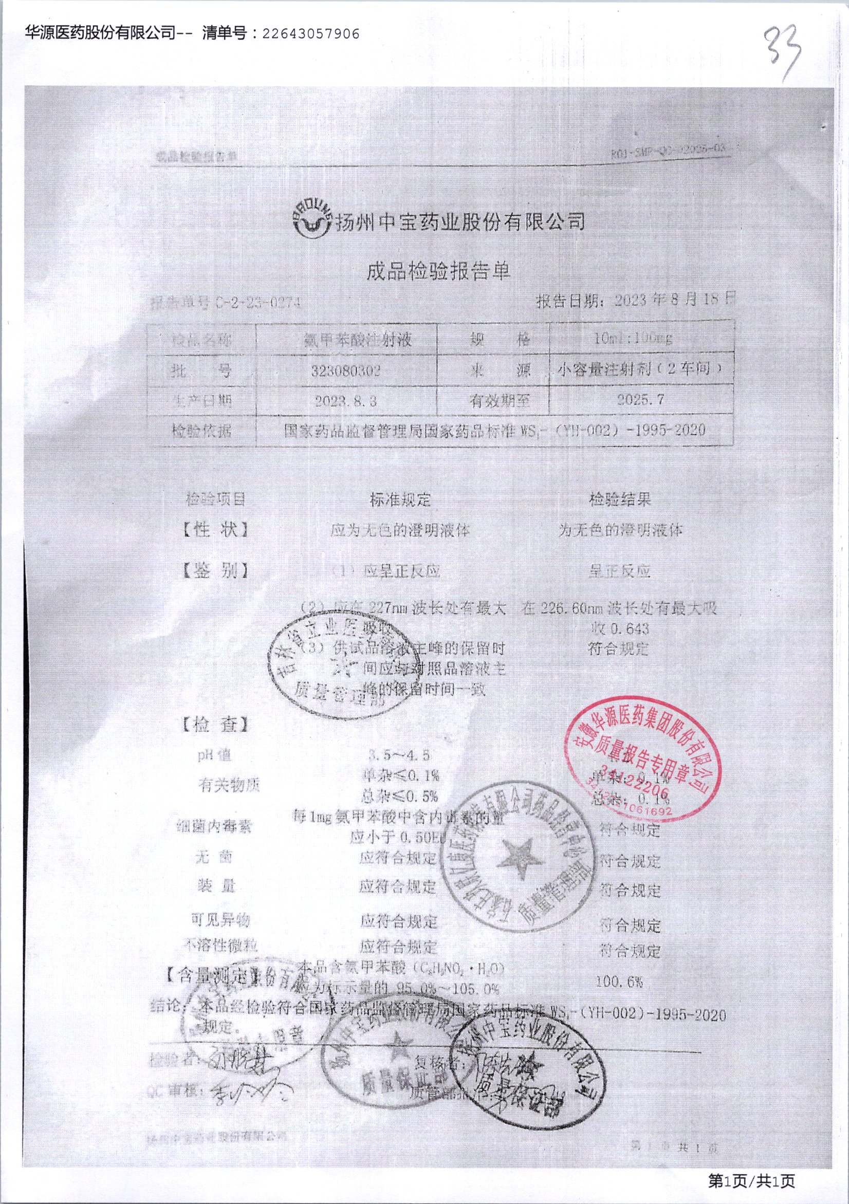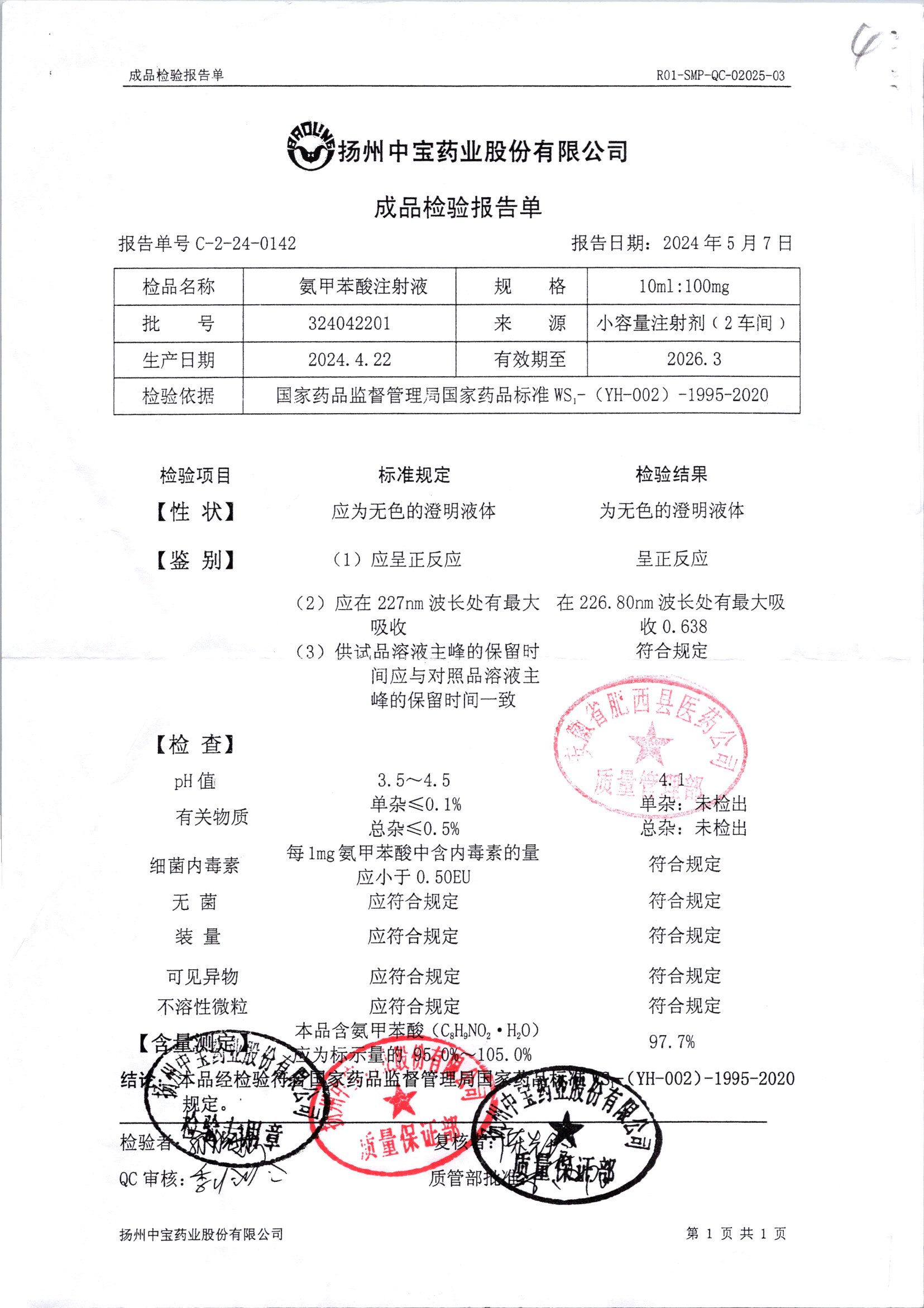 | 氨甲苯酸注射液 | 10ml:100mg | 323080302 | 查看詳情 |