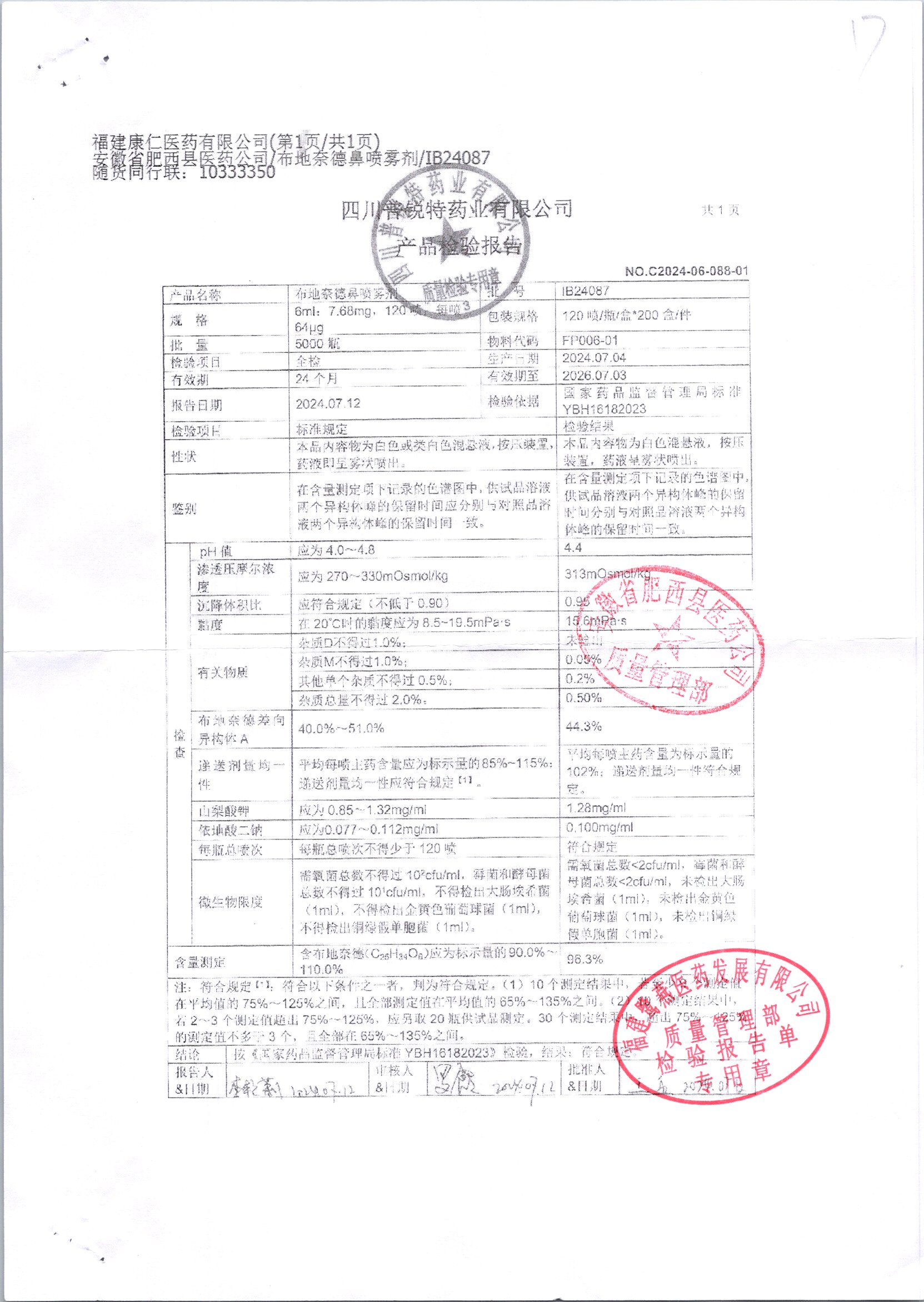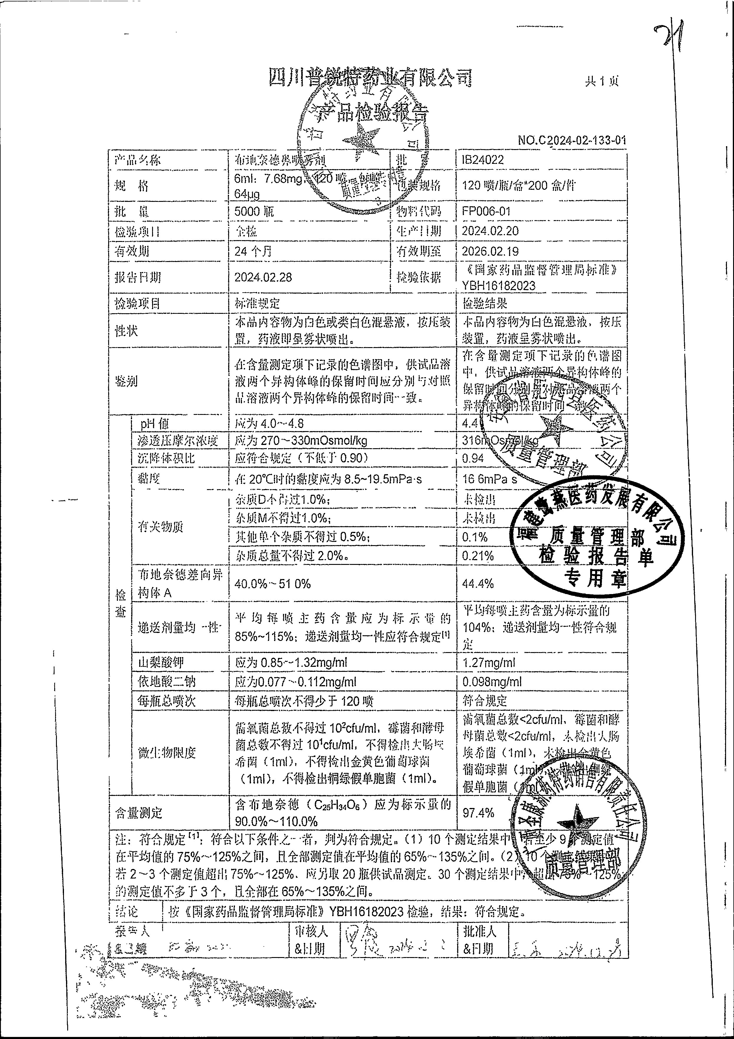 | 布地奈德鼻噴霧劑 | 6ml:7.68mg,120噴*200 | IB24078 | 查看詳情 |