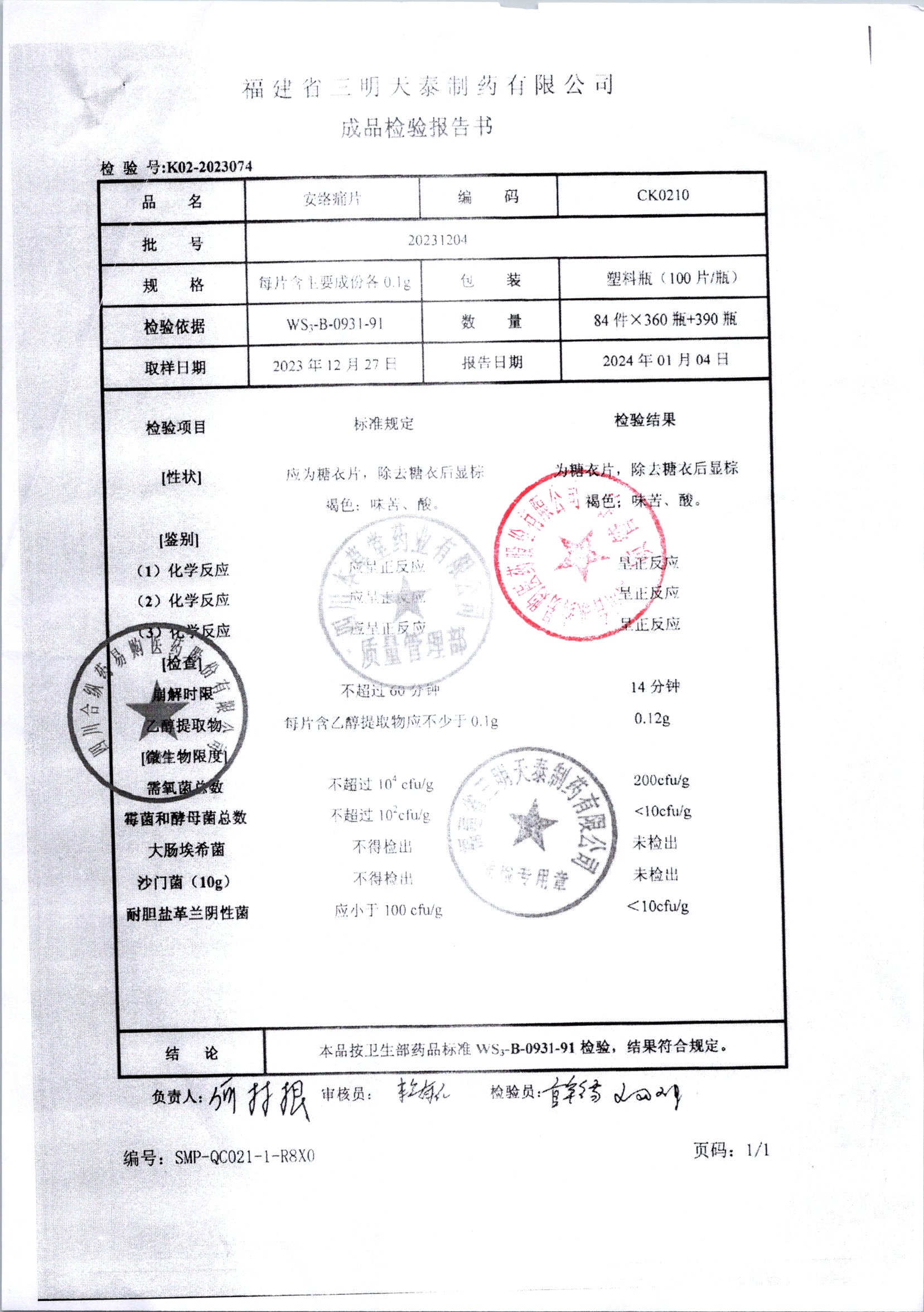 安絡(luò)痛片 0.1g 20231204 查看詳情