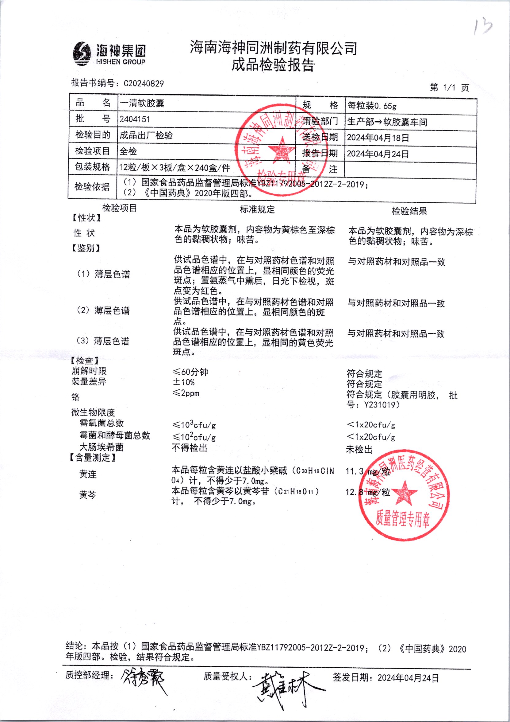 一清軟膠囊 0.65g*36s 2404151 查看詳情