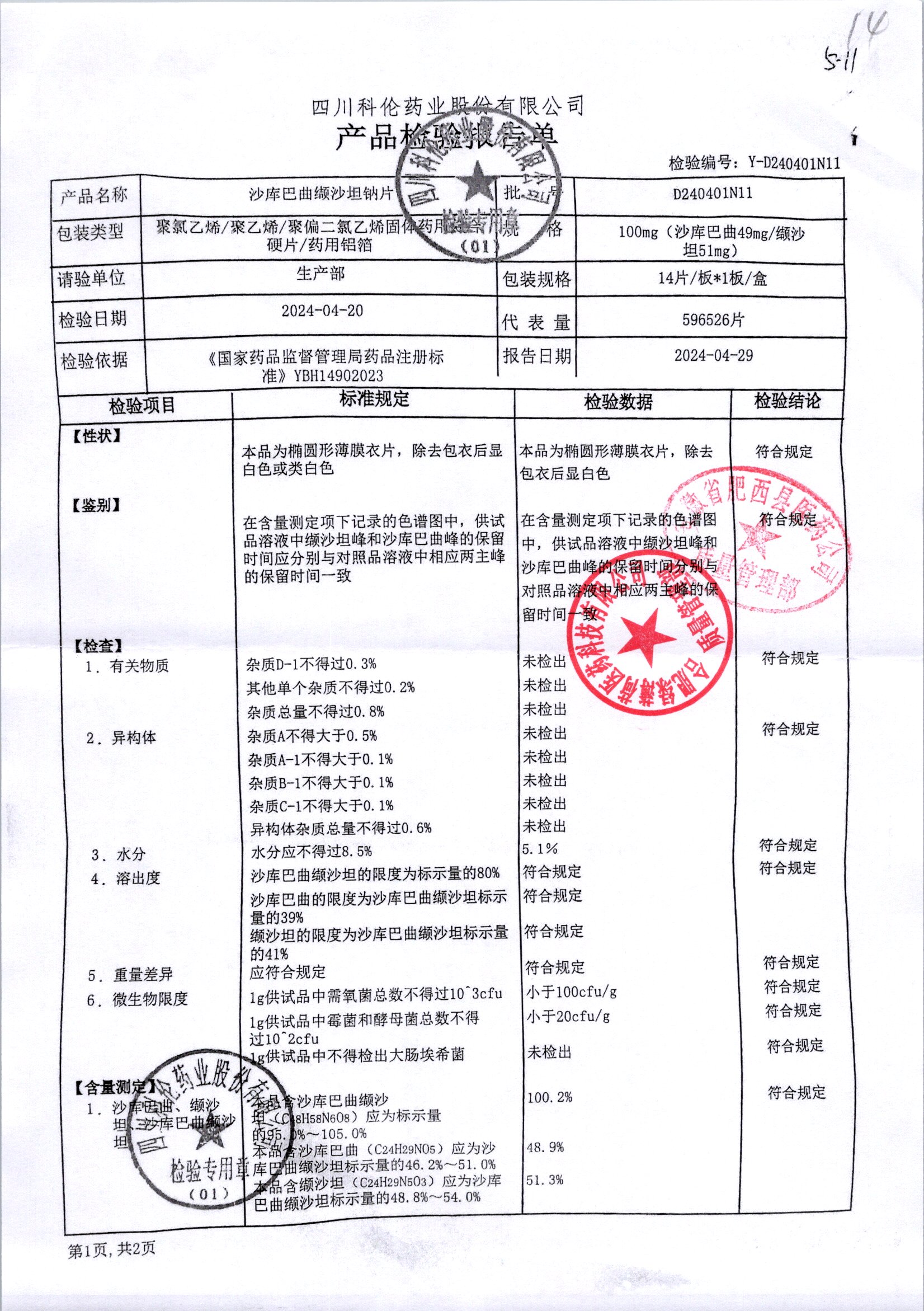 沙庫巴曲纈沙坦鈉片 100mg*14片 D240401N 11/1 查看詳情