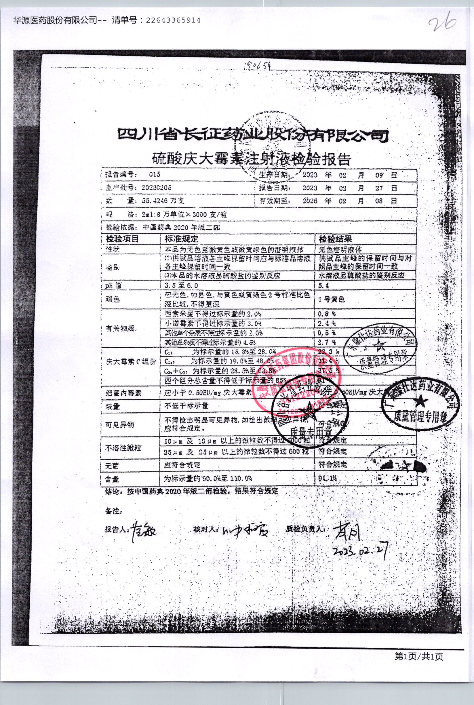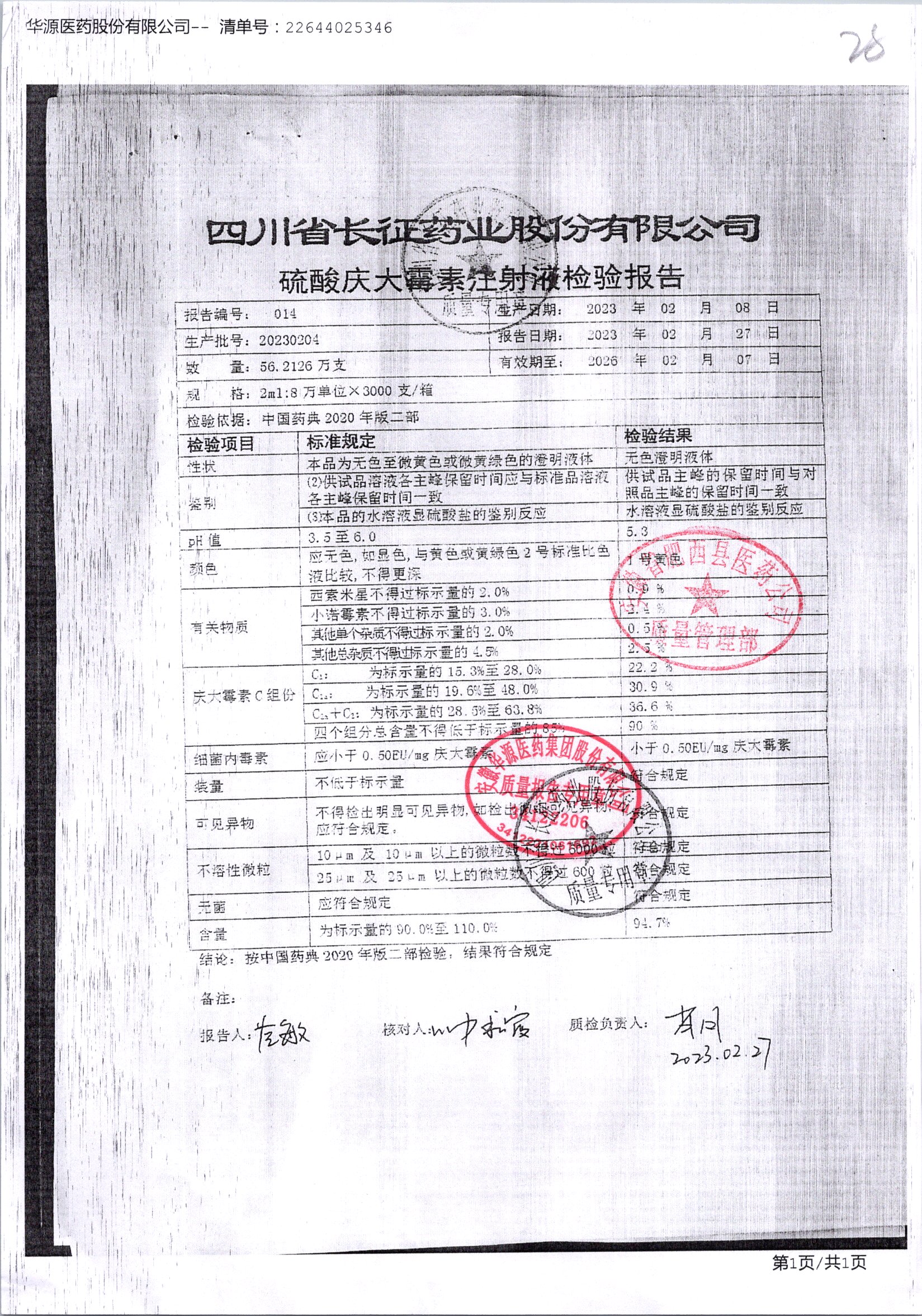 名稱 規(guī)格 批號 藥檢報(bào)告