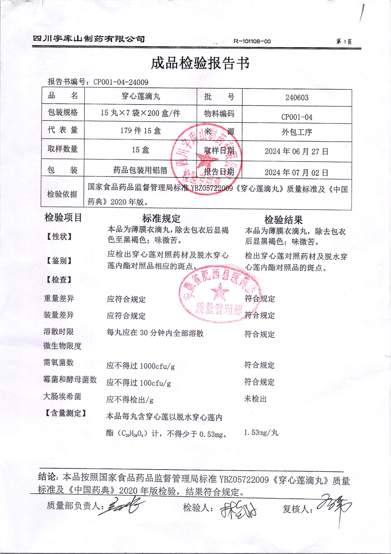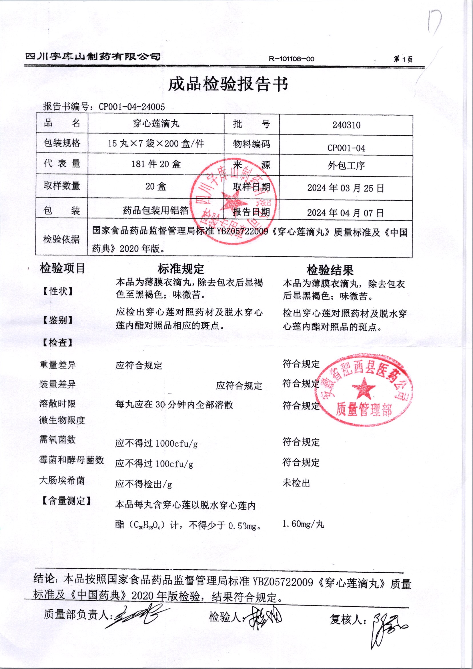 名稱 規(guī)格 批號 藥檢報告