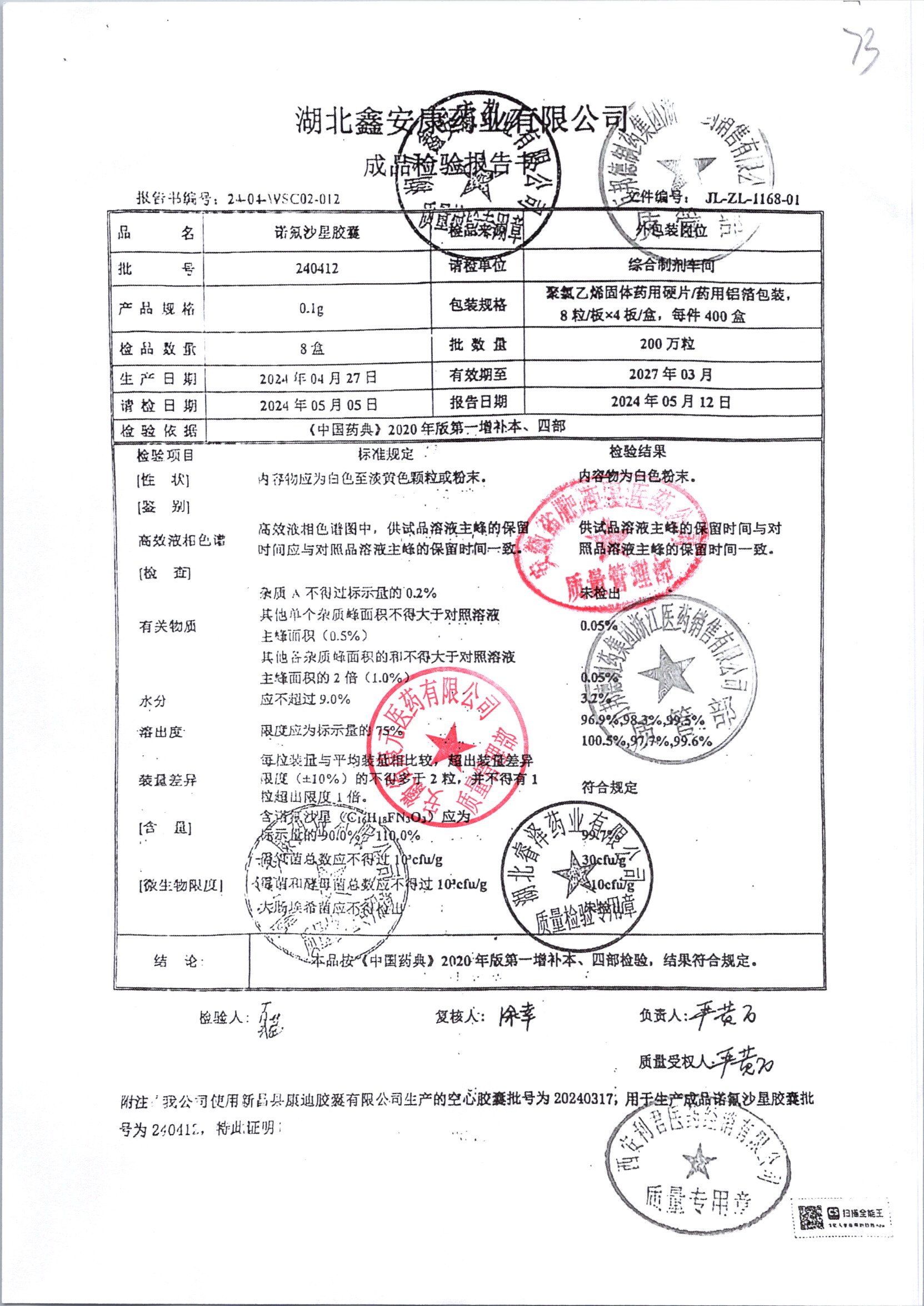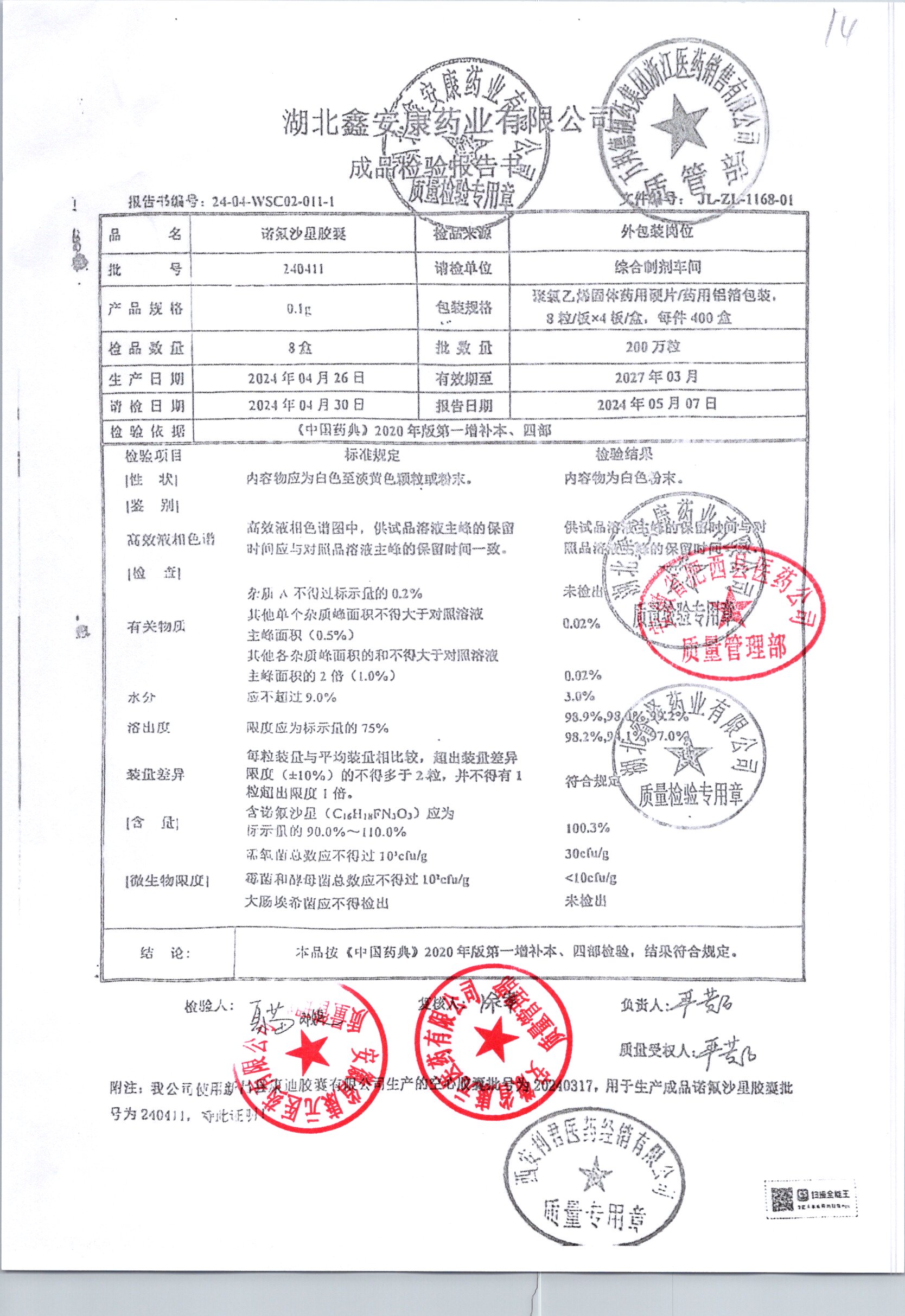 諾氟沙星膠囊 0.1g*32s 240412 查看詳情