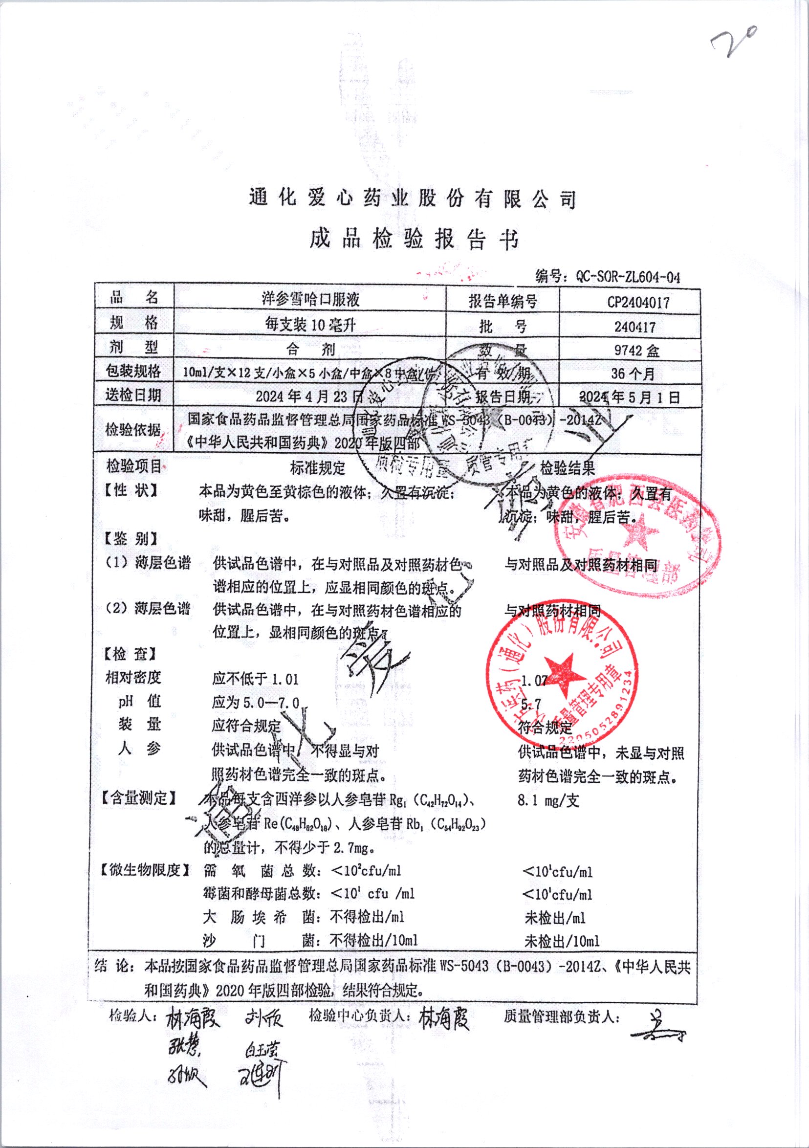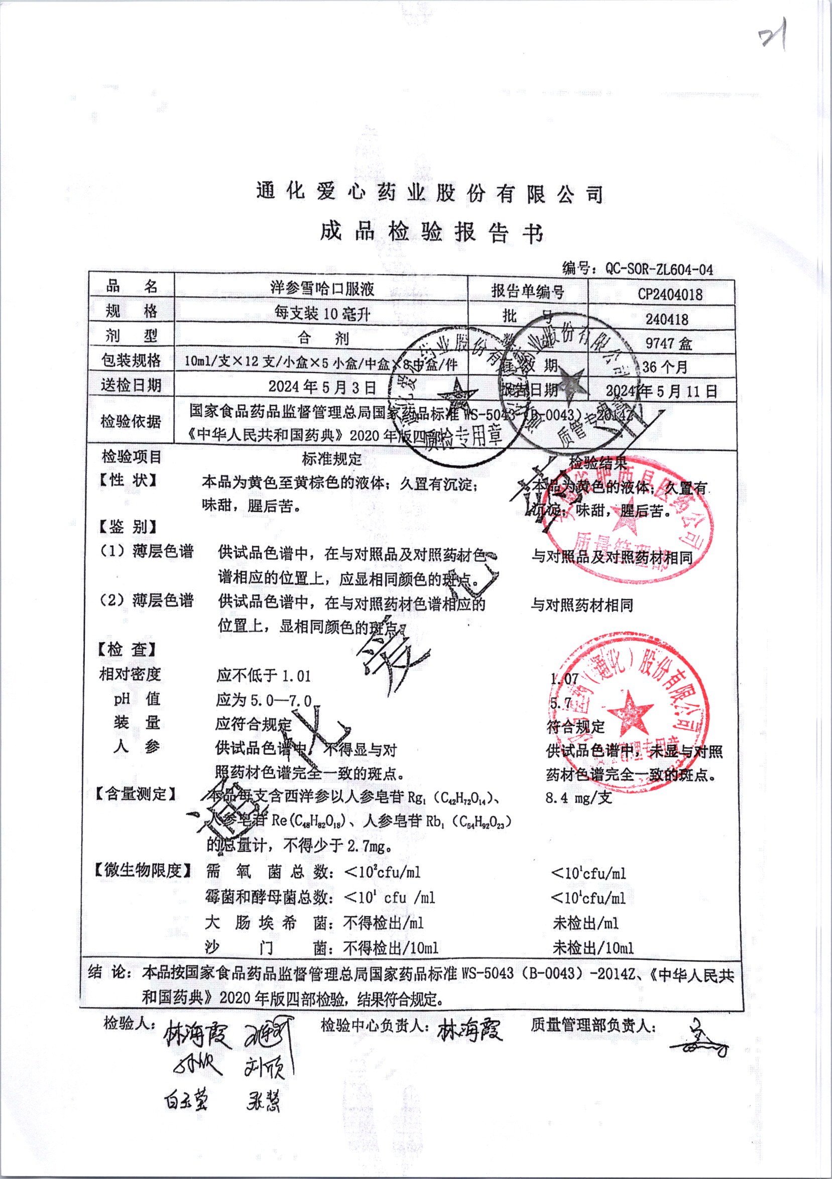 名稱 規(guī)格 批號 藥檢報(bào)告