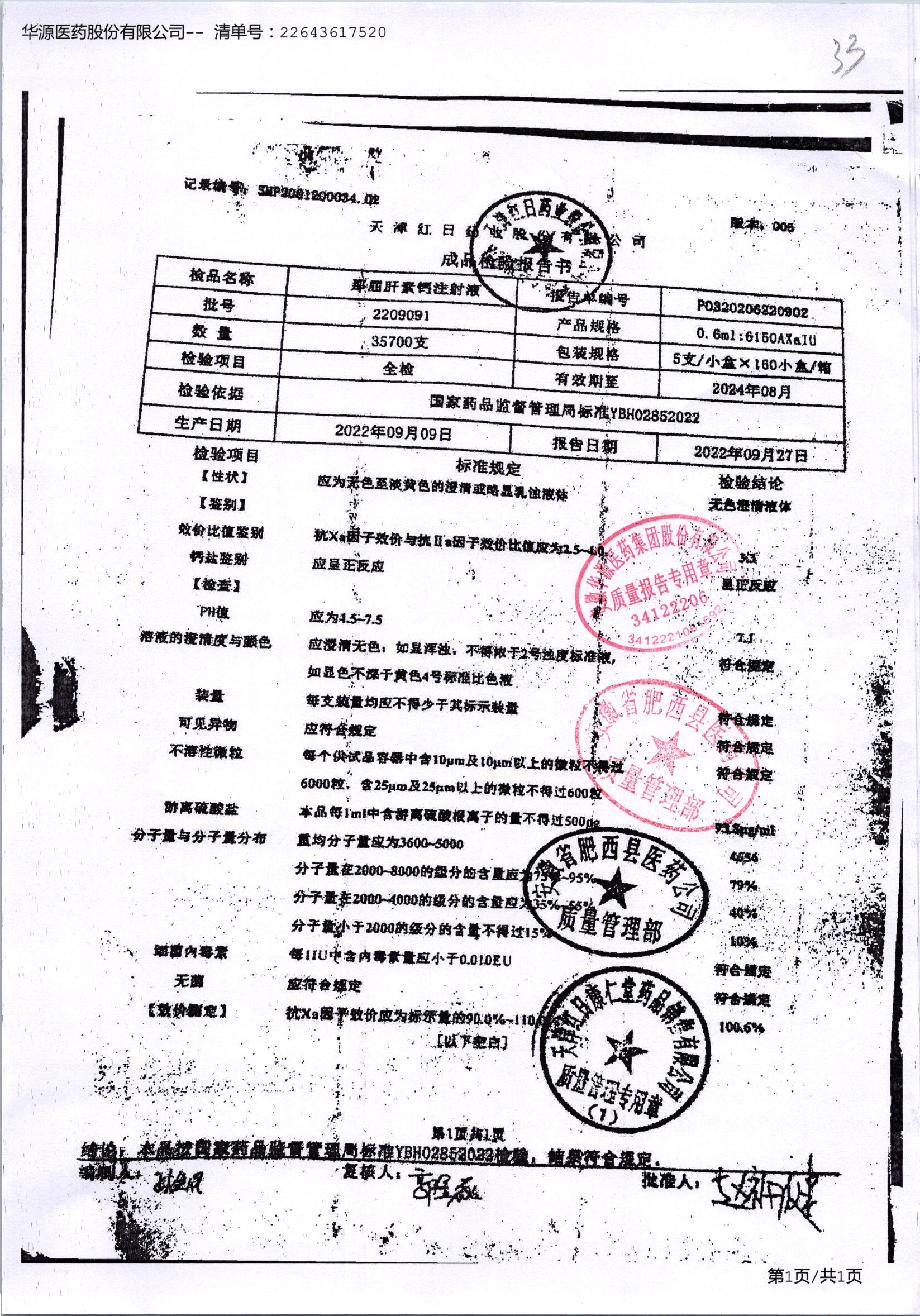 那曲肝素鈣注射液 0.6ml*5支 2209091 查看詳情