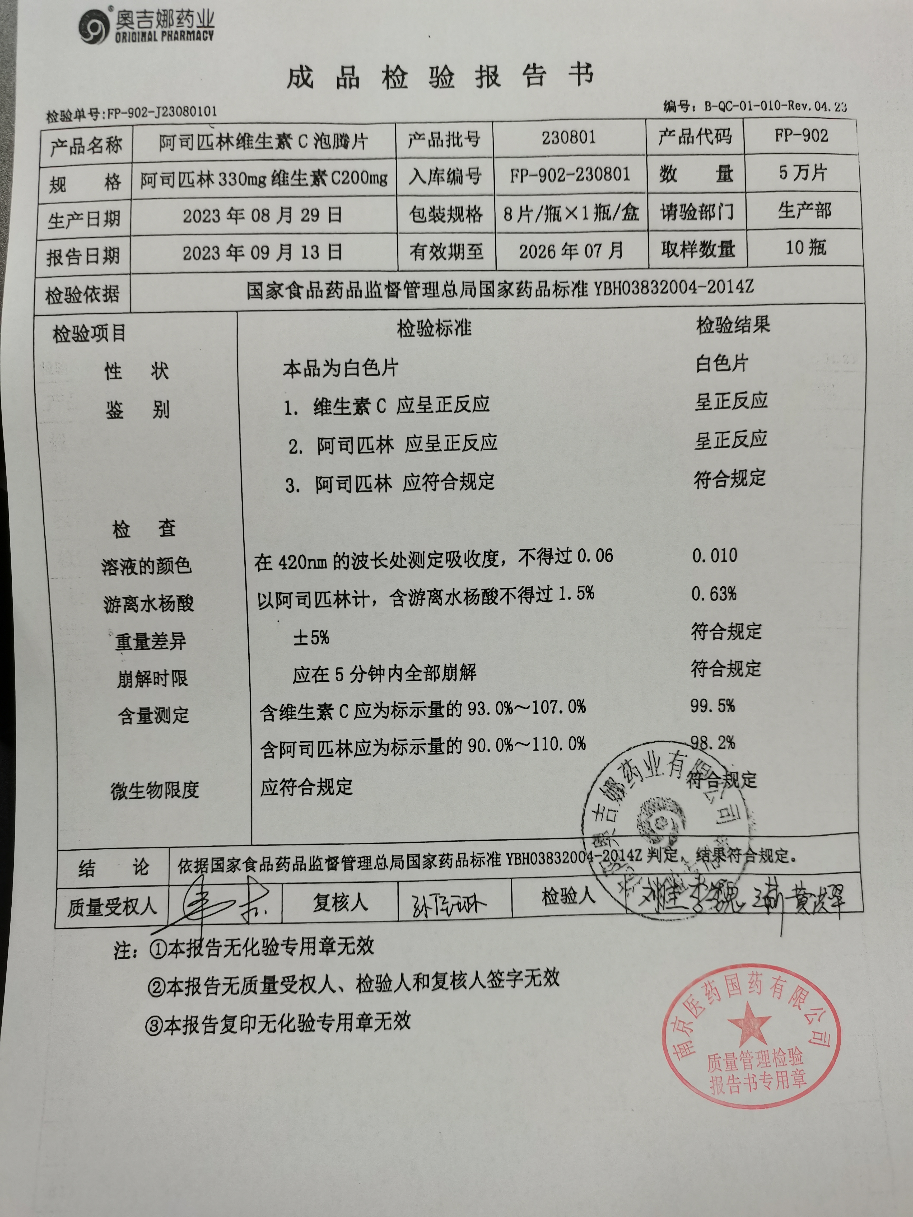阿司匹林維生素C泡騰片 300mg/200mg*8瓶 230801 查看詳情