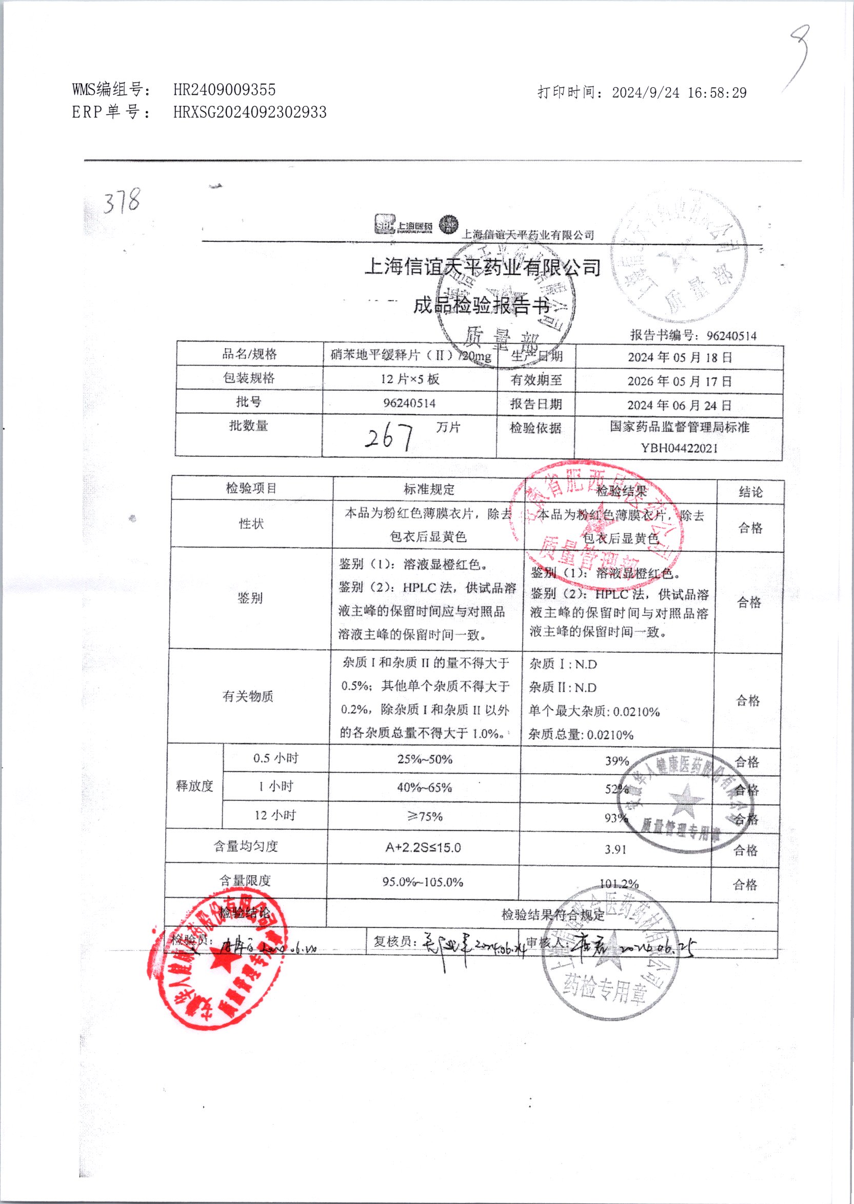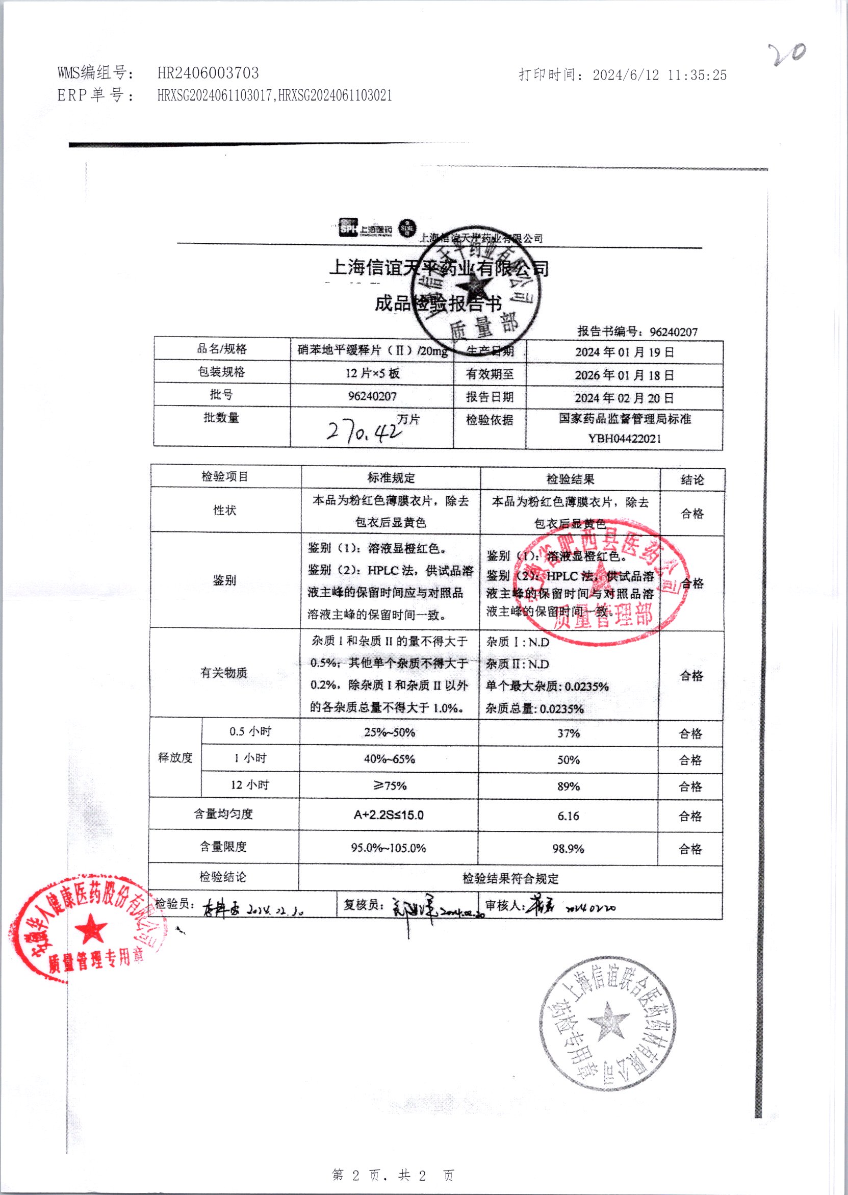硝苯地平緩釋片(II) 20mg*60s 96240514 查看詳情