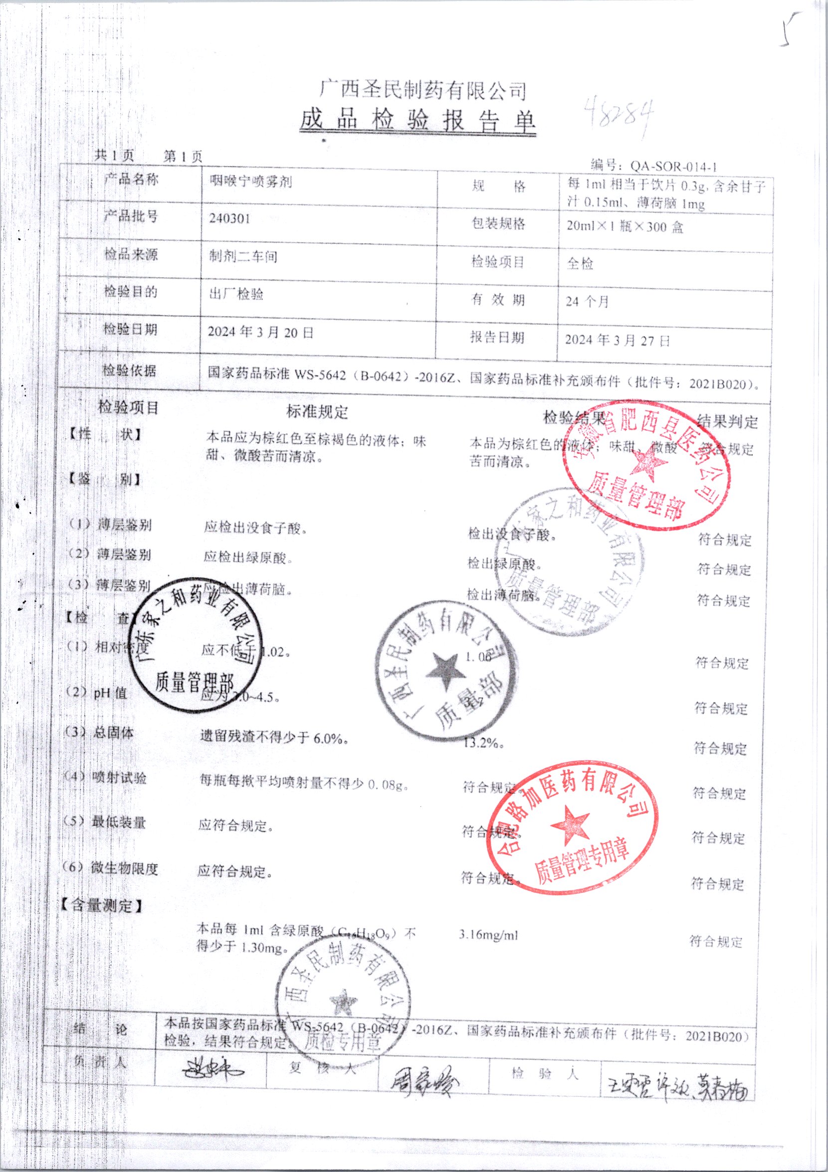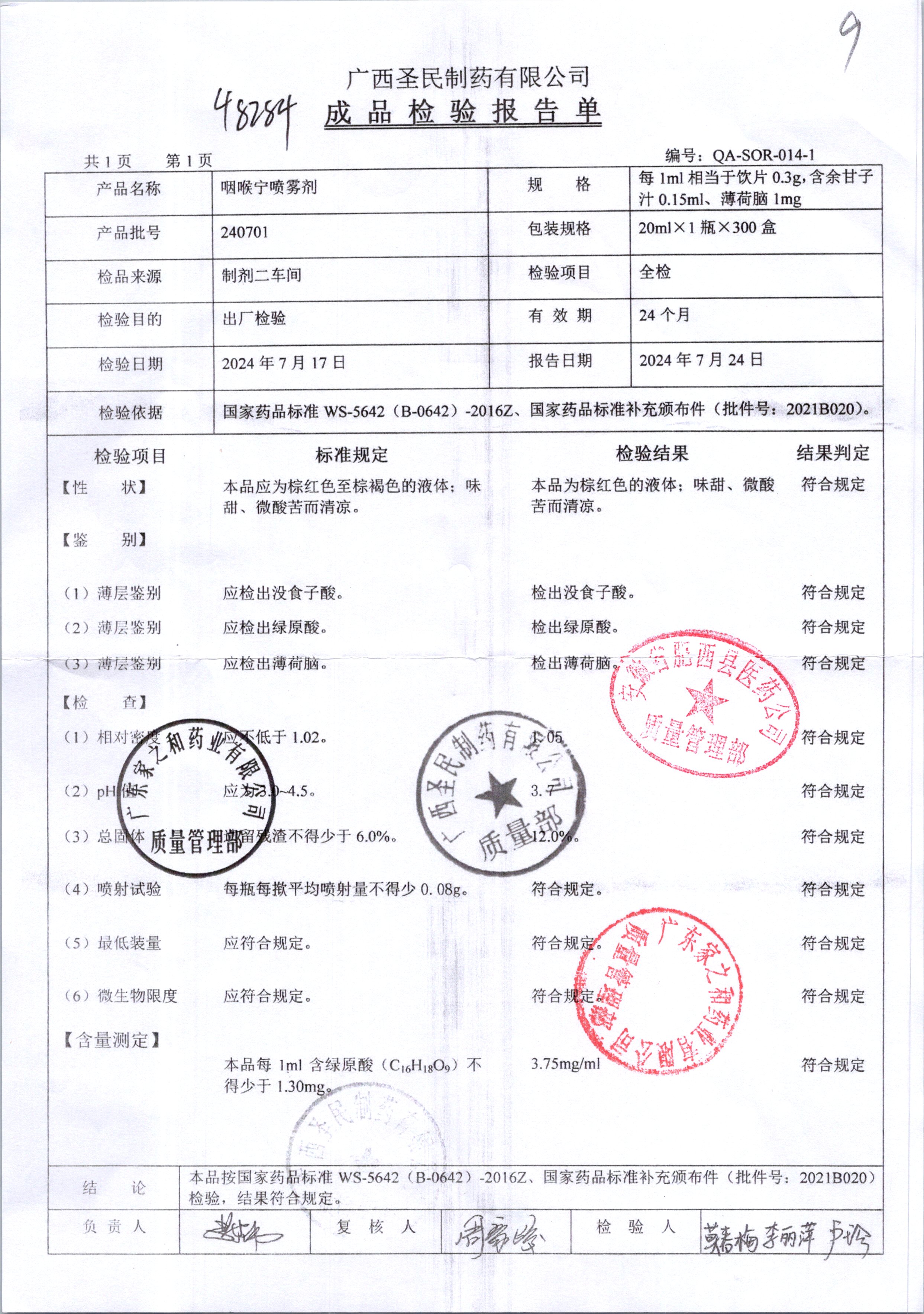 名稱 規(guī)格 批號 藥檢報告