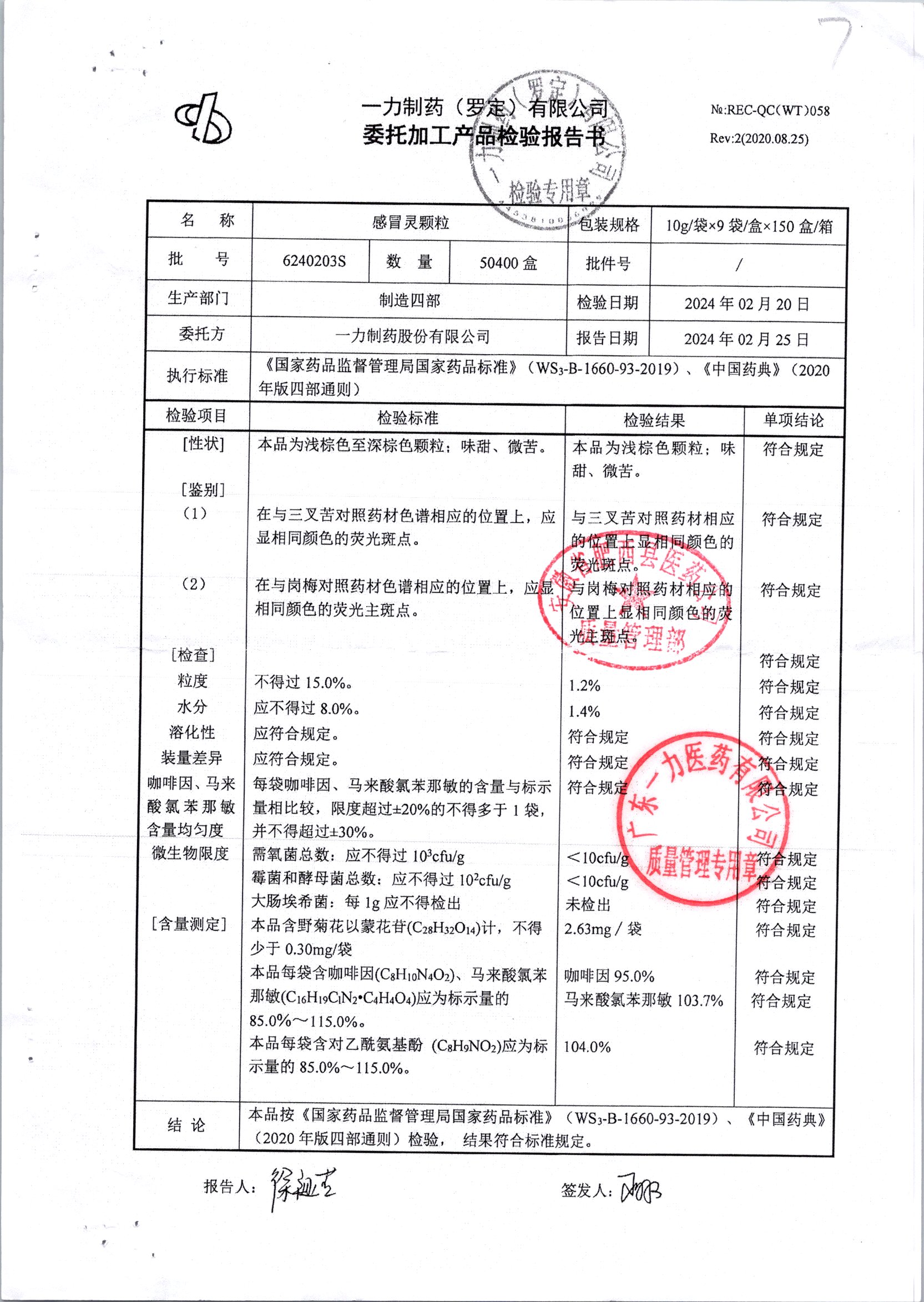 感冒靈顆粒 10g*9袋 6240203S 查看詳情