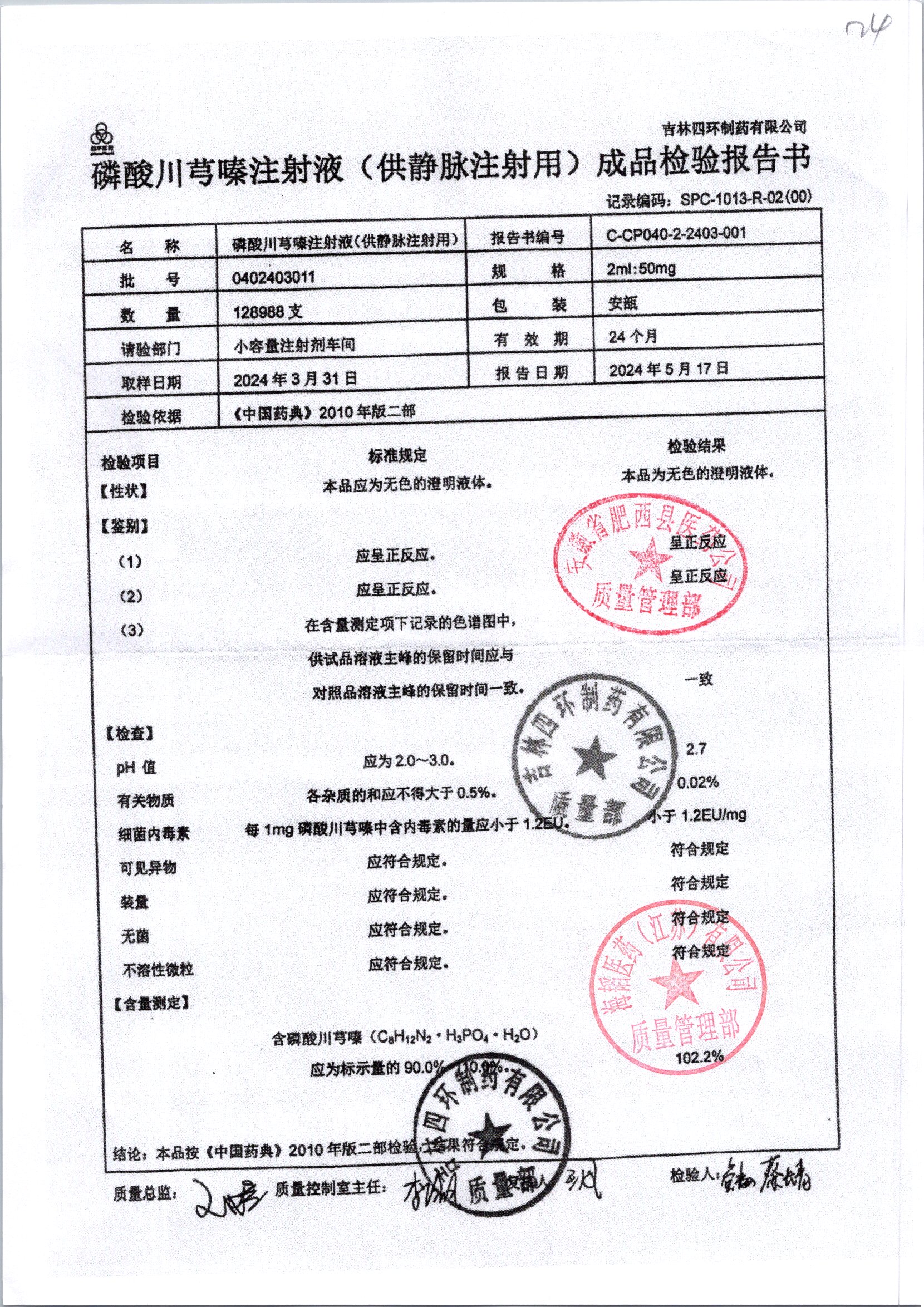 名稱 規(guī)格 批號(hào) 藥檢報(bào)告