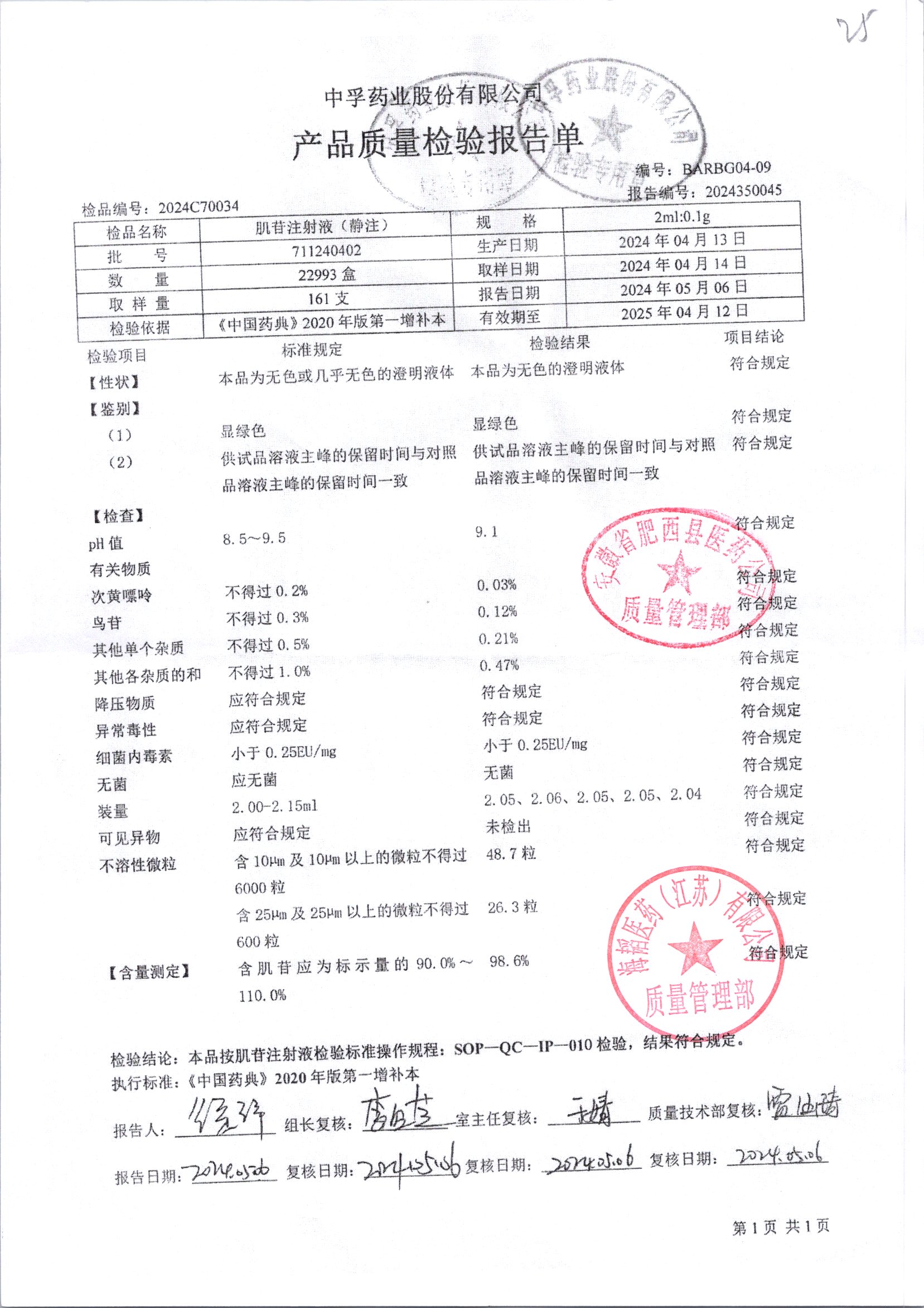 名稱 規(guī)格 批號(hào) 藥檢報(bào)告