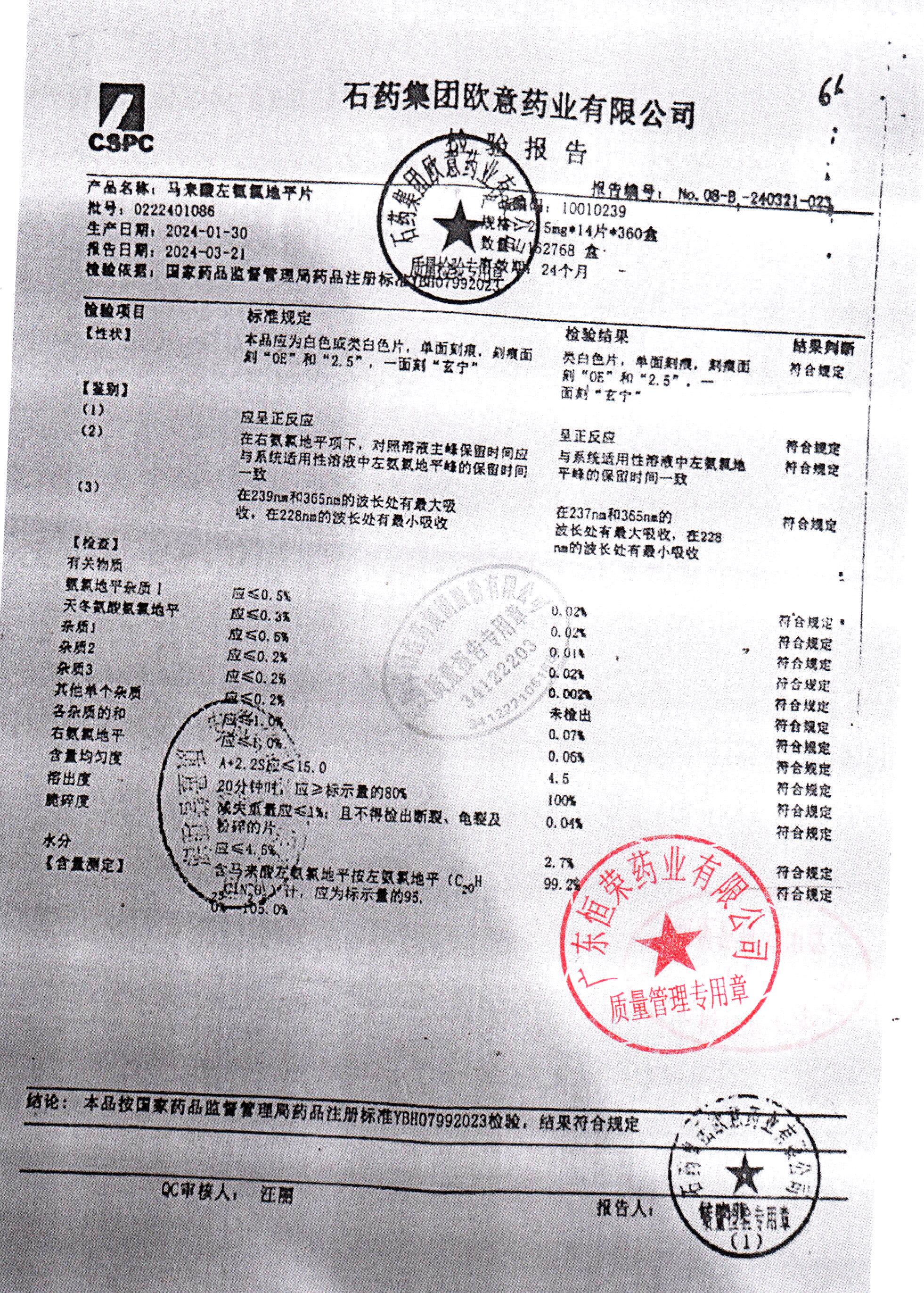 馬來酸左氨氯地平片 2.5mg*14片 0222401086 查看詳情
