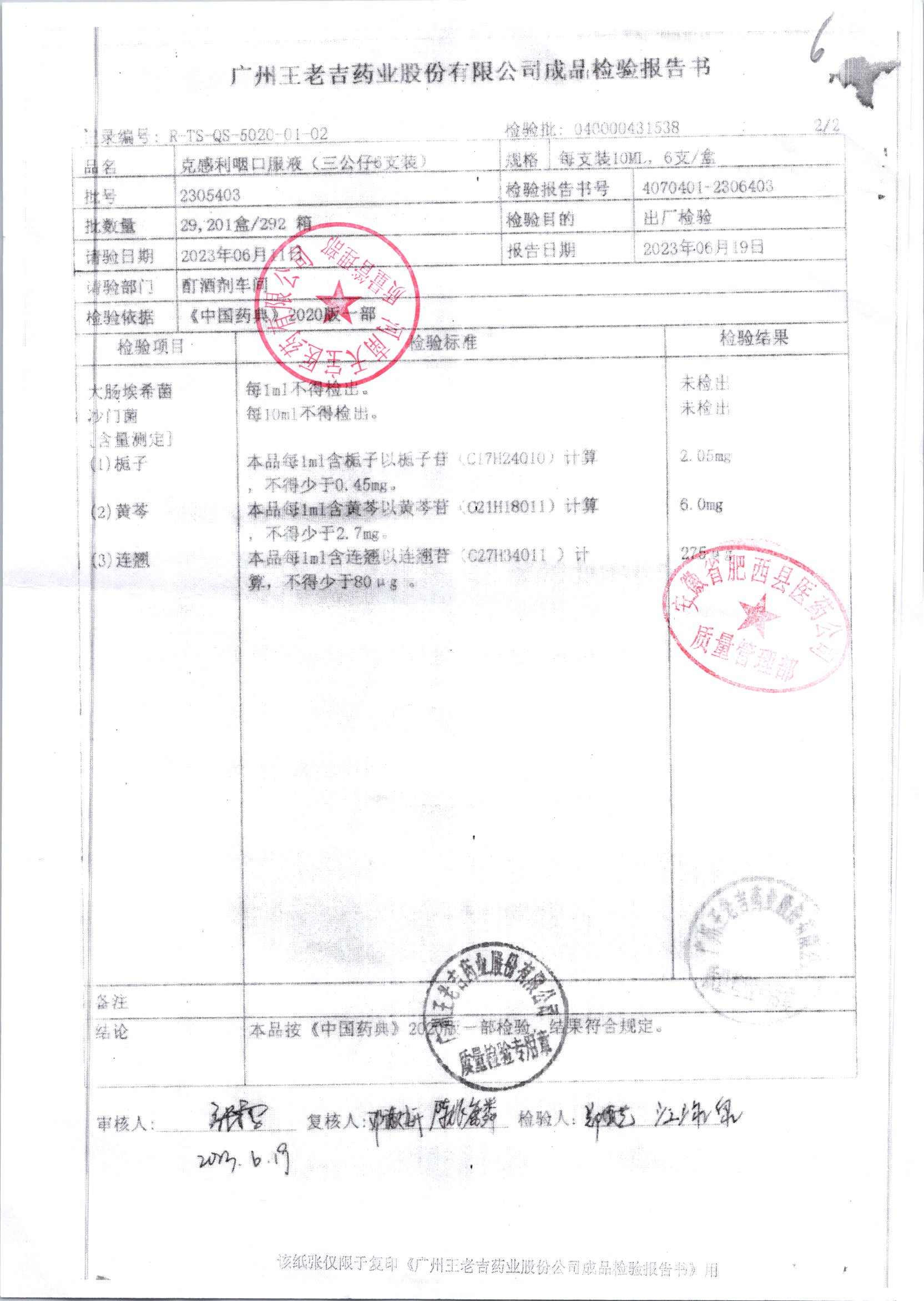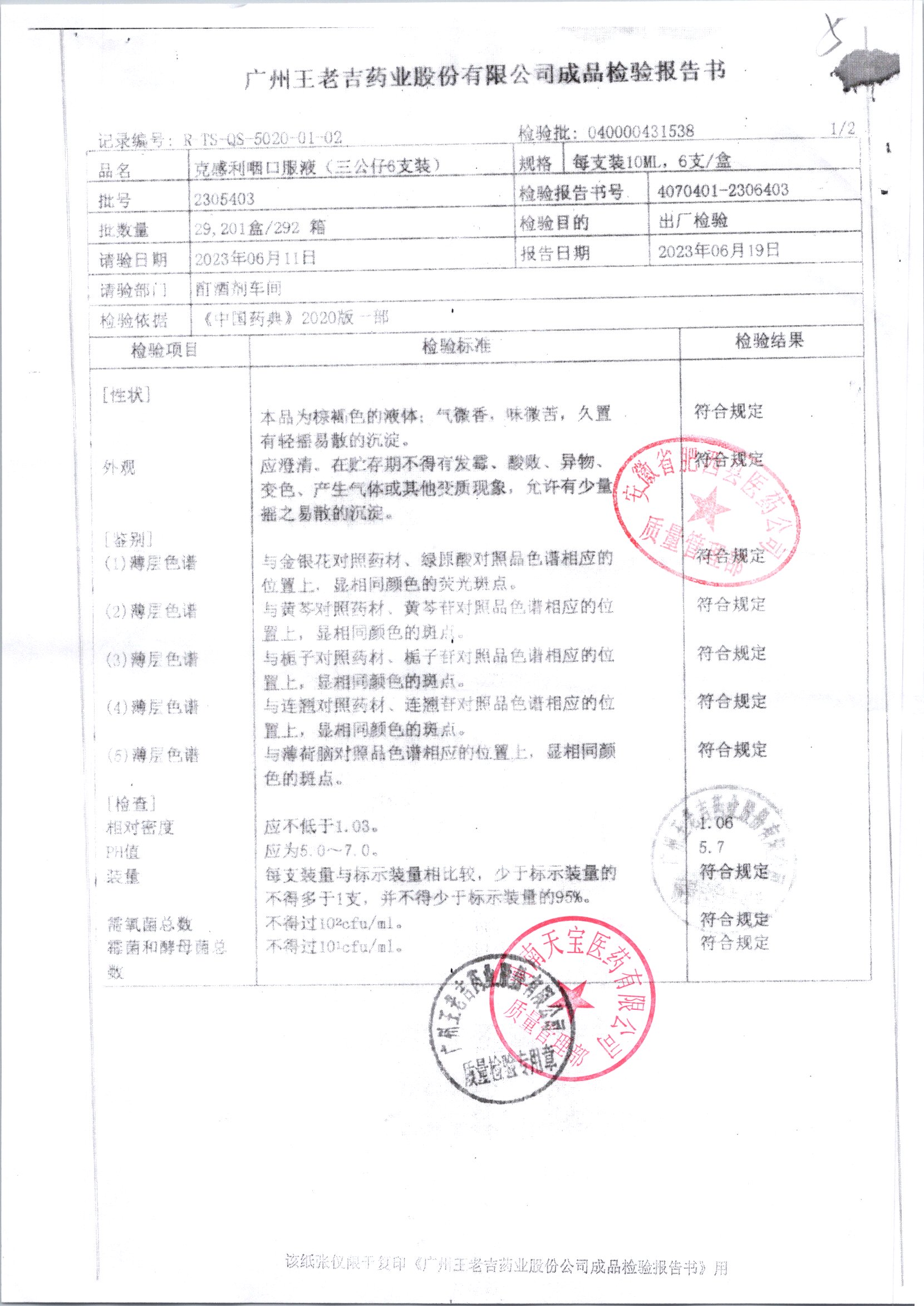 克感利咽口服液 10ml*6支 2305403/2 查看詳情