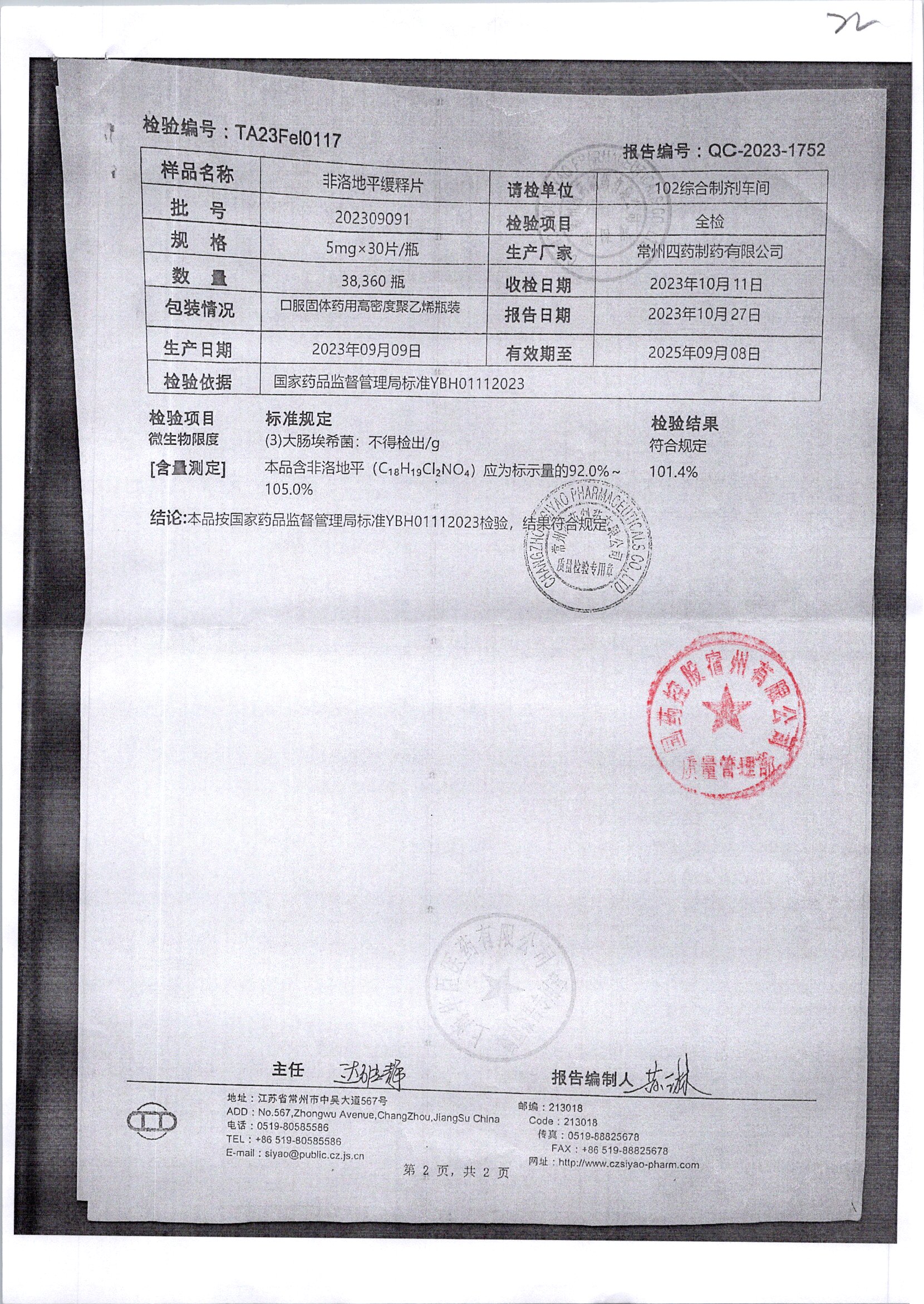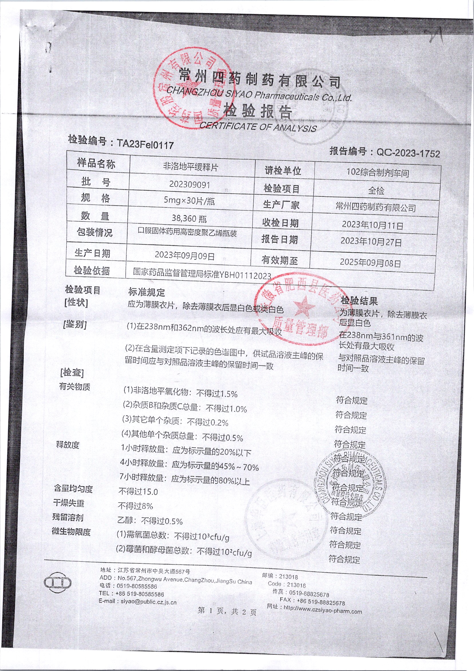 非洛地平緩釋片 5mg*30s 202309091/2 查看詳情