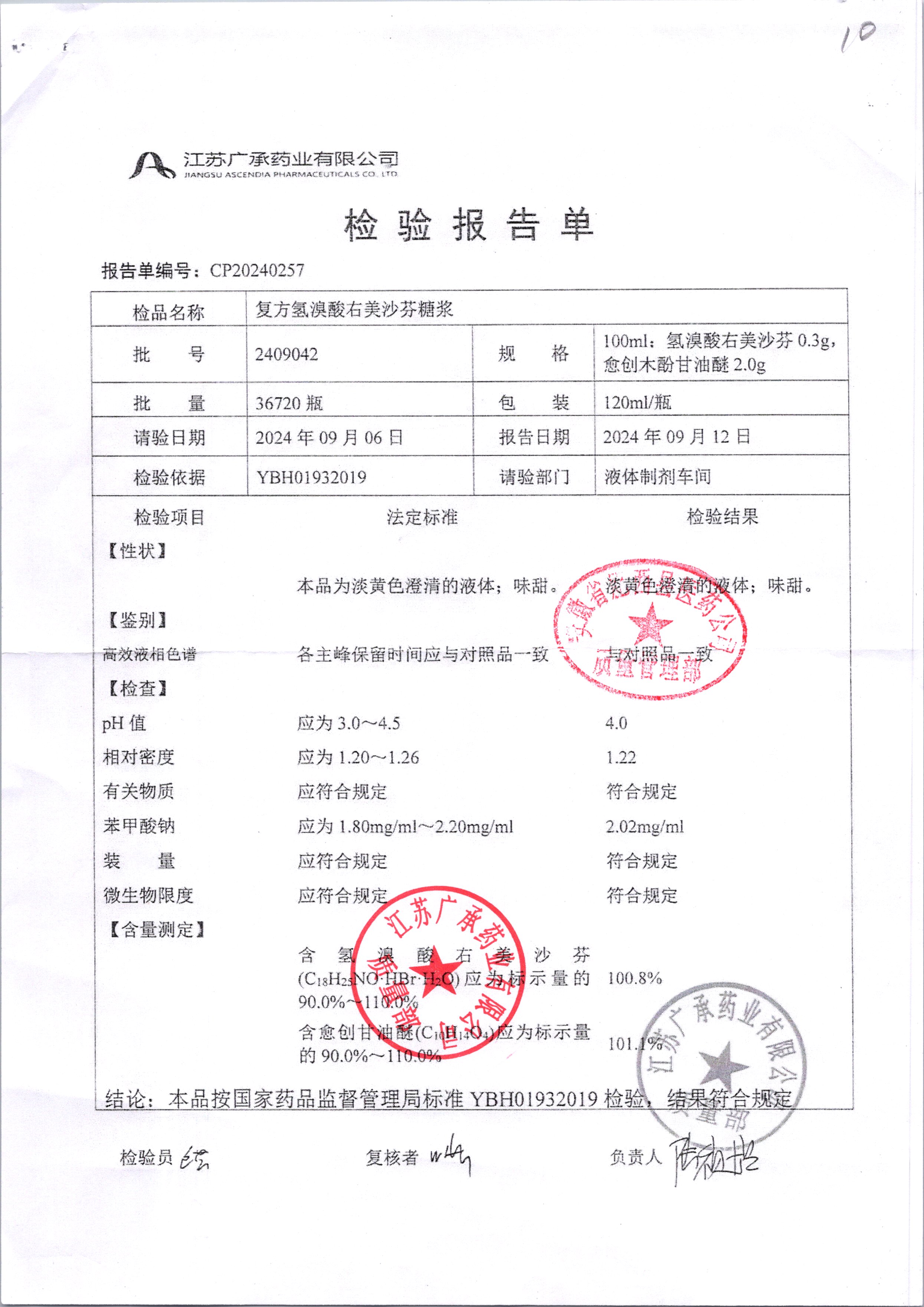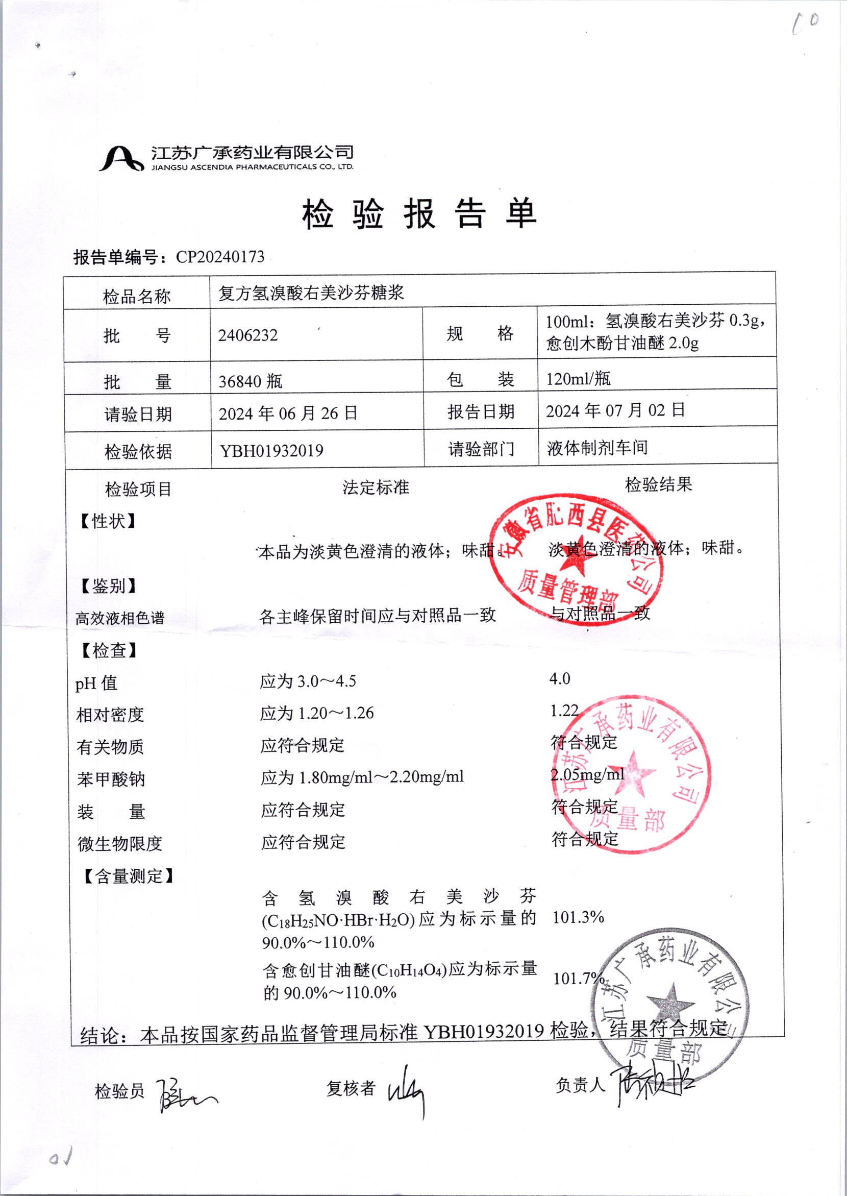 復(fù)方氫溴酸右美沙芬糖漿 100ml:120ml 2409042 查看詳情