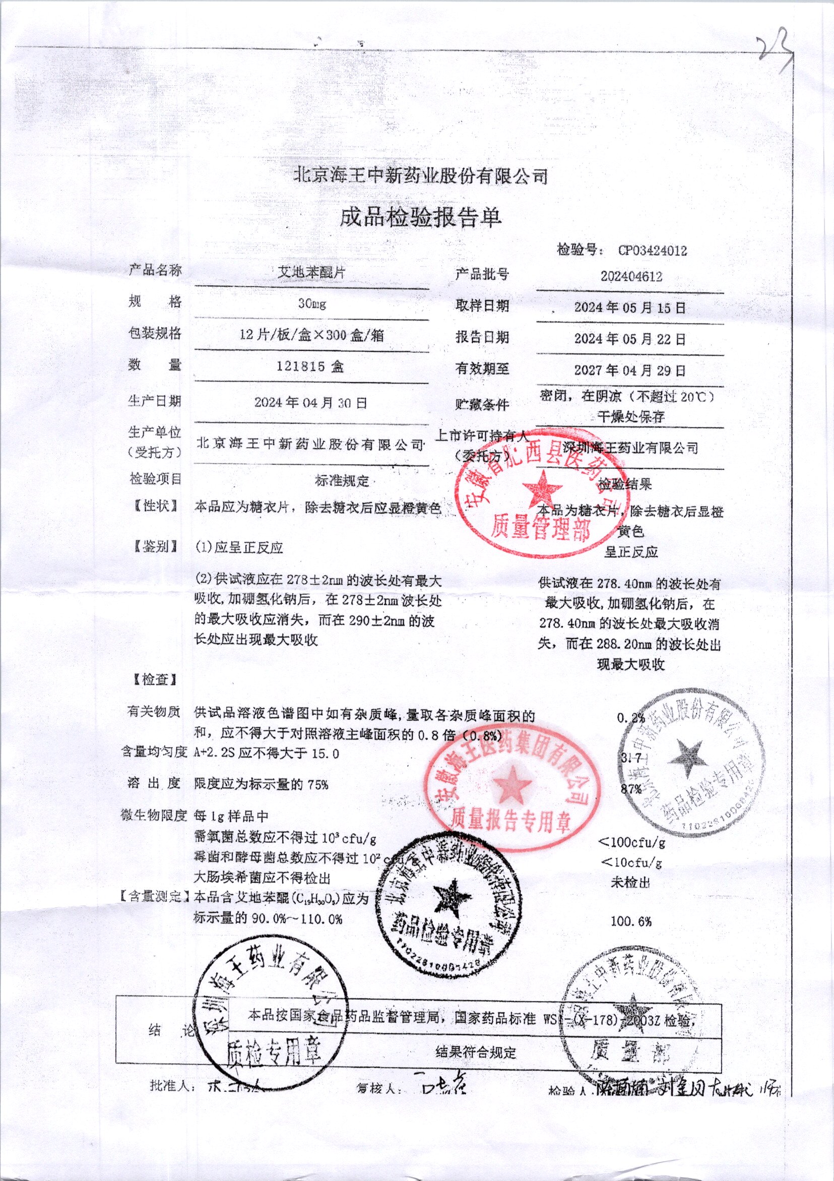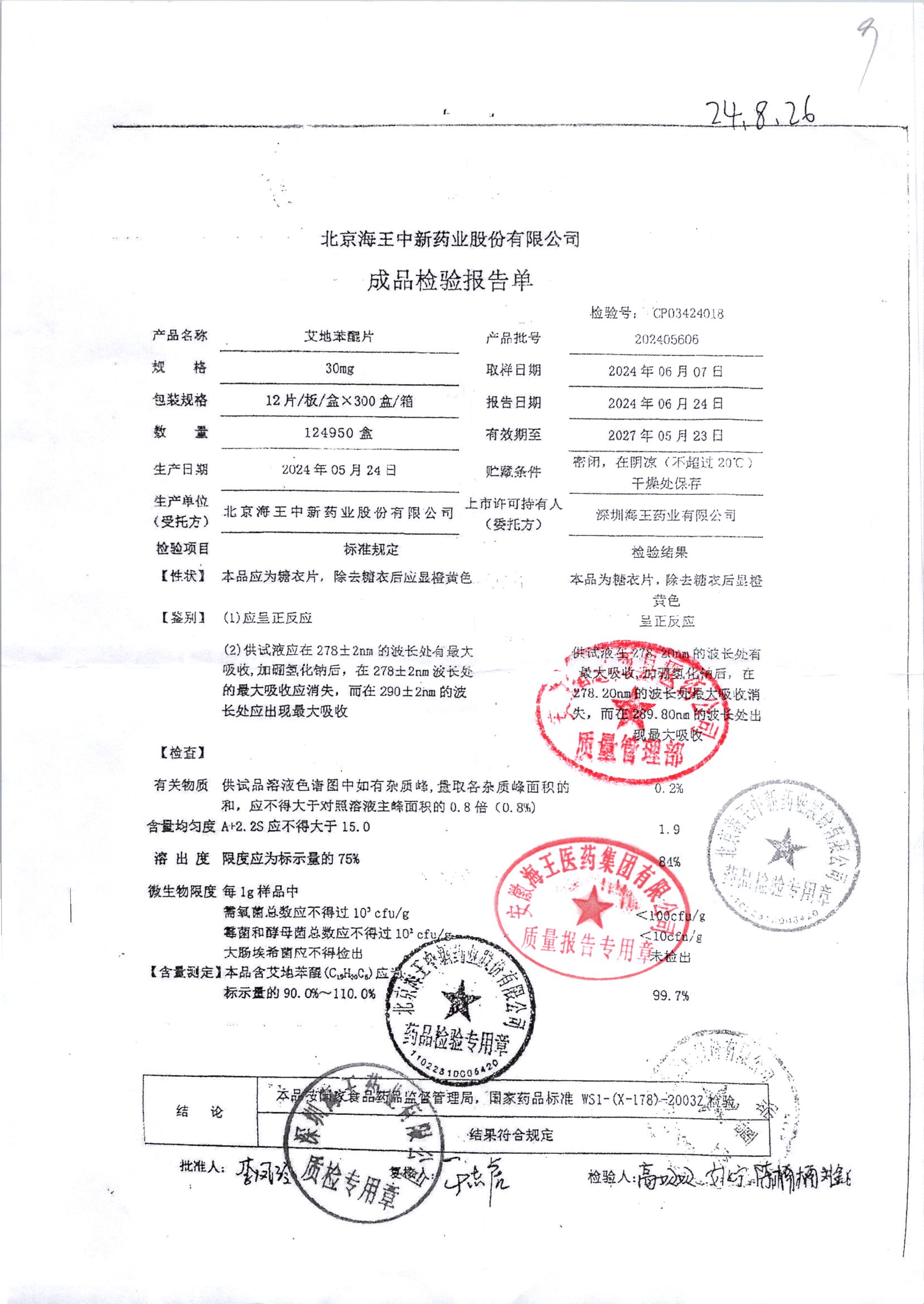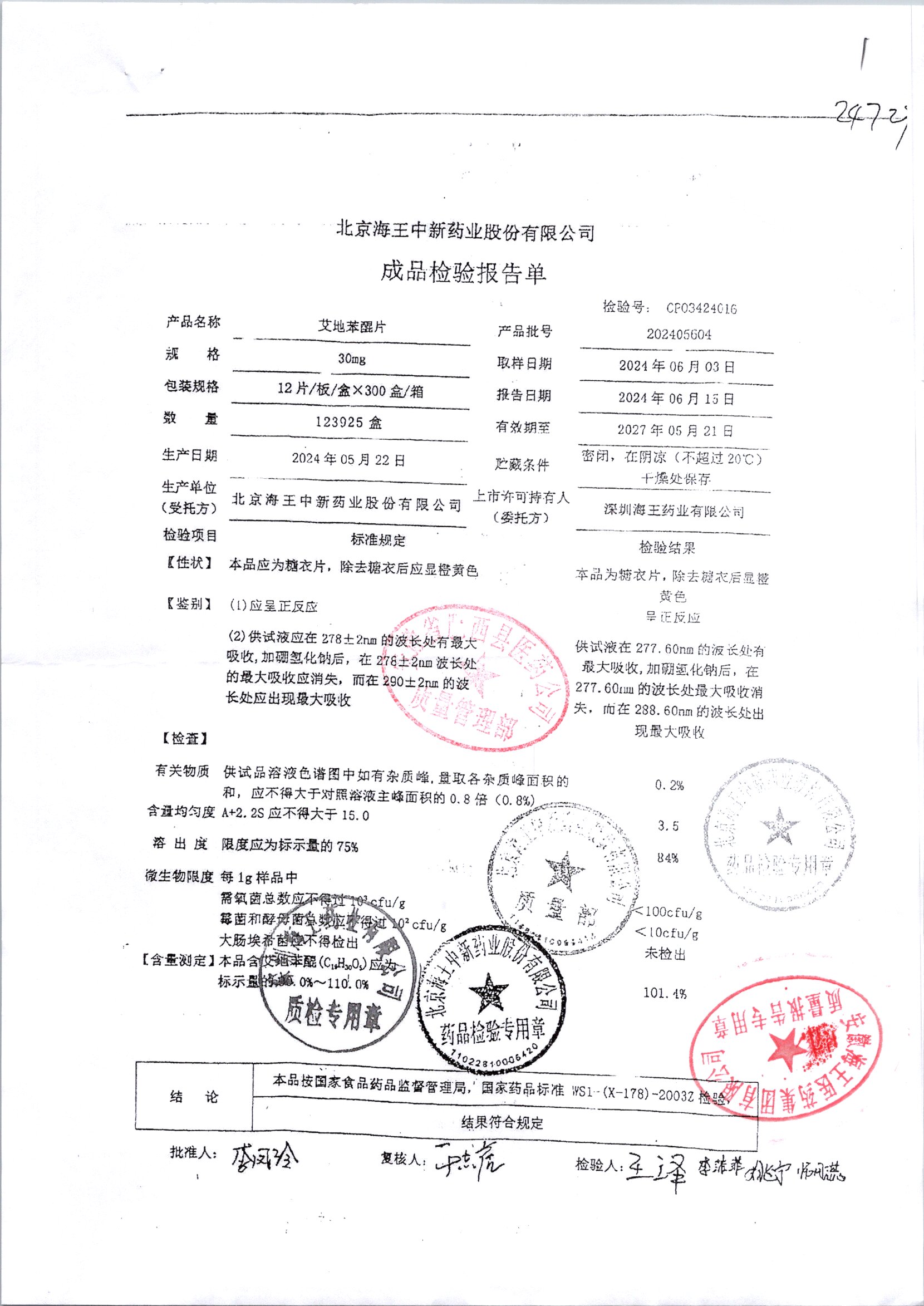| 艾地苯醌片 | 30mg*12片 | 202409611/1 | 查看詳情 |