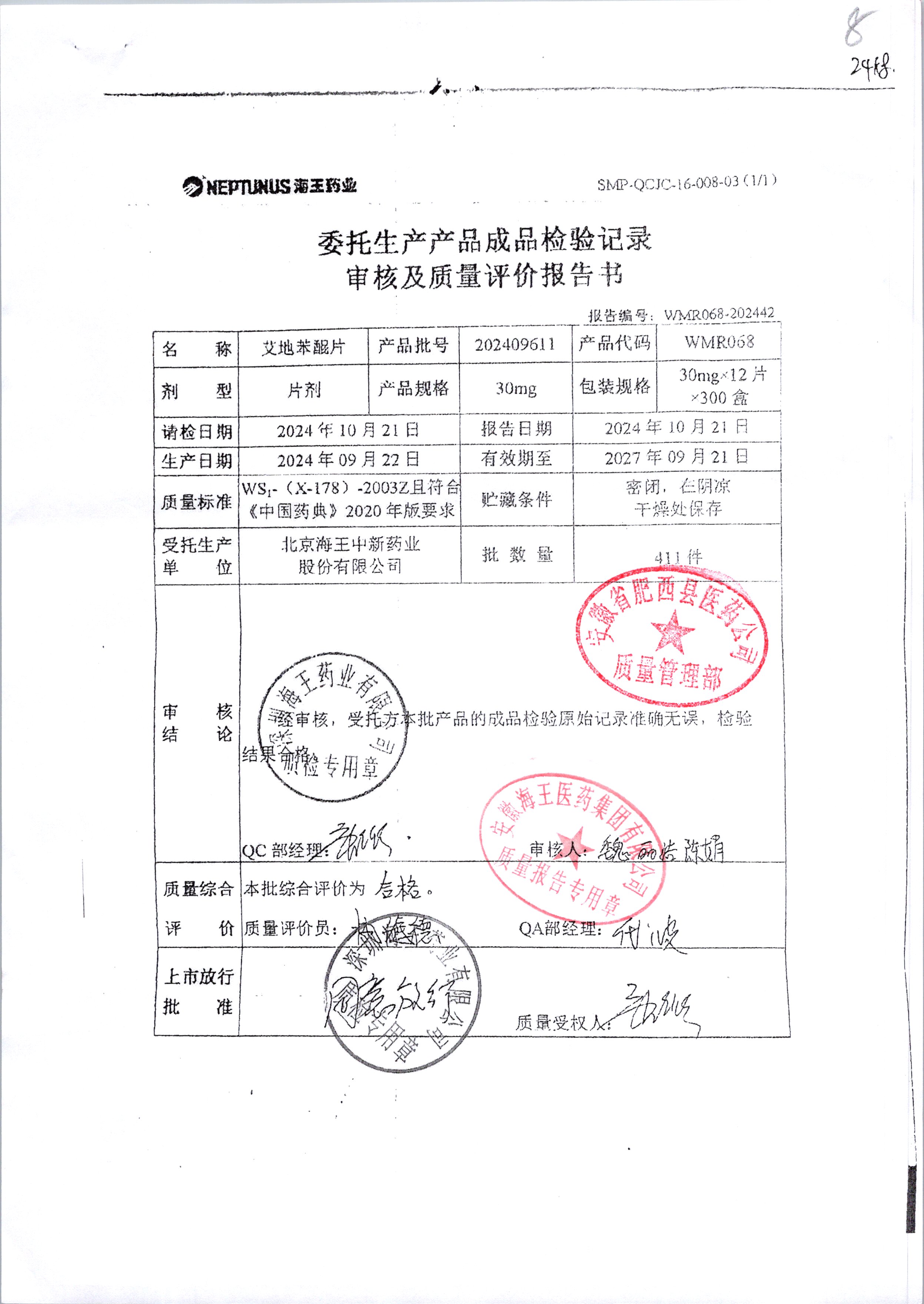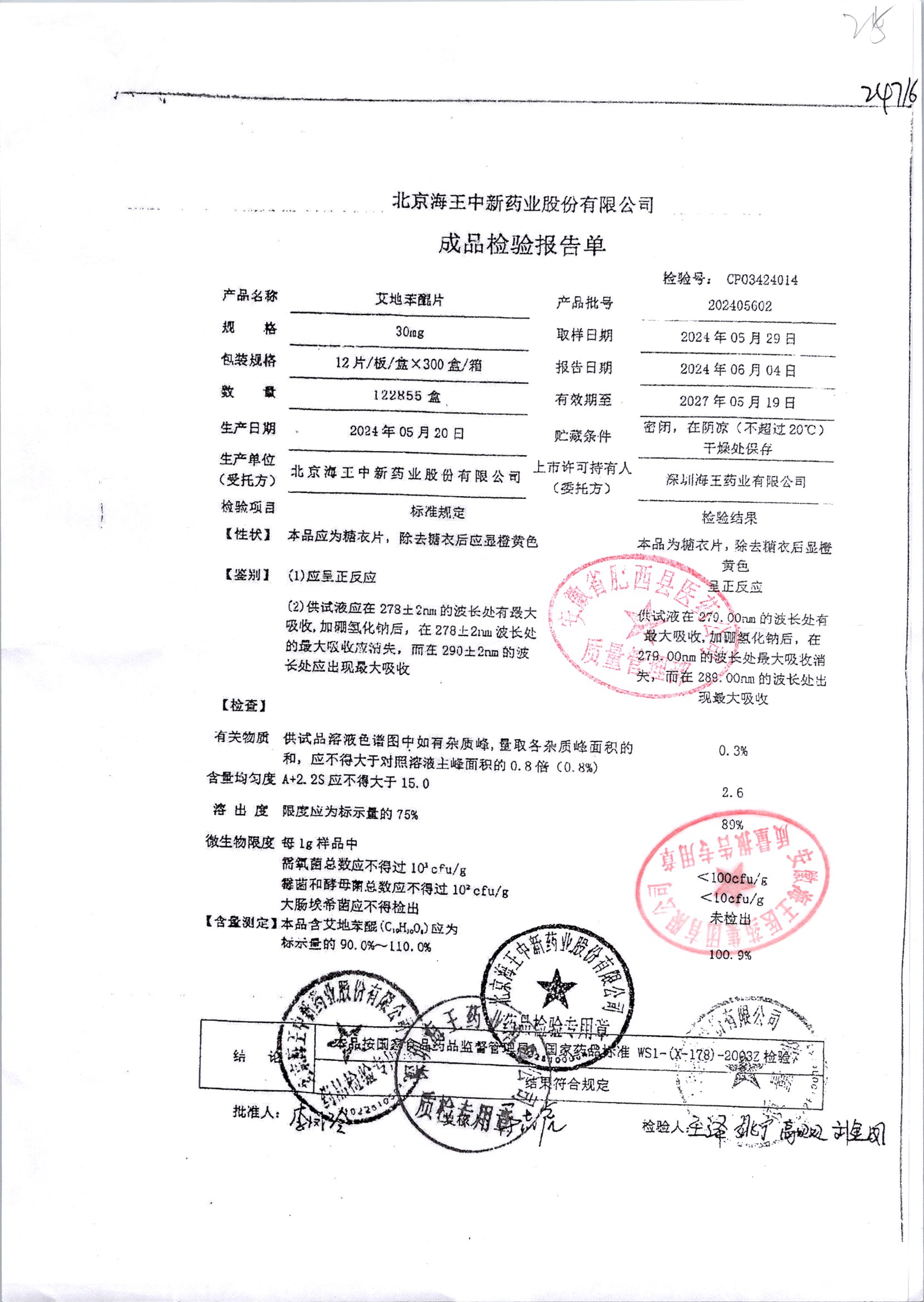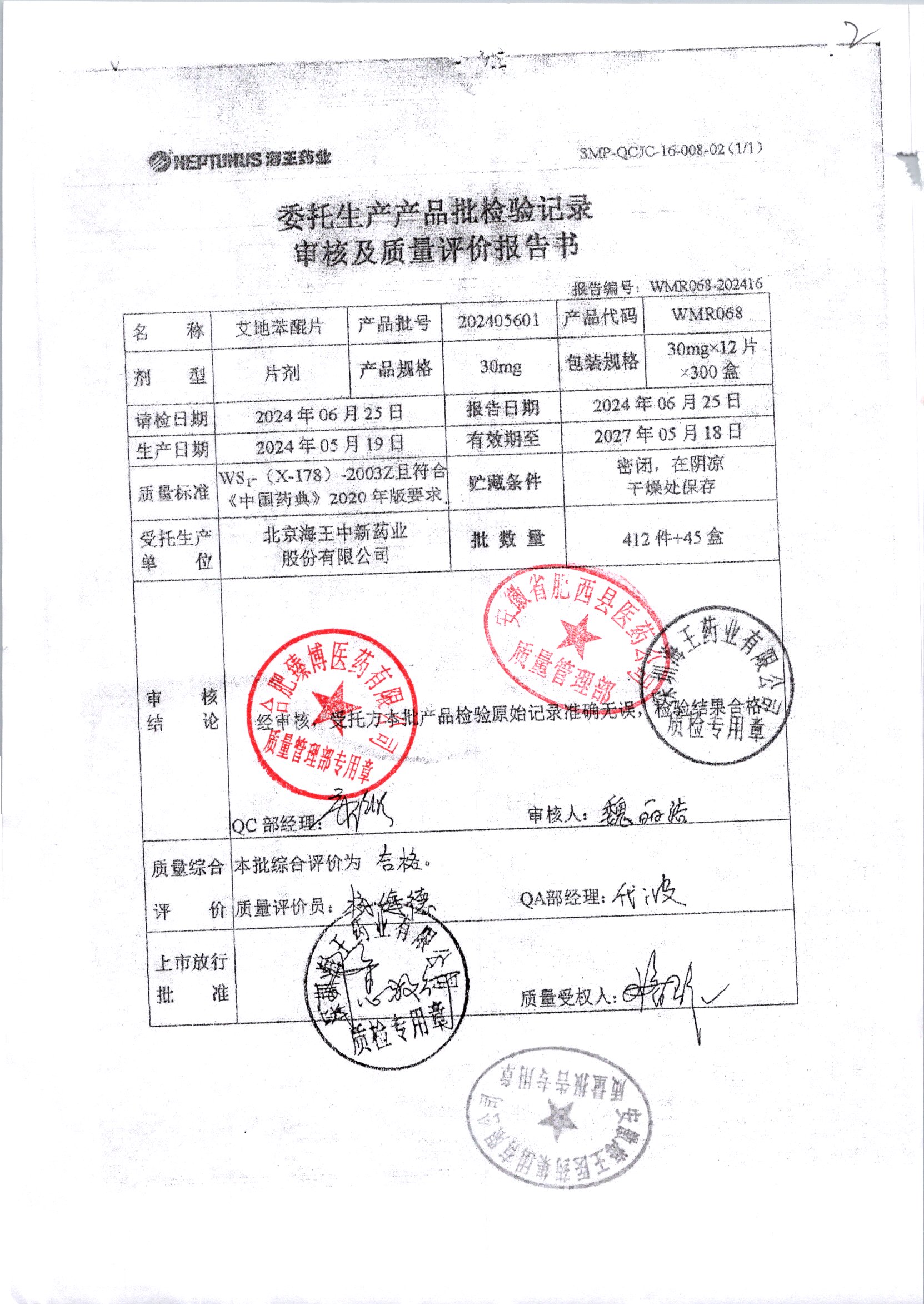 | 艾地苯醌片 | 30mg*12片 | 202409611/1 | 查看詳情 |