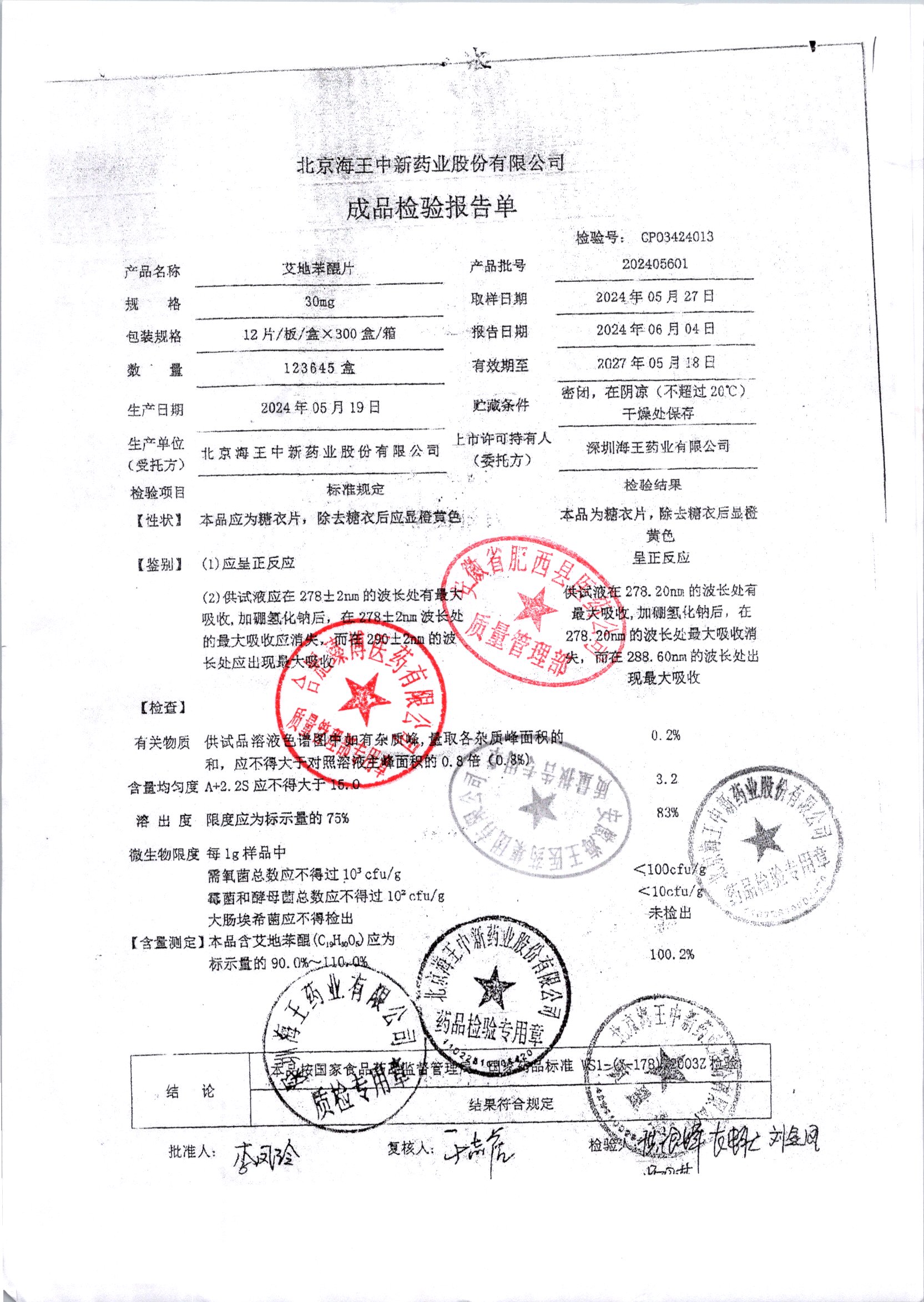 | 艾地苯醌片 | 30mg*12片 | 202405604/1 | 查看詳情 |
