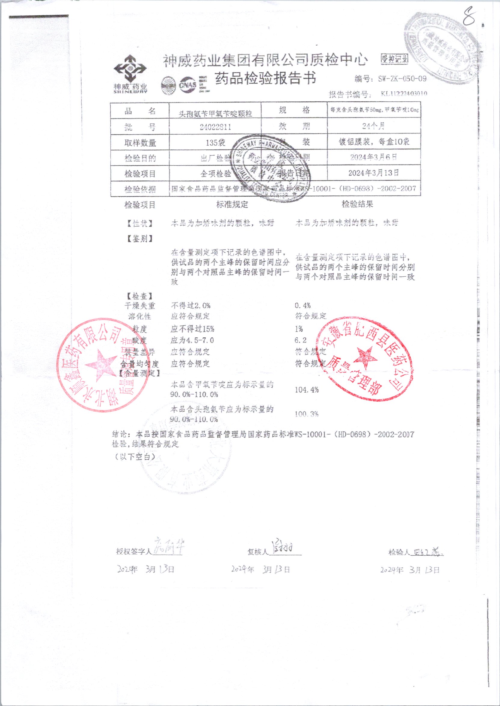 名稱 規(guī)格 批號(hào) 藥檢報(bào)告