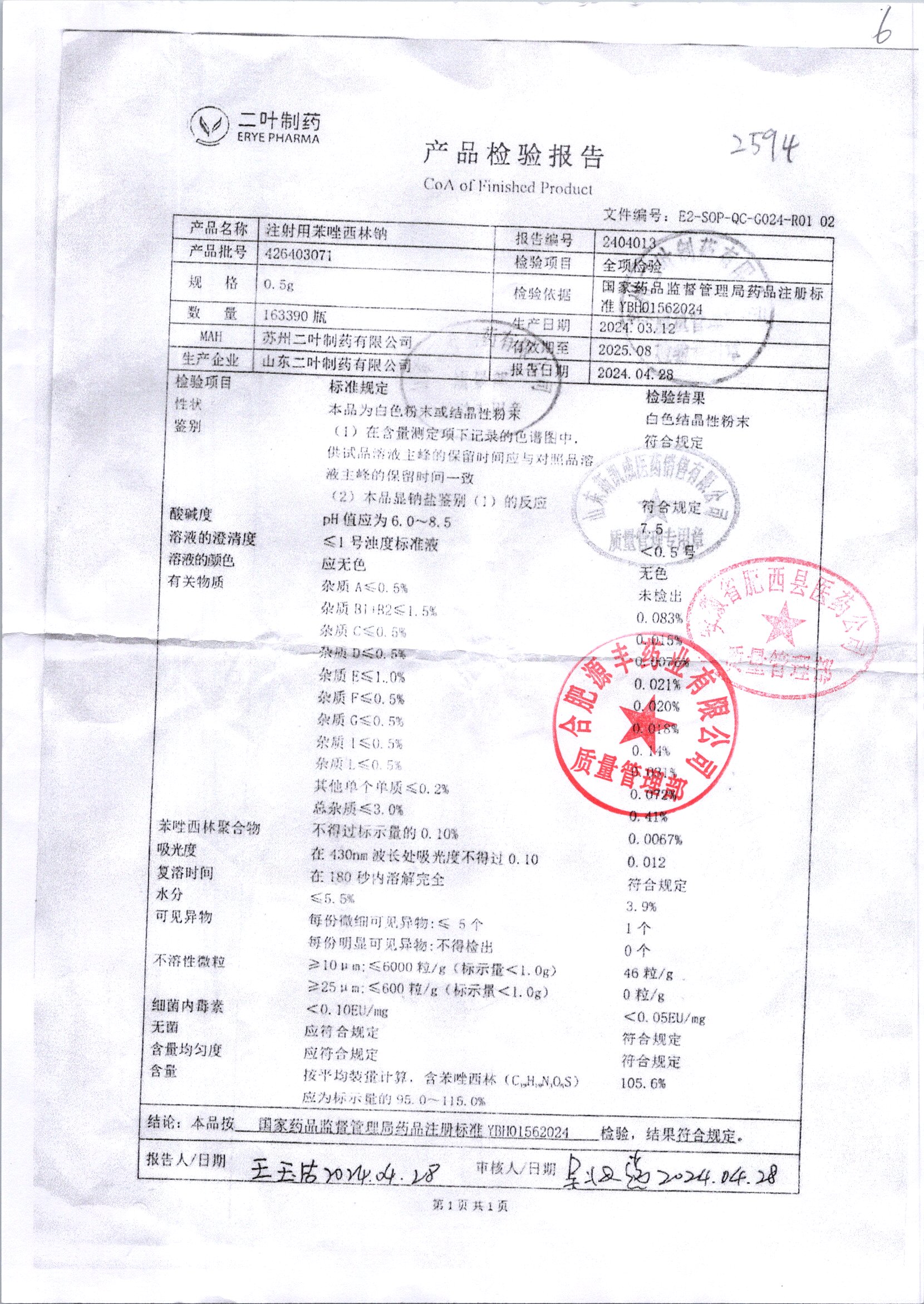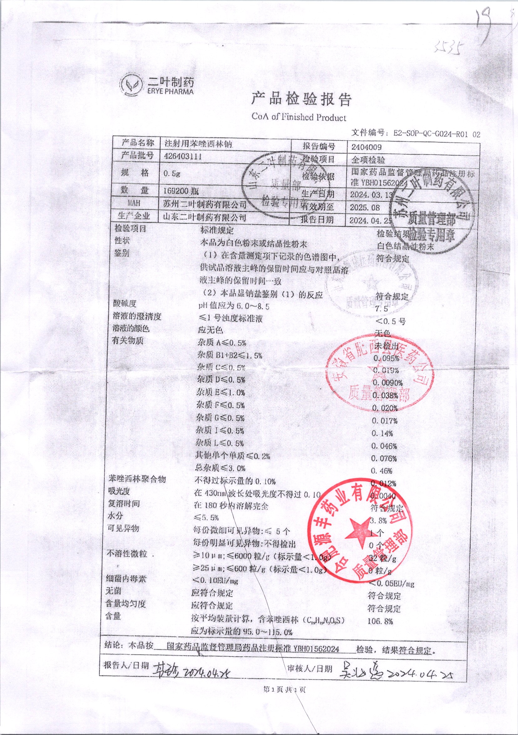 名稱 規(guī)格 批號(hào) 藥檢報(bào)告