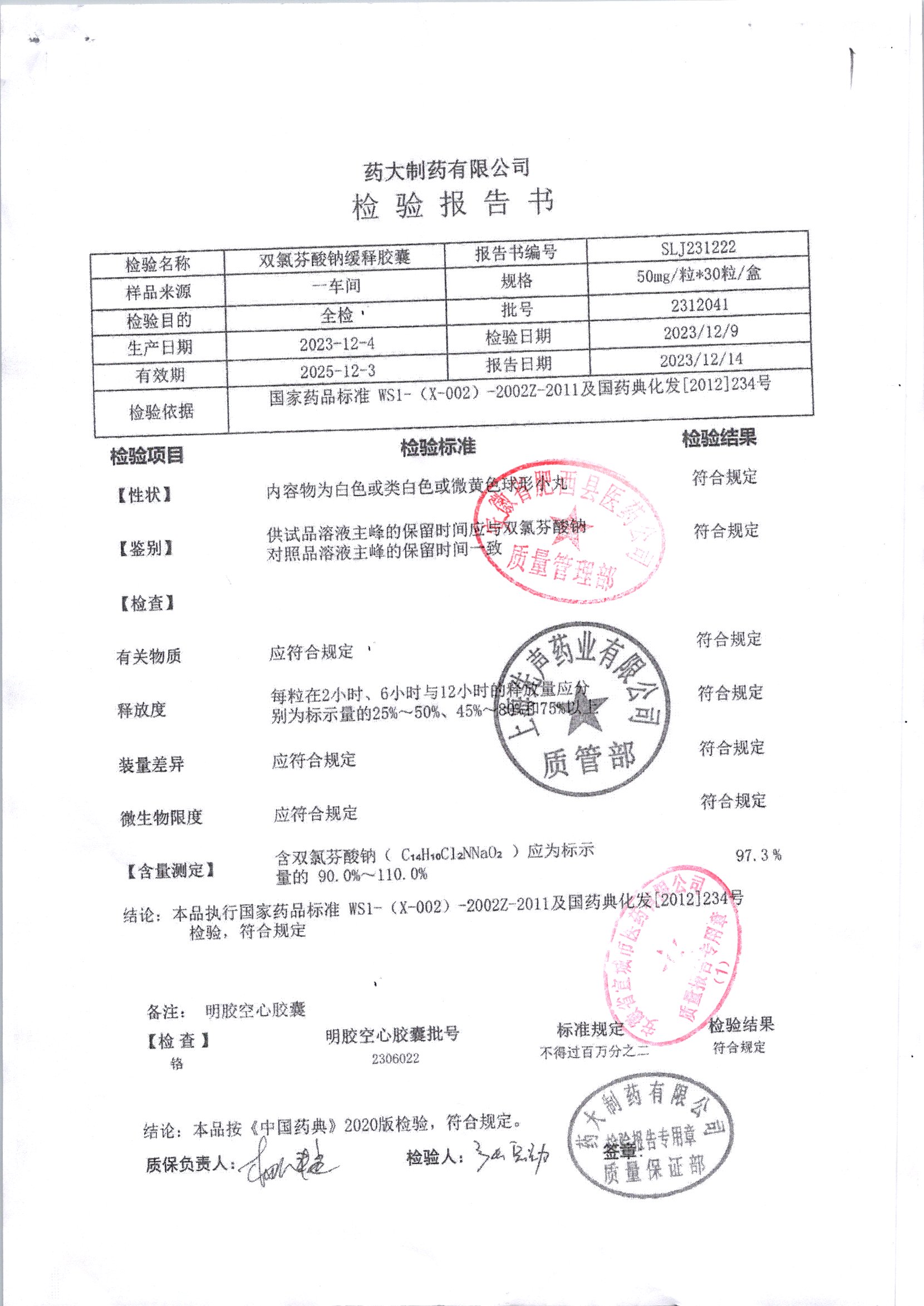 雙氯芬酸鈉緩釋膠囊 50mg*30 2312041 查看詳情