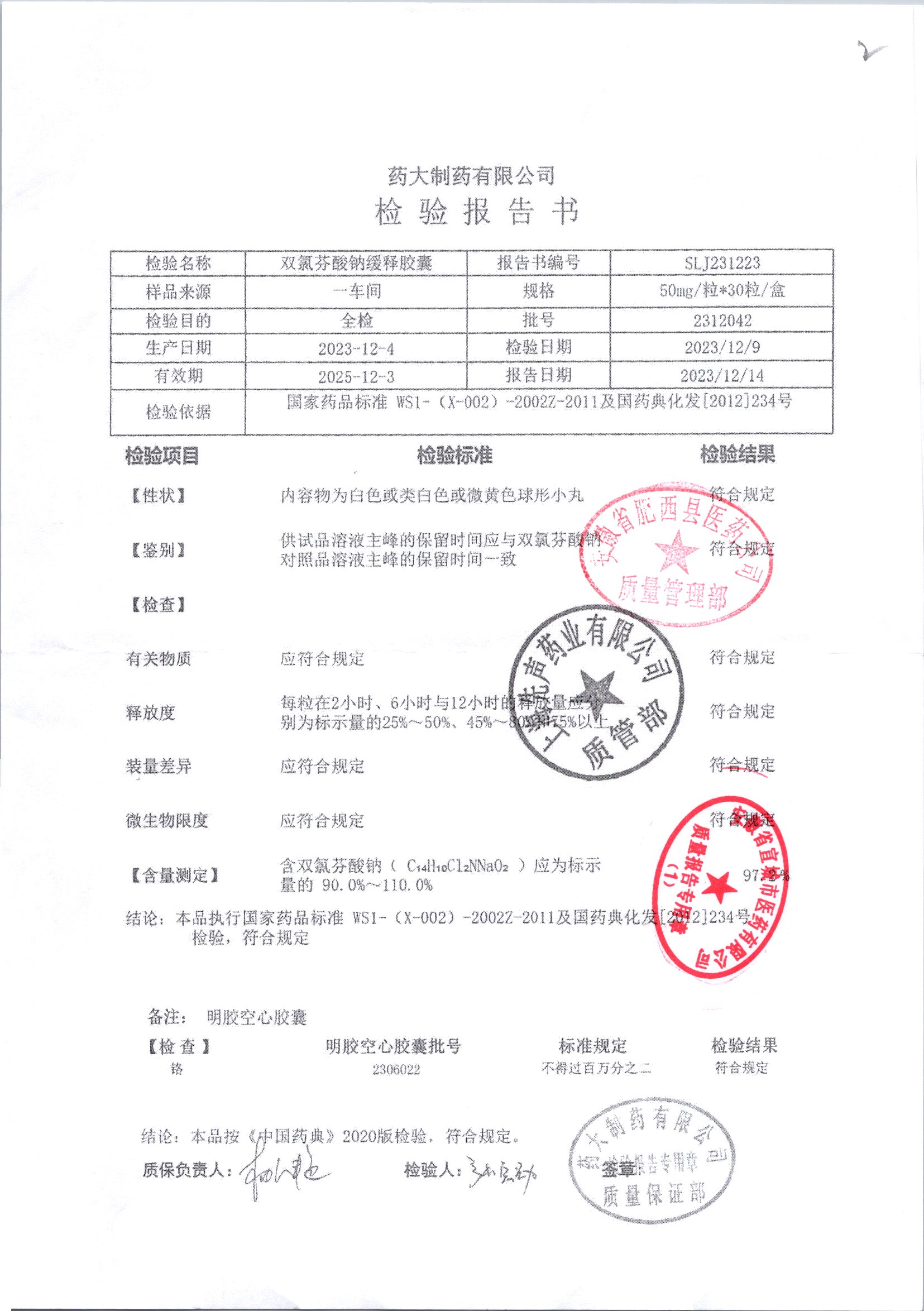 雙氯芬酸鈉緩釋膠囊 50mg*30 2312042 查看詳情