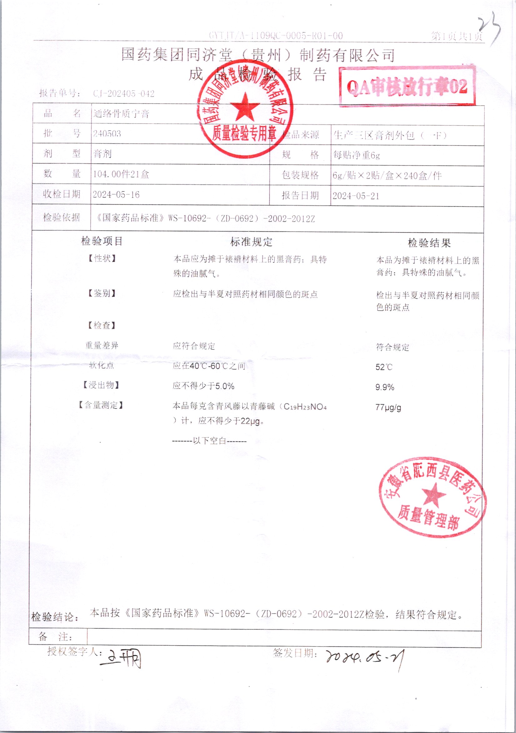 名稱 規(guī)格 批號 藥檢報告
