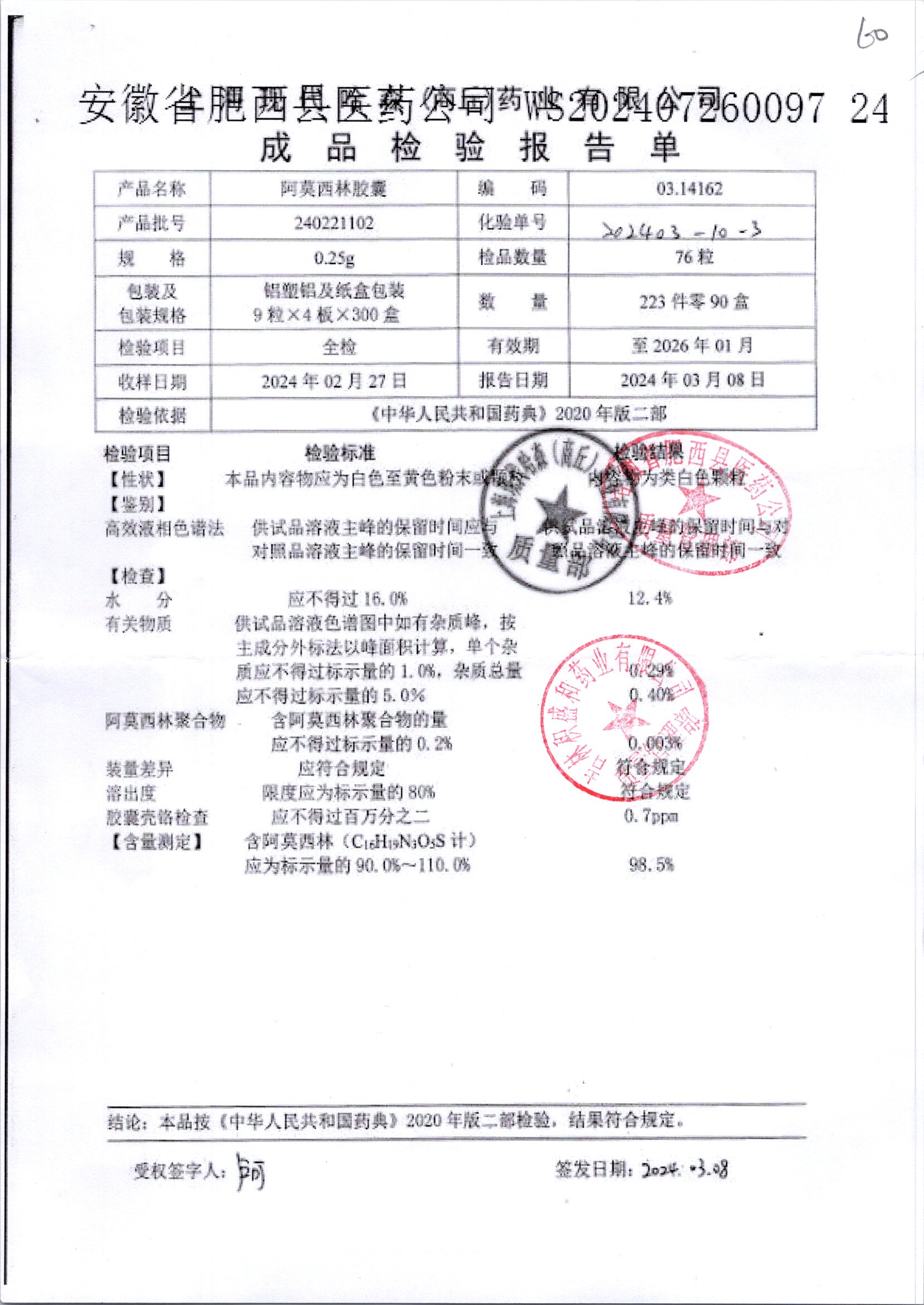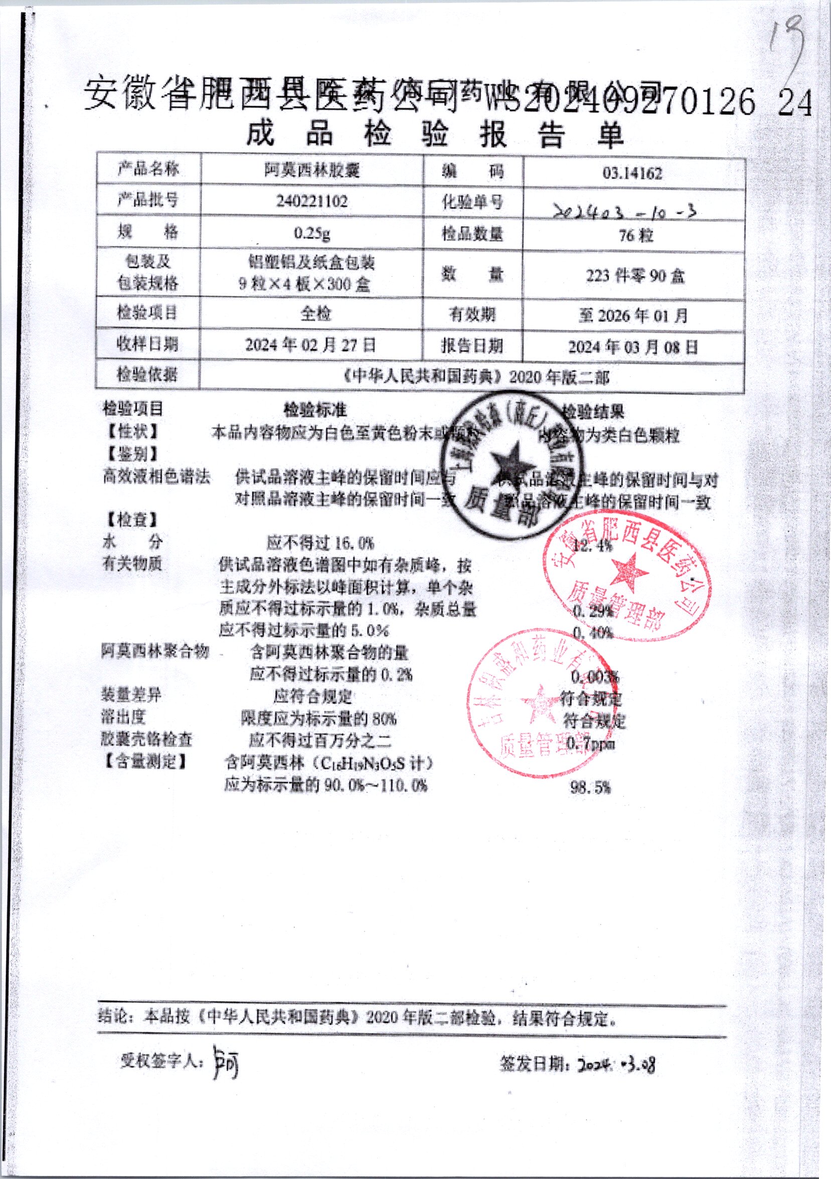 名稱 規(guī)格 批號 藥檢報告