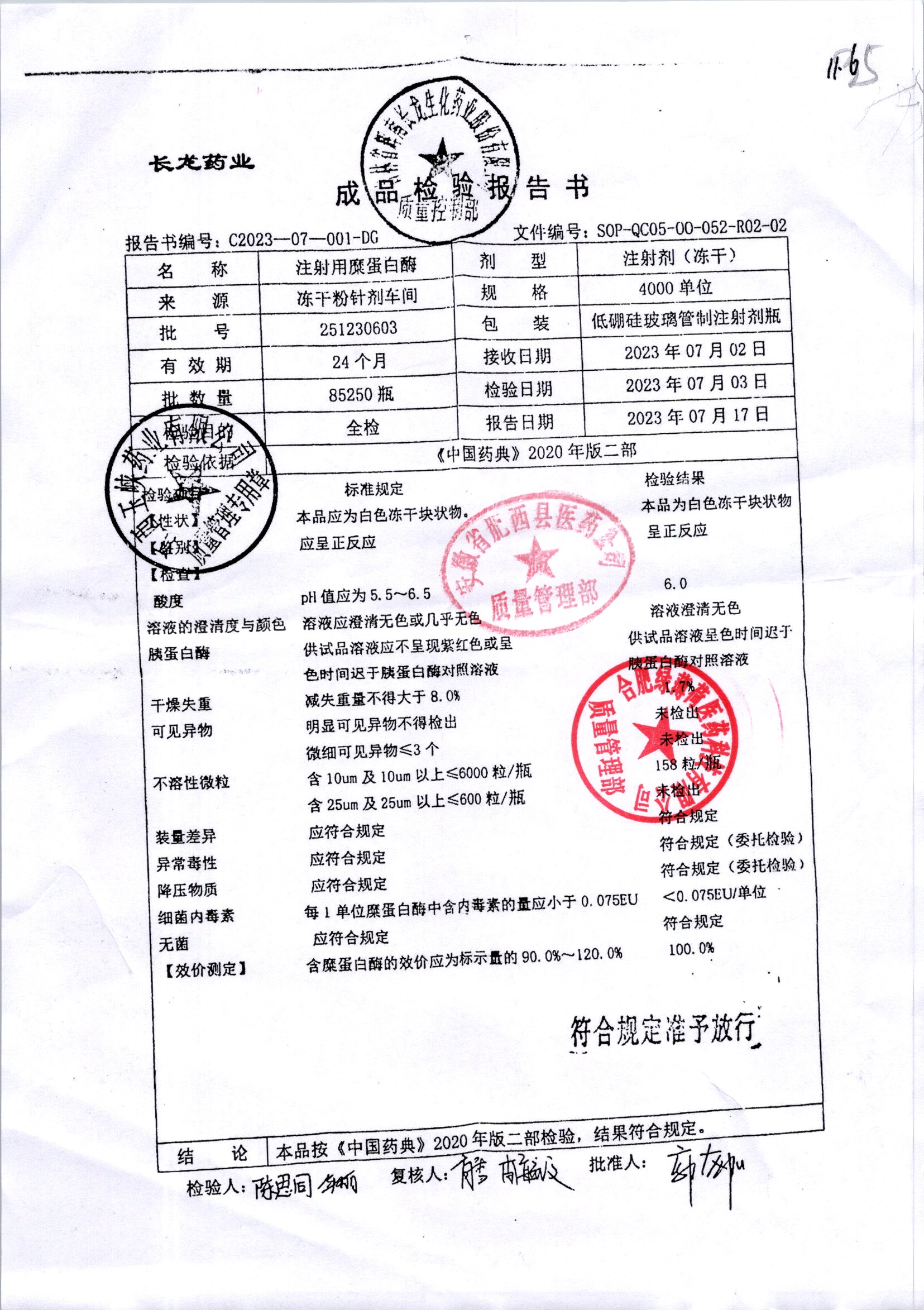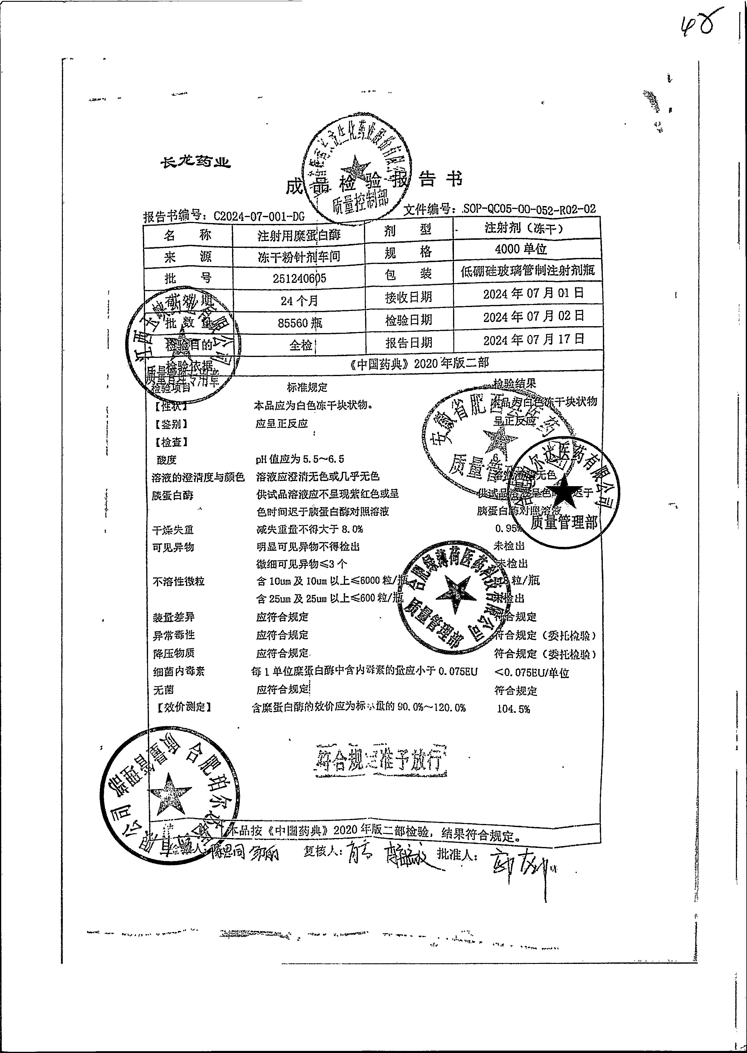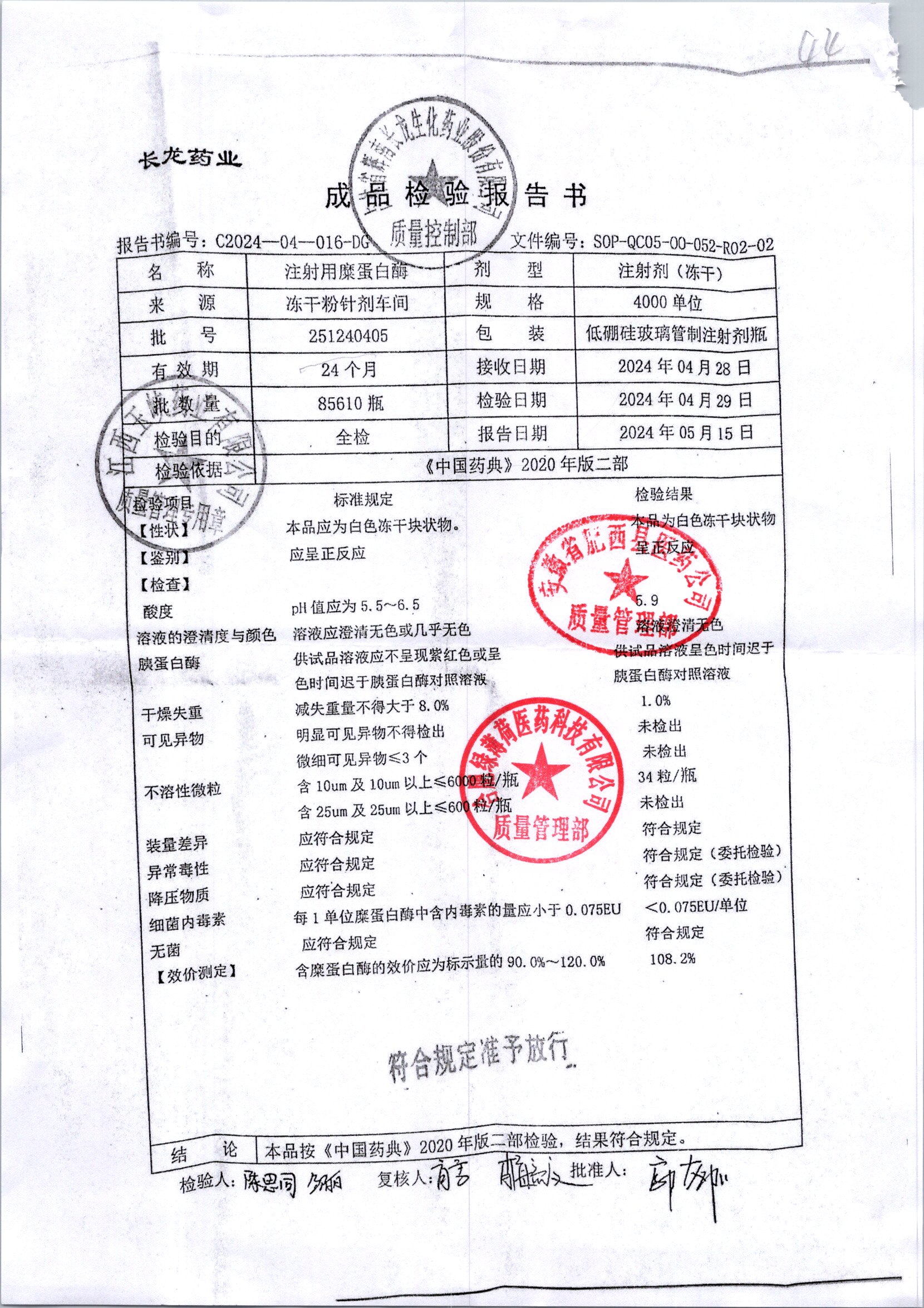| 注射用糜蛋白酶 | 4000單位 | 251240405 | 查看詳情 |