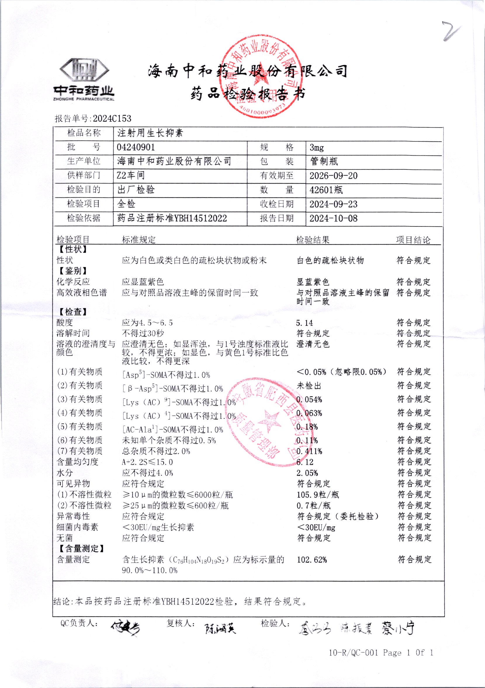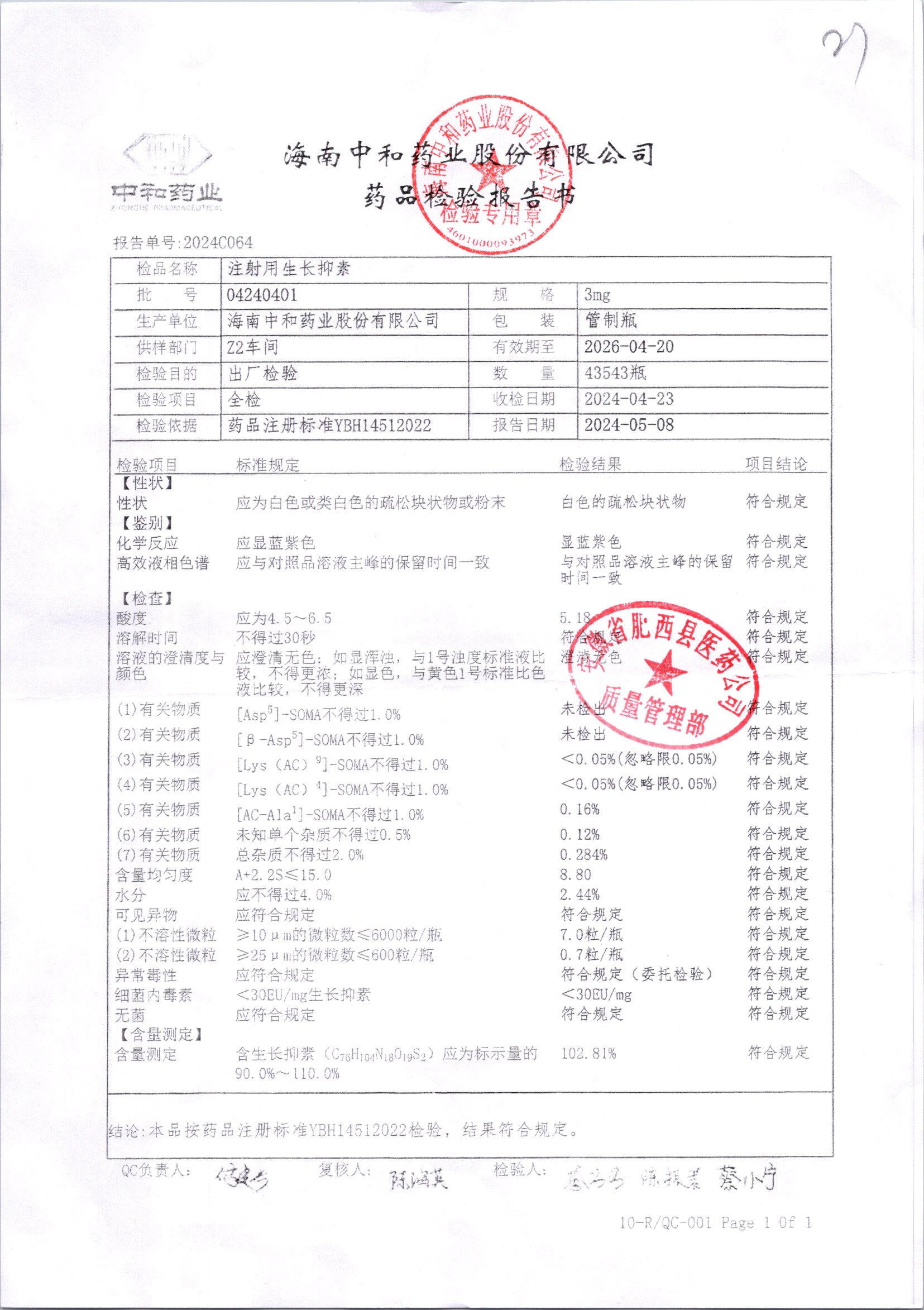 注射用生長抑素 3mg 04240901 查看詳情