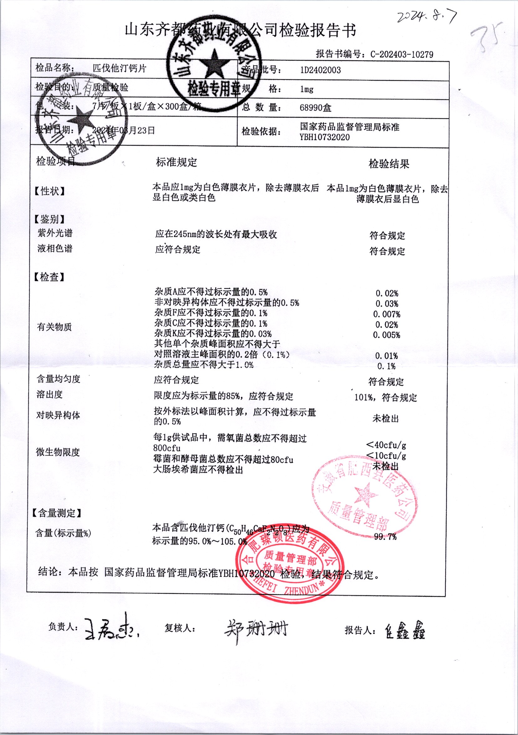 匹伐他汀鈣片 1mg*7 1D2402003 查看詳情