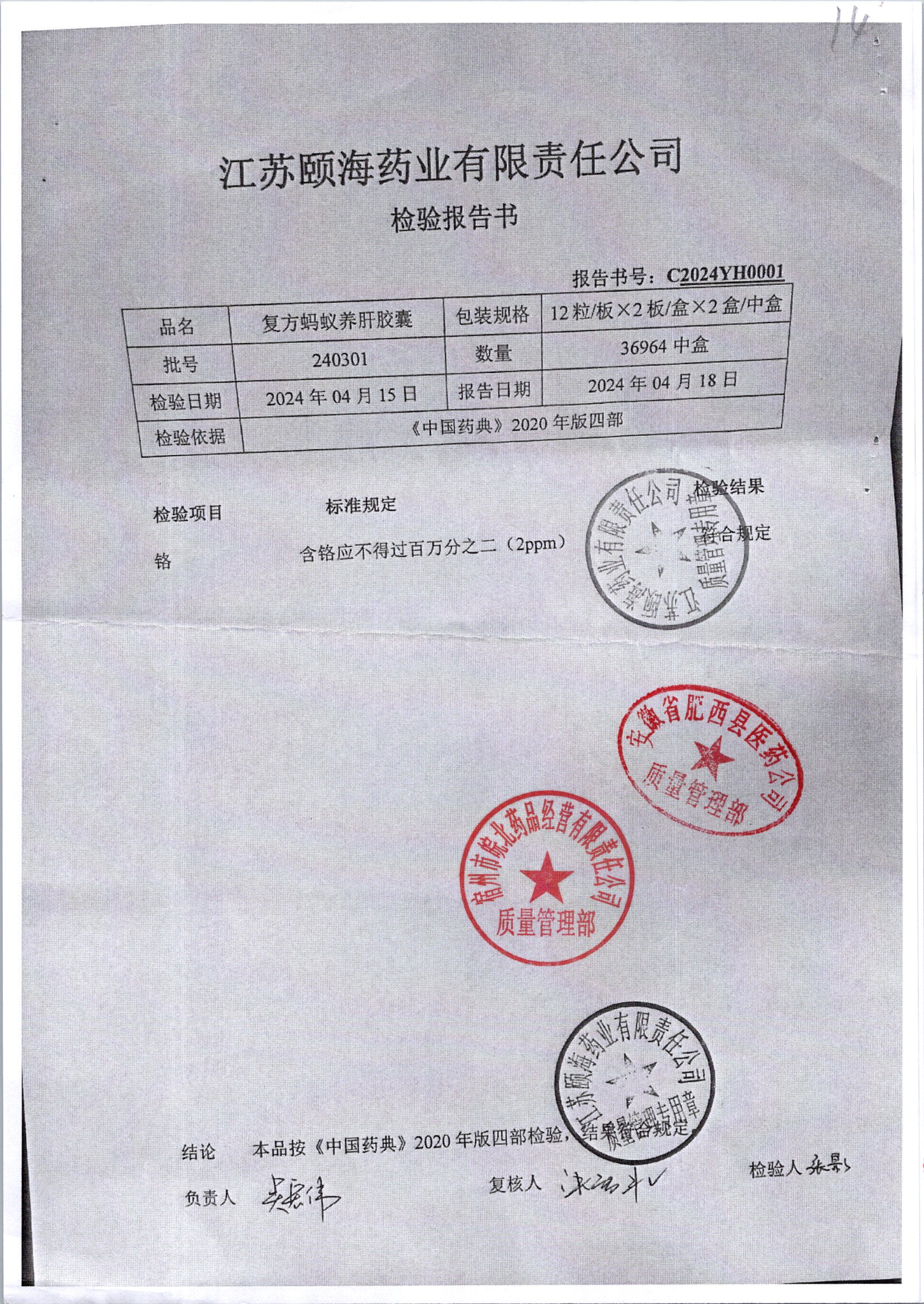 | 復(fù)方螞蟻養(yǎng)肝膠囊 | 24s | 240301/2 | 查看詳情 |