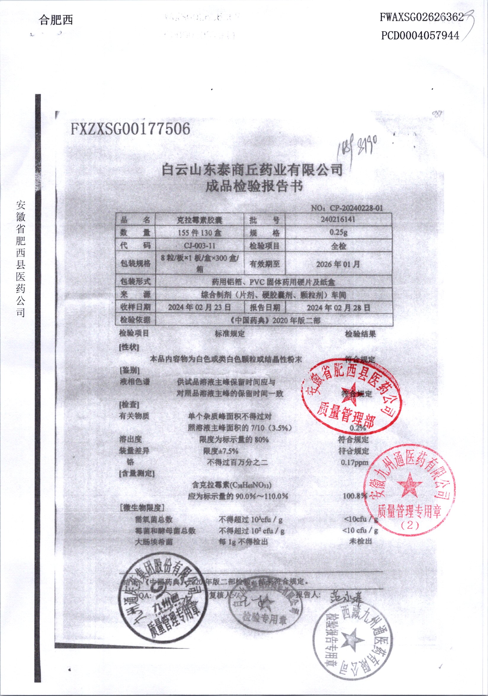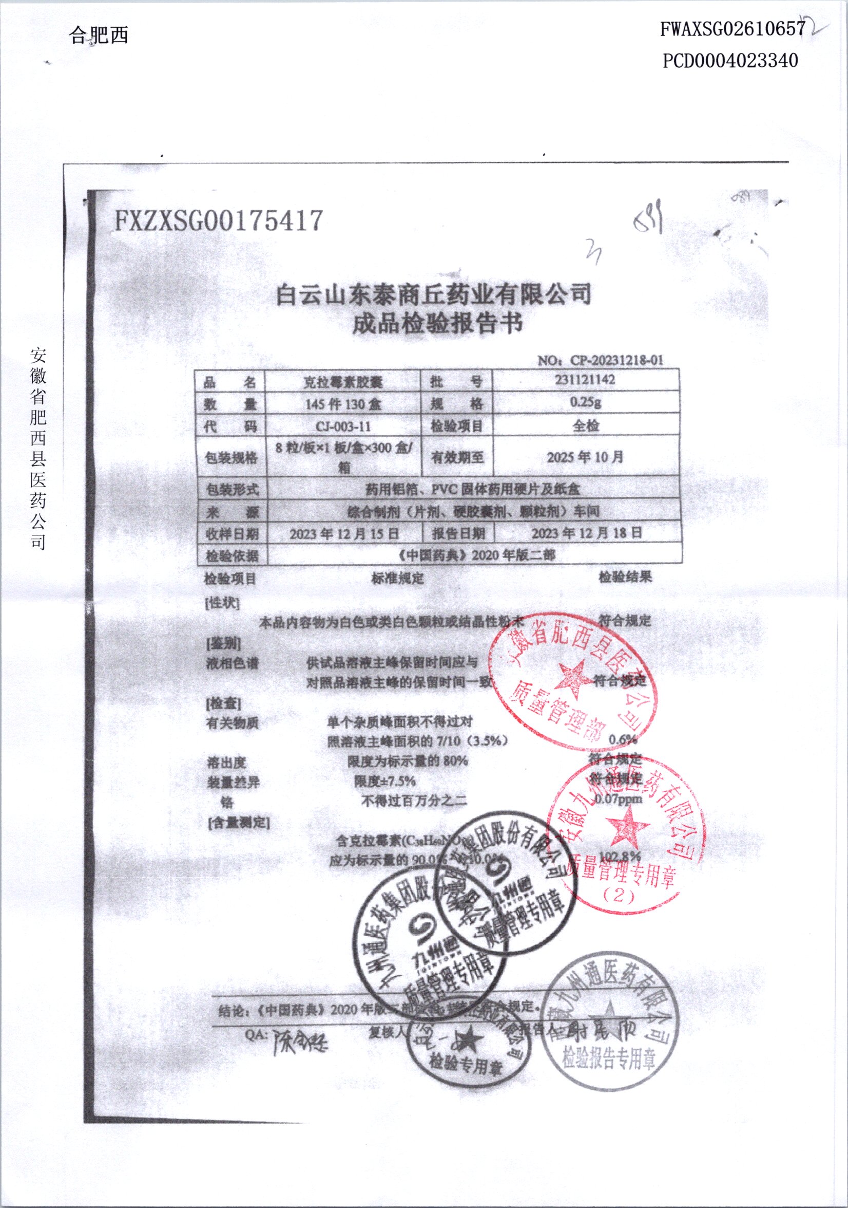 克拉霉素膠囊 0.25g*8粒 231121142 查看詳情