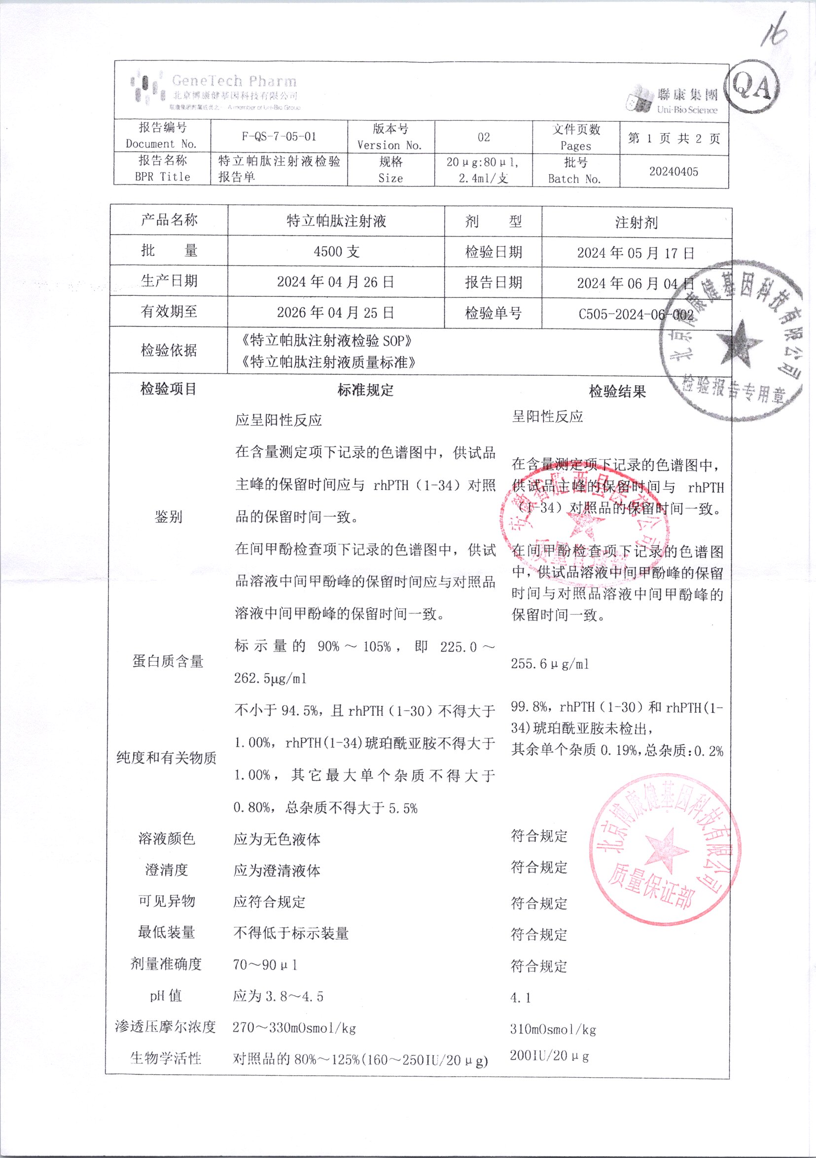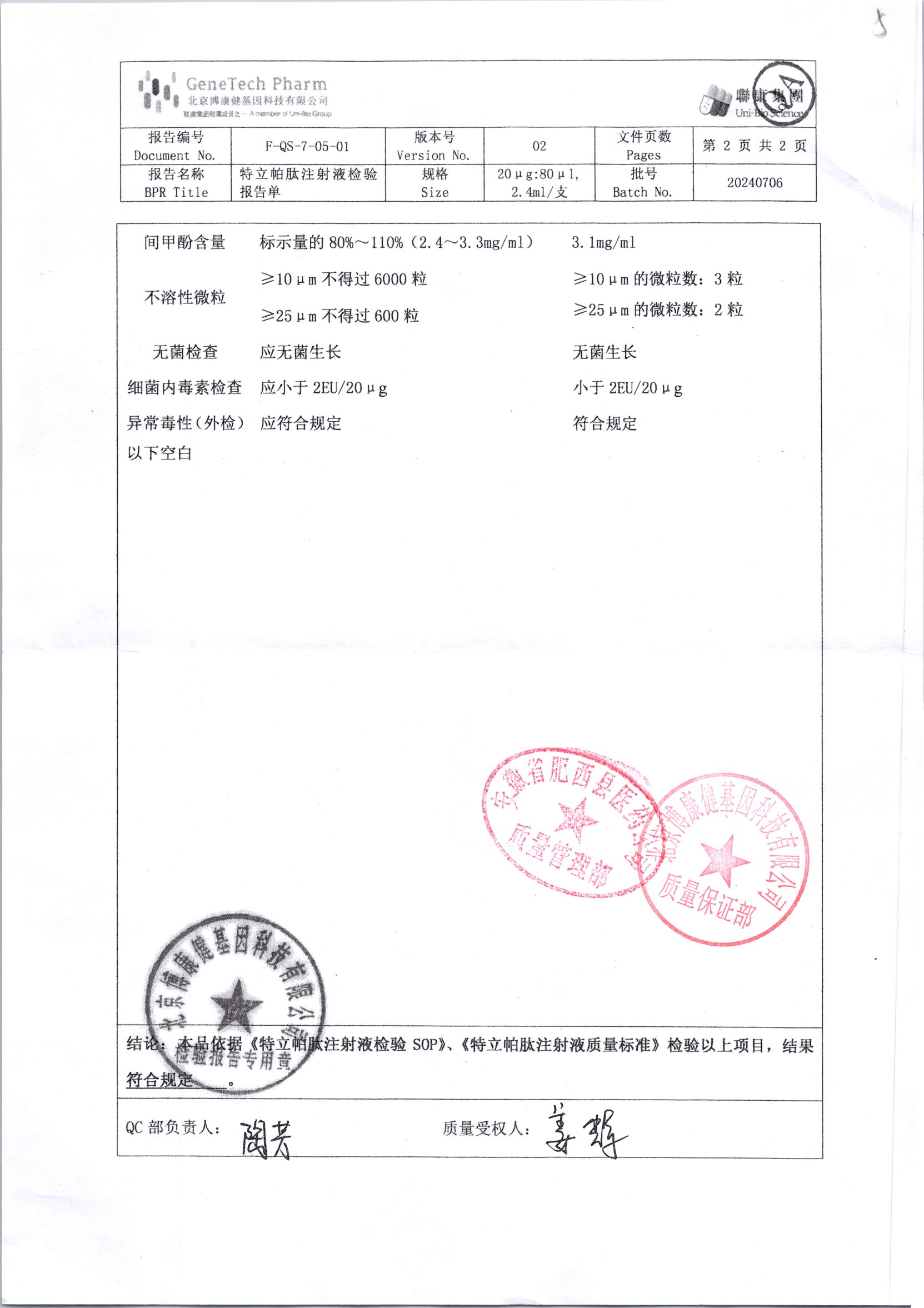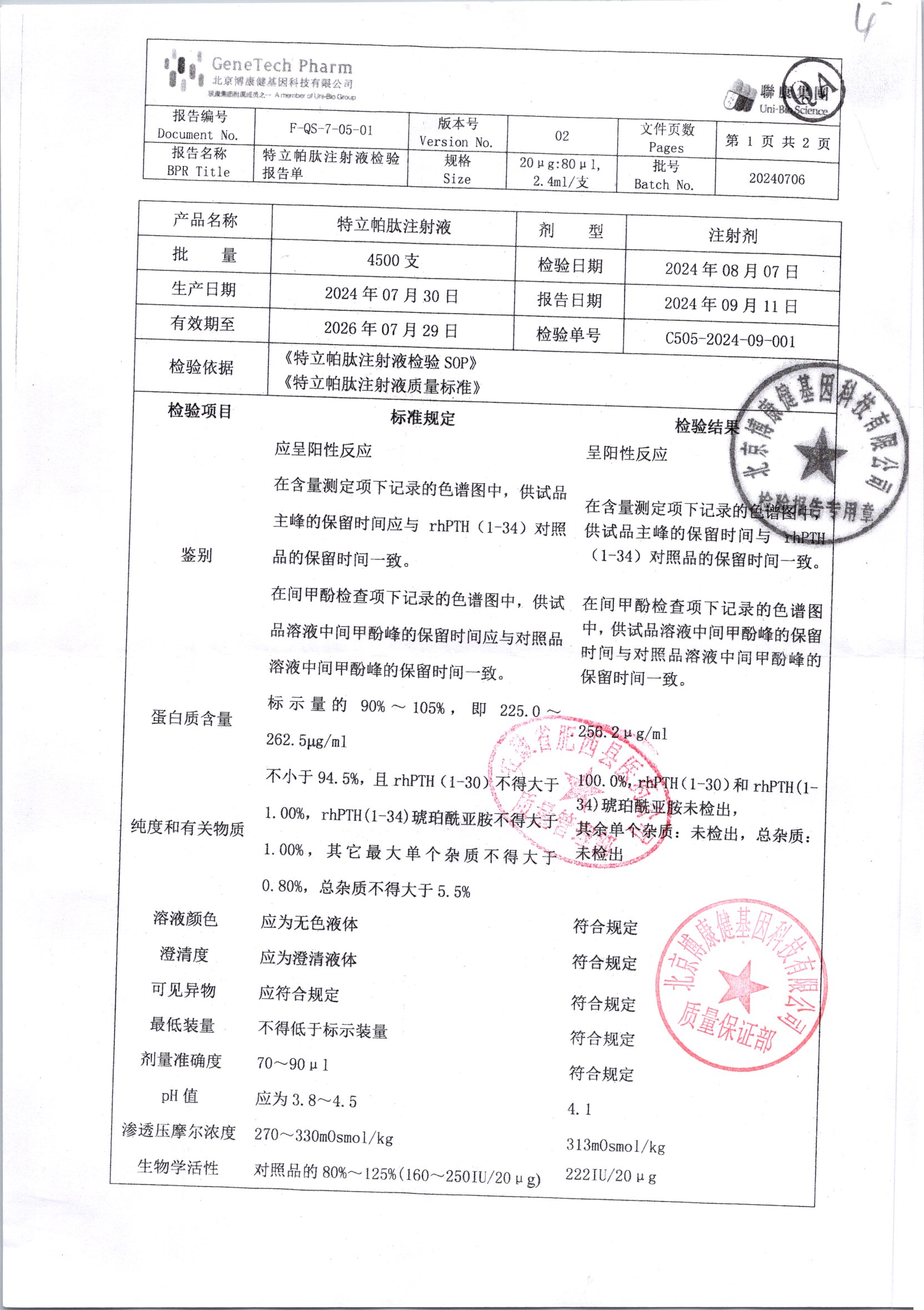 | 特立帕肽注射液 | 20ug:80ul | 20240706/2 | 查看詳情 |