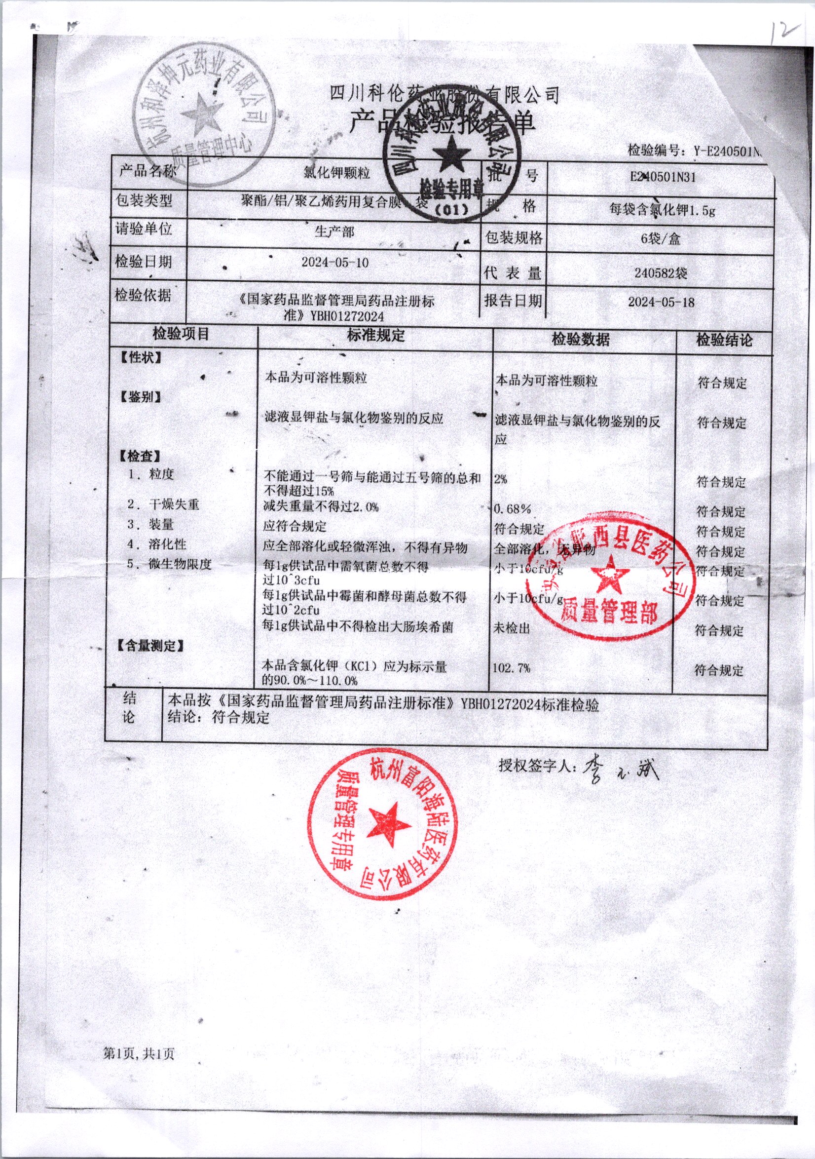氯化鉀顆粒 1.5g*6袋 E240501N31 查看詳情