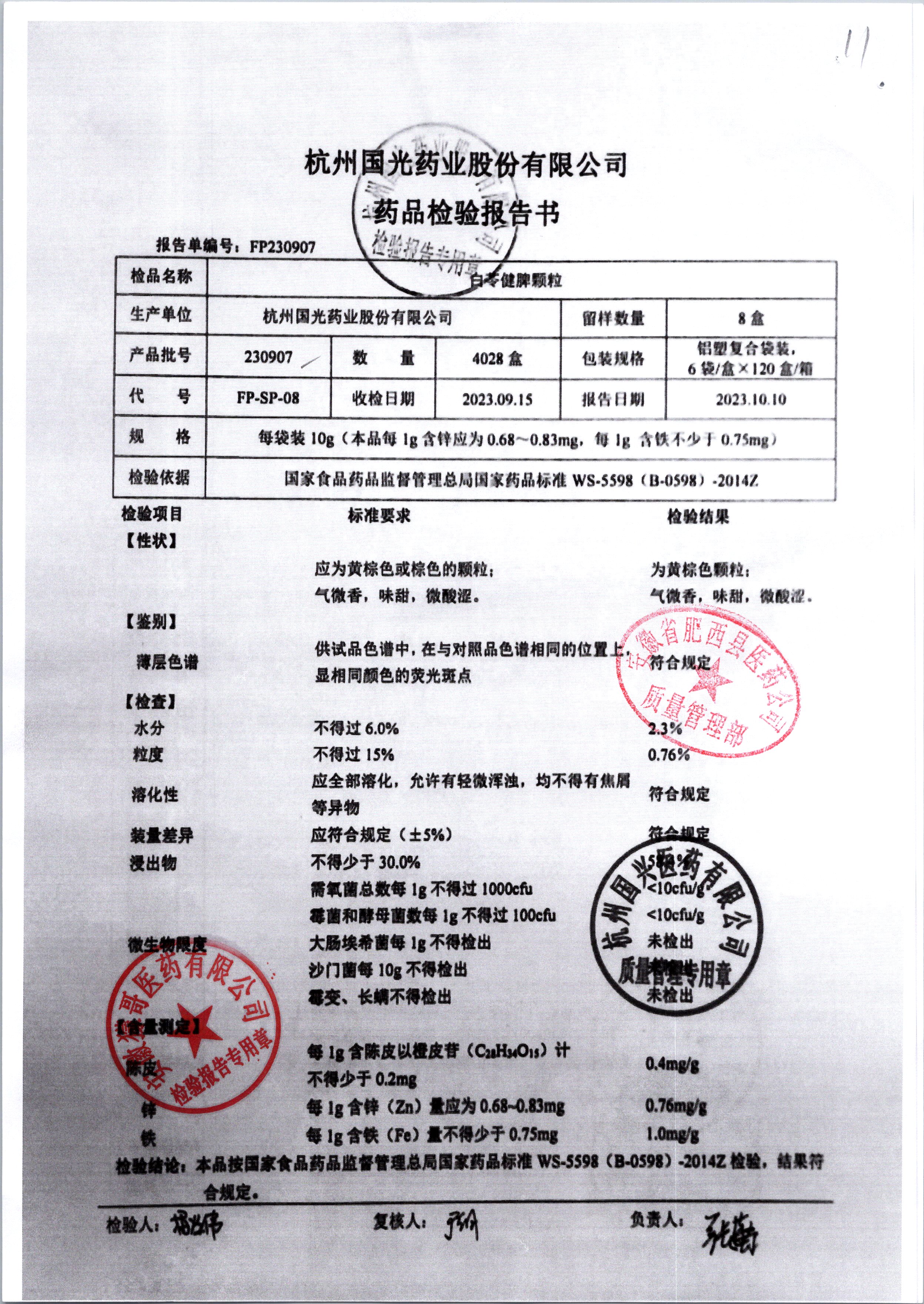 | 白苓健脾顆粒 | 10g*6袋 | 240512 | 查看詳情 |