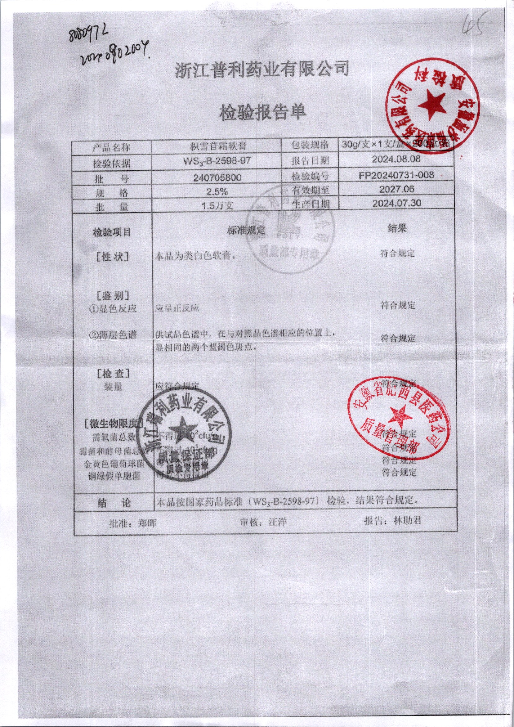 名稱 規(guī)格 批號 藥檢報告