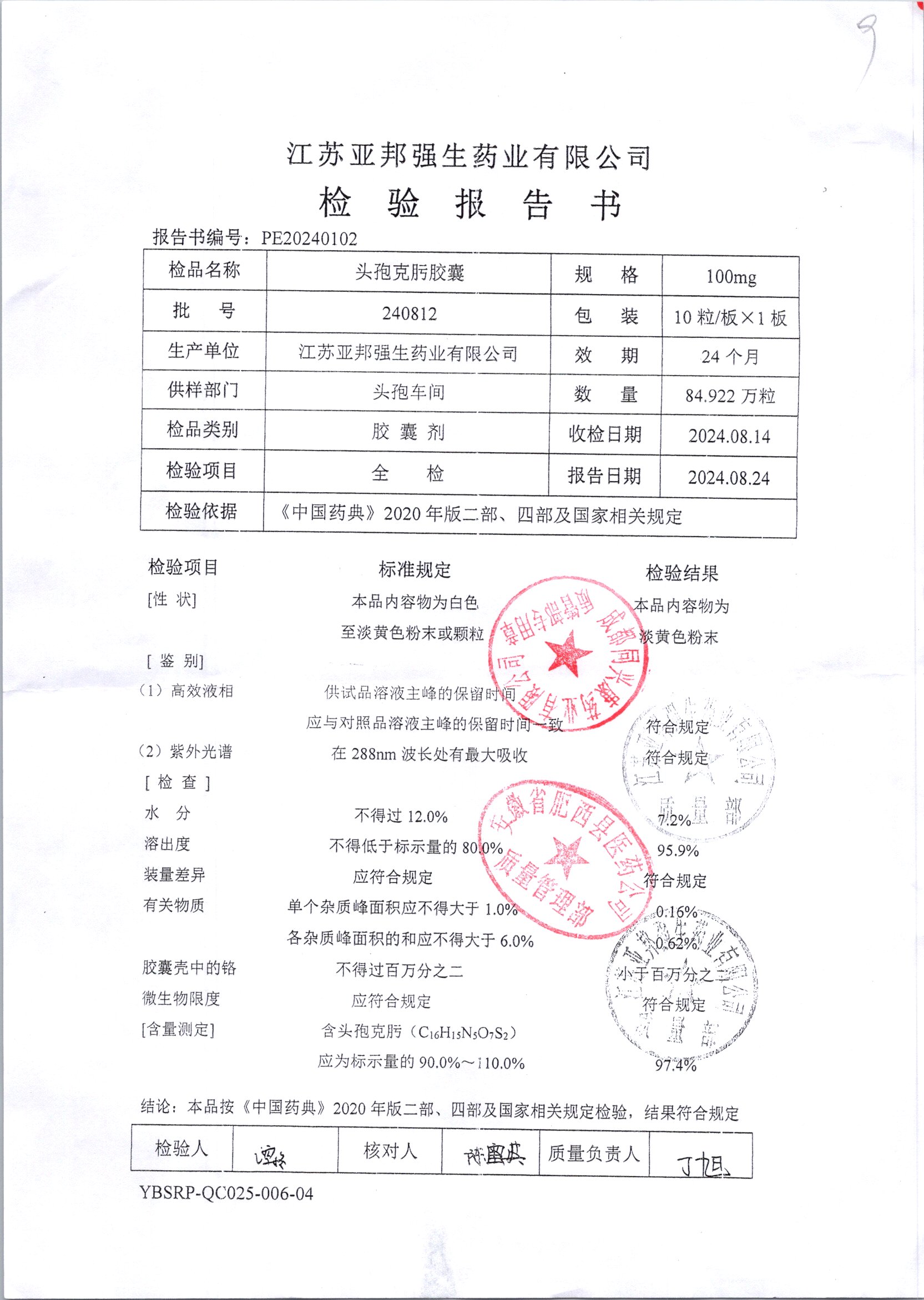 頭孢克肟膠囊 100mg*10s 240812 查看詳情