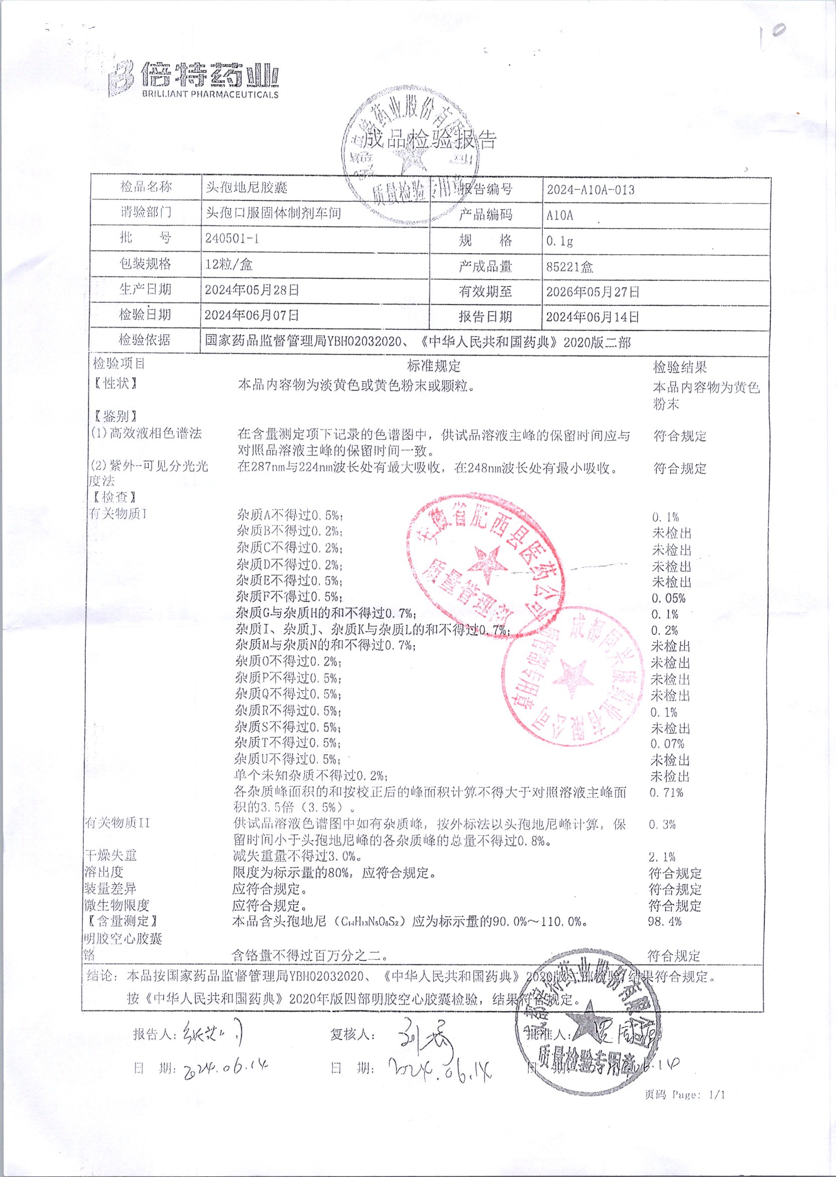 頭孢地尼膠囊 0.1g*12粒 240501-1 查看詳情