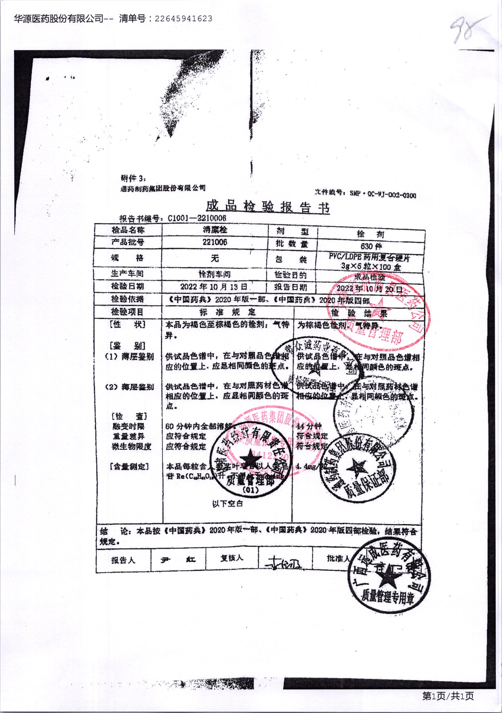 名稱 規(guī)格 批號(hào) 藥檢報(bào)告
