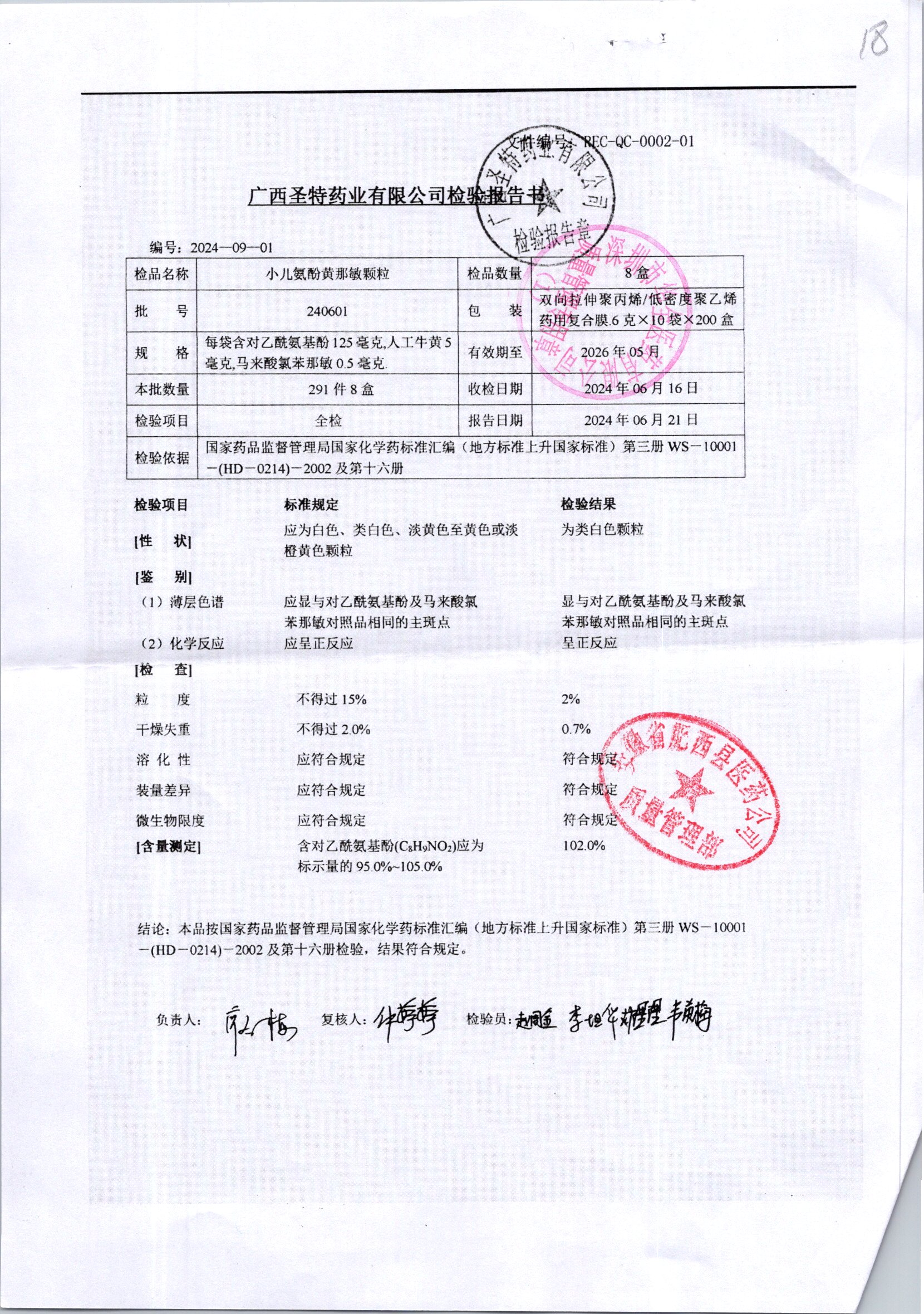 名稱 規(guī)格 批號 藥檢報告
