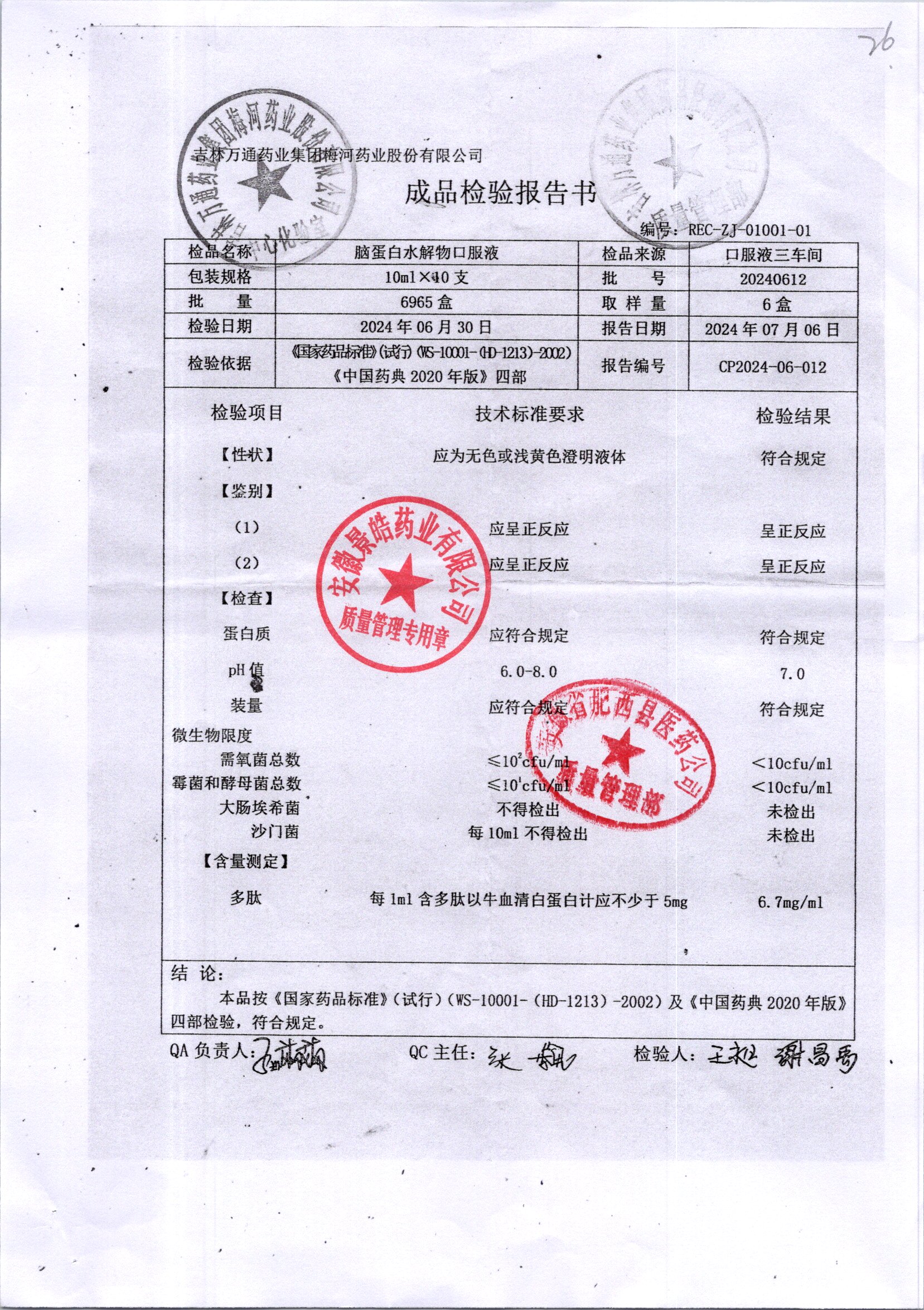 腦蛋白水解物口服液 10ml*10支 20240612 查看詳情