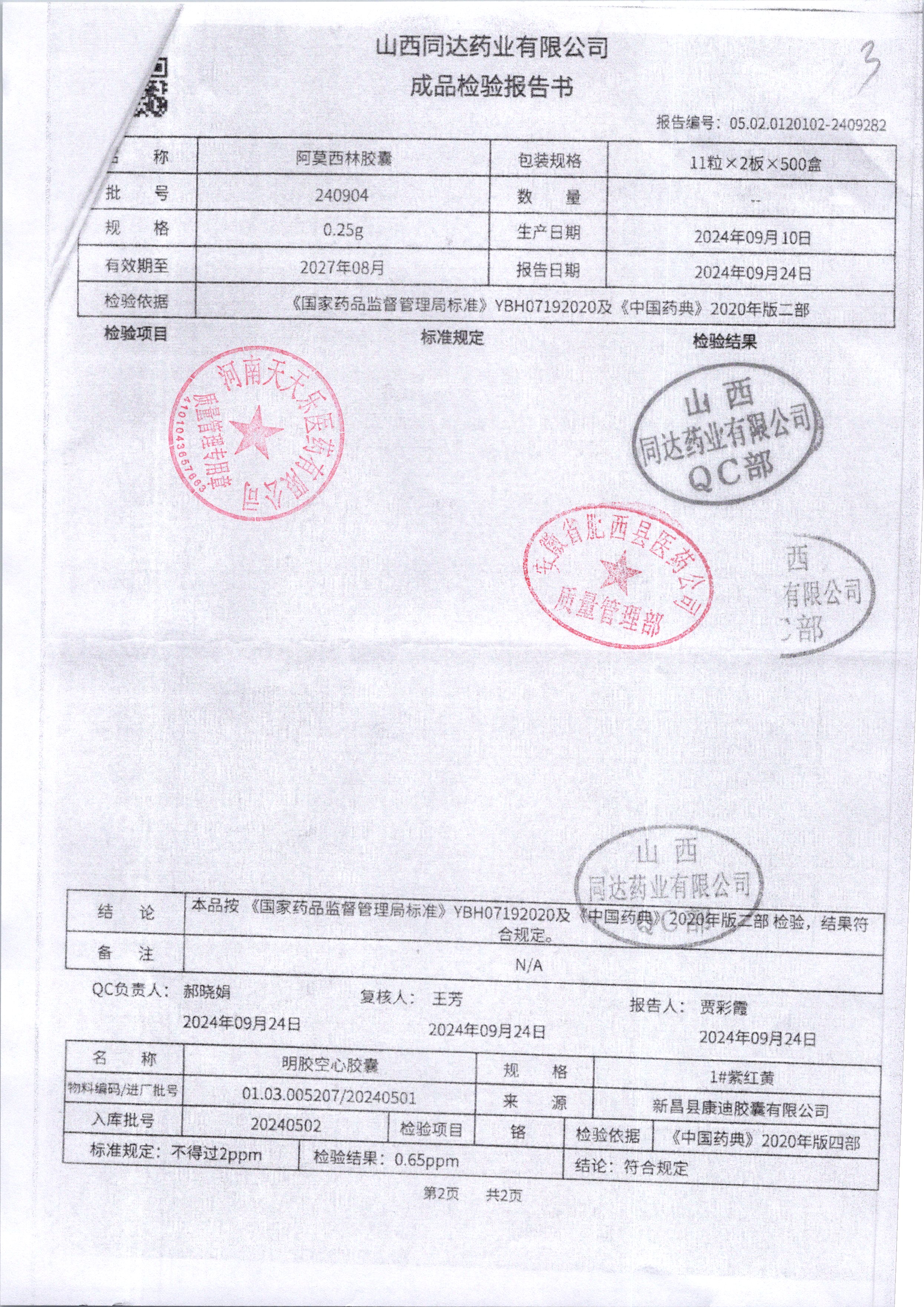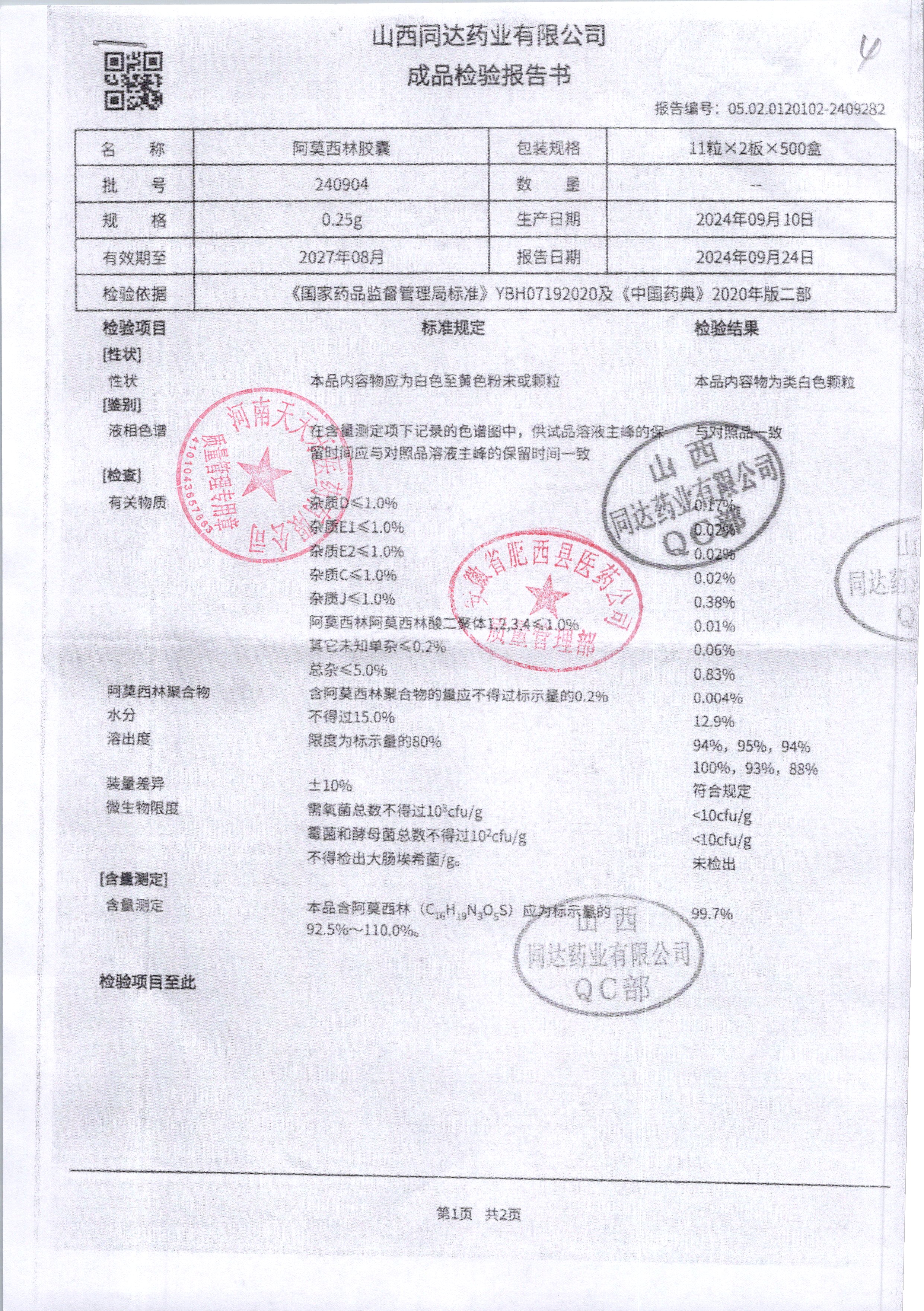 阿莫西林膠囊 025G*22s 240904/2 查看詳情