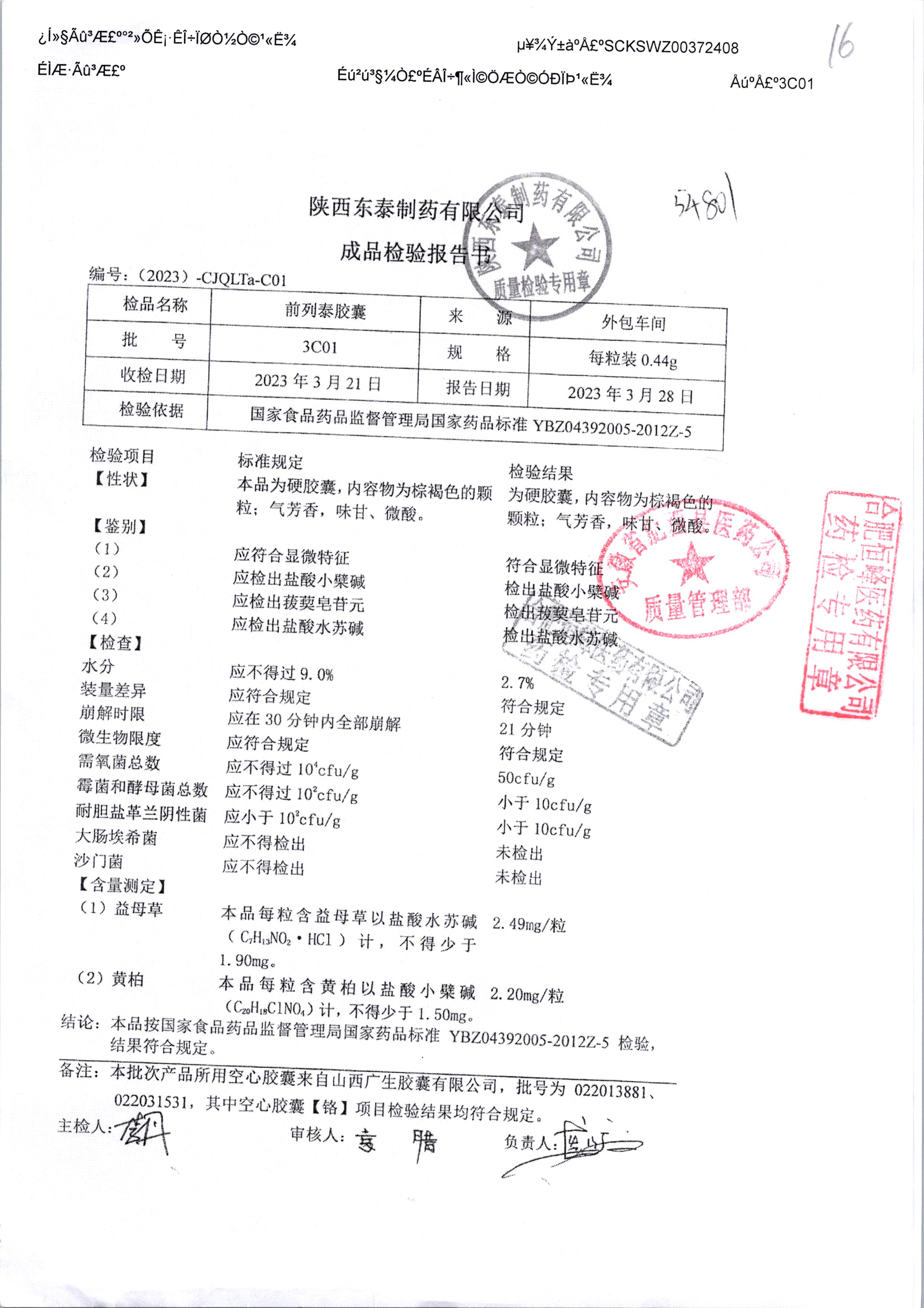 名稱 規(guī)格 批號(hào) 藥檢報(bào)告