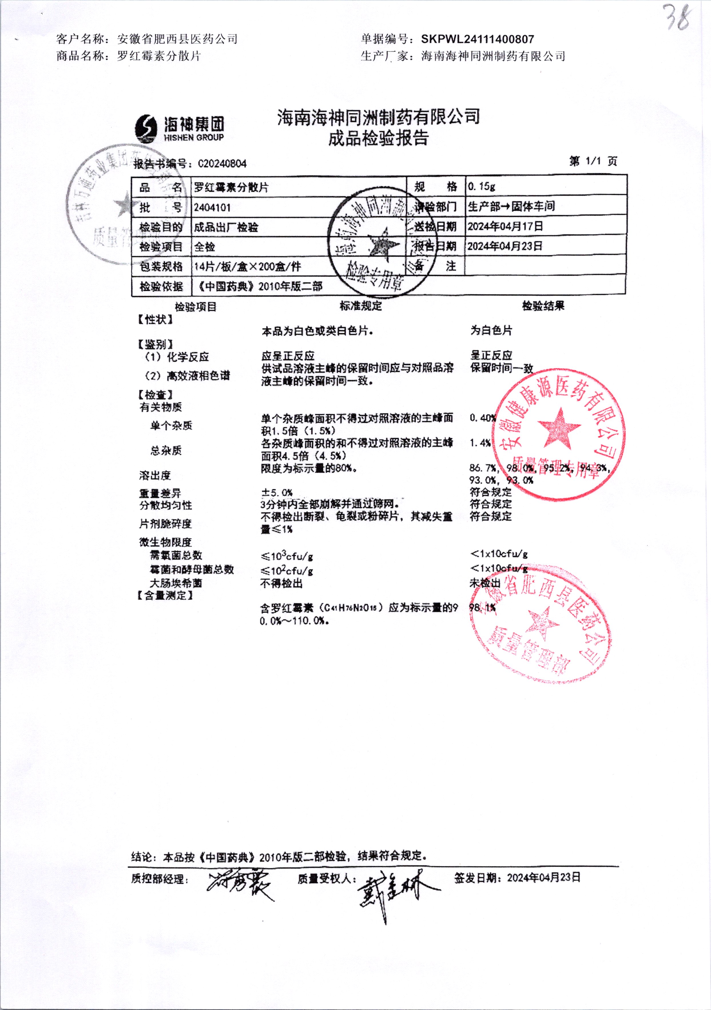 羅紅霉素分散片 0.15g*14片 2404101 查看詳情