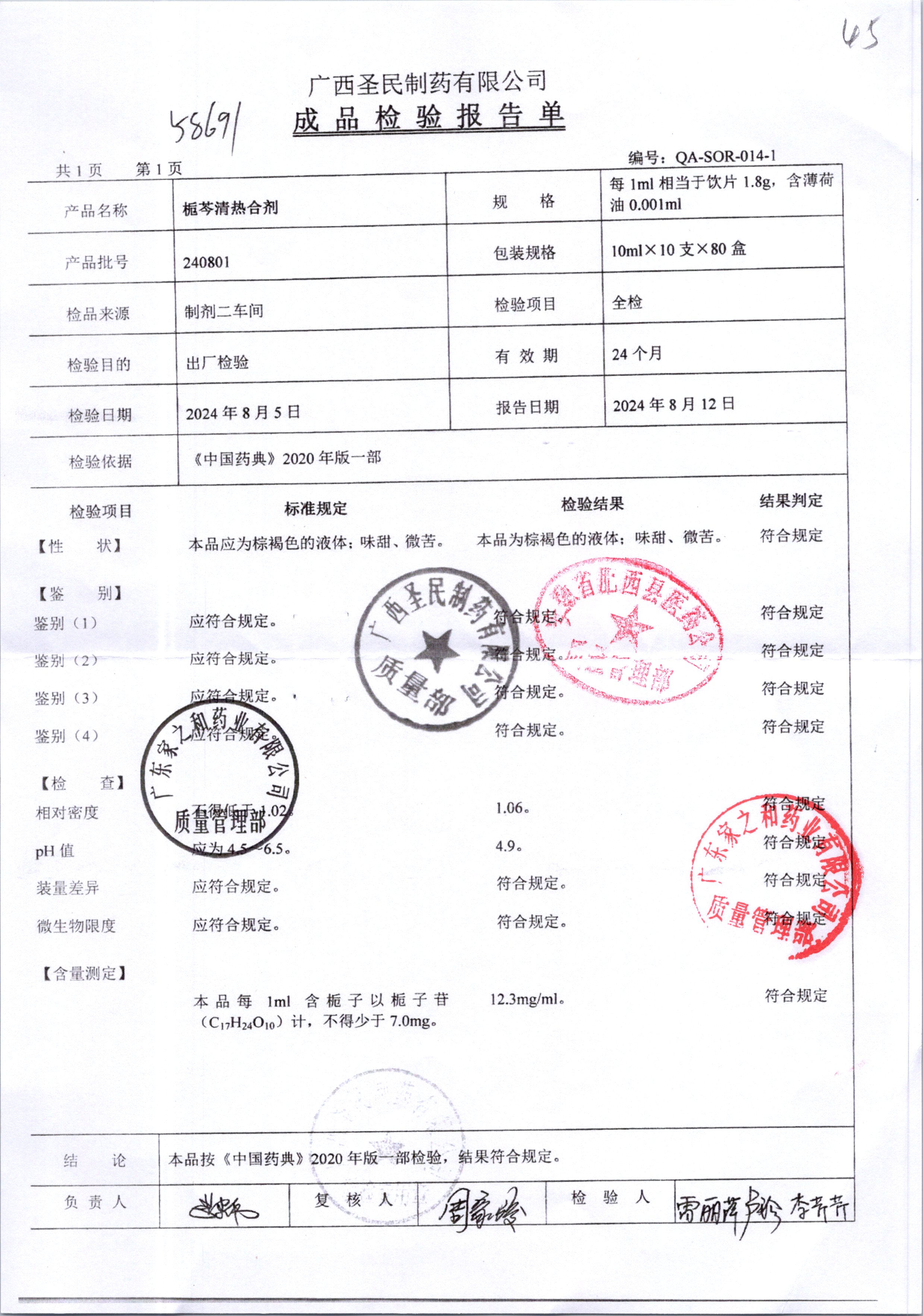 名稱 規(guī)格 批號 藥檢報告